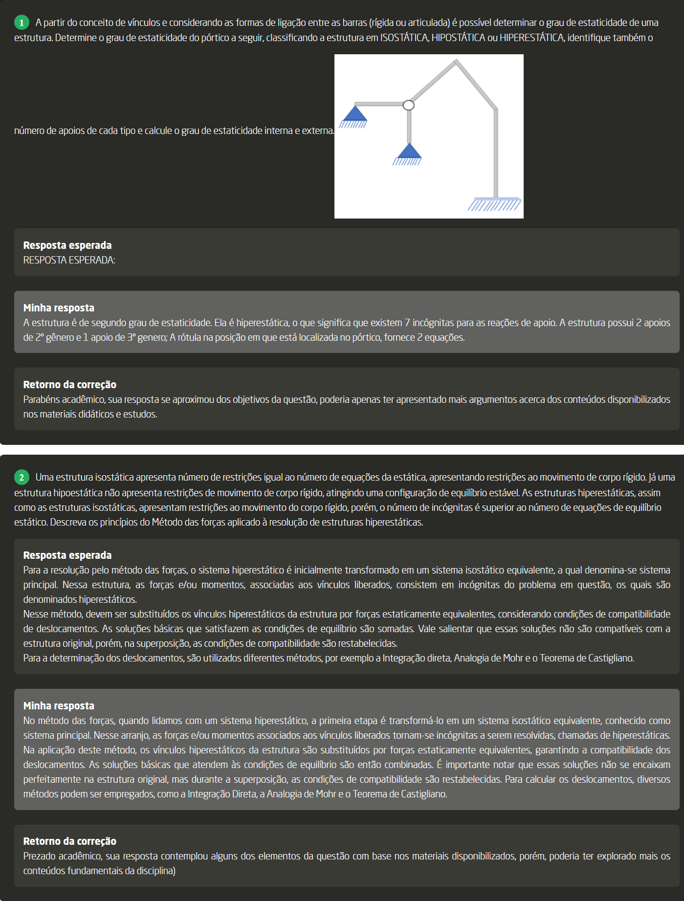 Uma estrutura isostática apresenta número de restrições igual ao número de equações da estática, apresentando restrições ao movimento de corpo rígido. uma estrutura hipoestática não apresenta restrições de movimento de corpo rígido, atingindo uma configuração de equilíbrio estável. As estruturas hiperestáticas, assim como as estruturas isostáticas, apresentam restrições ao movimento do corpo rígido, porém, número de incógnitas é superior ao número de equações de equilíbrio estático. Descreva os princípios do Método das forças aplicado à resolução de estruturas hiperestáticas.