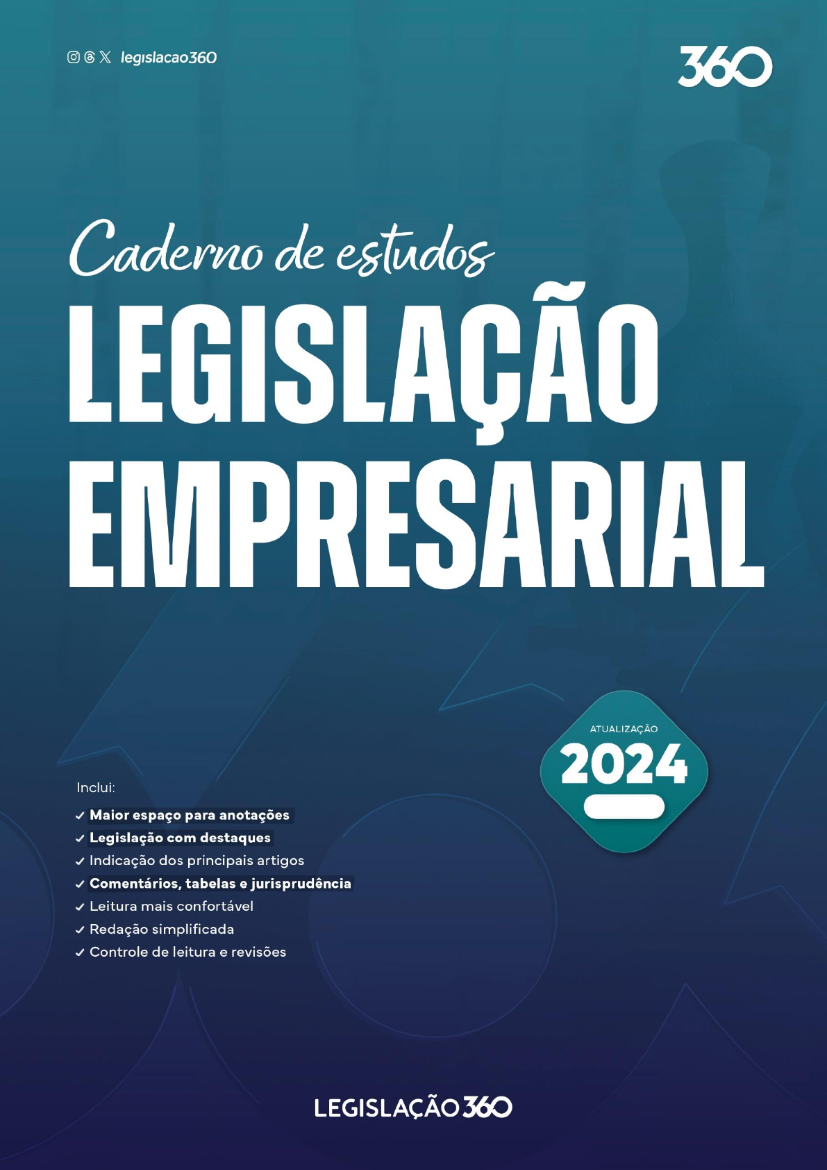 1 2024.1 2 2024.1, 20.01.2024 3 INDICAÇÃO DOS PRINCIPAIS ARTIGOS TABELAS E JURISPRUDÊNCIA REDAÇÃO SIMPLIFICADA LEGISLAÇÃO COM DESTAQUES NAVEGAÇÃO POR MARCADORES Avance no estudo das legislações e organize todas as suas anotações em um só lugar. Criamos este formato de CADERNO DE ESTUDOS em 2018, combinando a letra da lei, jurisprudência, tabelas e o espaço dedicado para anotações que se tornou marca da Legislação 360. Além de todas as demais marcações, destacamos com uma estrela os artigos com maior incidência em provas e que merecem atenção especial. Para aprofundar seus estudos, incluímos a jurisprudência relacionada aos dispositivos e tabelas esquematizando a doutrina. Desenvolvemos uma diagramação especial para as legislações, facilitando muito a sua leitura. Além disso, também simplificamos a redação dos dispositivos, especialmente nos números. NEGRITO › ROXO › LARANJA › CINZA SUBLINHADO › Utilizado para realçar termos importantes. Aplicado para destacar números, incluindo datas, prazos, percentuais e outros valores numéricos. Expressões que denotam negação, ressalva ou exceção. Indica vetos e revogações. Dispositivos cuja eficácia está prejudicada, mas não estão revogados expressamente. Uma ferramenta adicional para leitores digitais. Nossos materiais foram desenvolvidos para garantir uma leitura confortável quando impressos, mas se você prefere ler em dispositivos eletrônicos, conheça esta funcionalidade. Implementamos em todos os nossos conteúdos o recurso de navegação por marcadores, um componente interativo do leitor de PDF (cujo nome pode variar de acordo com o programa utilizado). Nesta ferramenta, títulos, capítulos, seções e artigos das legislações, assim como súmulas e outros textos relevantes de jurisprudência, são organizados na barra de marcadores do leitor de PDF. Isso permite que você localize cada item de forma mais rápida. Além disso, a funcionalidade VOLTAR, presente em alguns leitores de PDF, facilita o retorno ao ponto de leitura onde você parou, sem a necessidade de ficar rolando páginas. ESPAÇO PARA ANOTAÇÕES CINZA TACHADO › 4 GUIA DE ESTUDOS Se você está começando a se preparar para concursos ou busca uma melhor organização e planejamento, este guia será de grande ajuda em sua jornada. Disponibilizamos o conteúdo gratuitamente em nosso site: www.legislacao360.com.br CONTROLE DE LEITURA DAS LEGISLAÇÕES Incluído no Guia de Estudos, o PLANNER METAS DA LEGISLAÇÃO é uma planilha desenvolvida para ajudar você a organizar suas leituras e revisões. Este material é gratuito e está disponível para download em nosso site. No guia você encontrará também sugestões de como utilizar a planilha. Veja algumas das características principais: BIBLIOGRAFIA PARA CONCURSOS PÚBLICOS E OAB ORIENTAÇÕES PARA ESTUDAR JURISPRUDÊNCIA COMO OTIMIZAR A RESOLUÇÃO DE QUESTÕES MODELO DE CICLO DE ESTUDOS PLANNER PARA A LEITURA DE INFORMATIVOS (STF E STJ) PLANNER PARA O ESTUDO DAS LEGISLAÇÕES Desenvolvimento editorial e todos os direitos reservados a 360 EDITORA JURÍDICA LTDA. Material protegido por direitos autorais. É proibida a reprodução ou distribuição deste material, ainda que sem fins lucrativos, sem a expressa autorização da 360 Editora Jurídica Ltda. Lei 9.610/98 – Lei de Direitos Autorais. www.legislacao360.com.br – editora@360.ltda 5 SUMÁRIO ÍNDICE DAS TABELAS ........................................................................................................................................................................... 6 Lei 10.406/02 - Direito Empresarial no Código Civil .............................................................................................................. 12 Lei 6.404/76 - Lei das Sociedades por Ações (SA) .................................................................................................................. 77 LC 123/06 - Estatuto Nacional da ME e da EPP ..................................................................................................................... 173 Lei 13.966/19 - Lei de Franquias .................................................................................................................................................. 227 Lei 8.934/94 - Registro Público de Empresas Mercantis .................................................................................................... 233 Lei 11.101/05 - Lei de Falência e Recuperação de Empresas ............................................................................................. 248 Lei 6.024/74 - Intervenção e Liquidação Extrajudicial de Instituições Financeiras .................................................. 328 Lei 9.279/96 - Lei de Propriedade Industrial .......................................................................................................................... 342 Lei 12.529/11 - Lei Antitruste ....................................................................................................................................................... 396 Lei 9.019/95 - Antidumping .......................................................................................................................................................... 427 Lei 6.099/74 - Arrendamento Mercantil (Leasing) ............................................................................................................... 433 Lei 9.492/97 - Protesto de Títulos .............................................................................................................................................. 441 Decreto 2.044/1908 - Letra de Câmbio e Nota Promissória .............................................................................................. 454 Decreto 57.663/66 - Lei Uniforme de Genebra - Letra de Câmbio e Nota Promissória .......................................... 466 Lei 5.474/68 - Lei das Duplicatas..........
