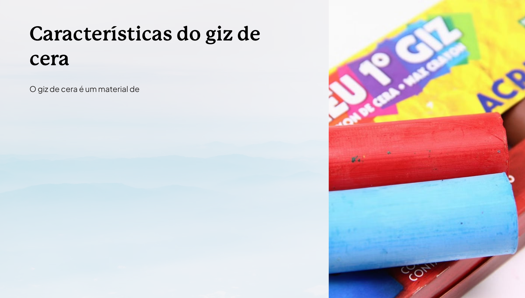 Características do giz de cera O giz de cera é um material de desenho e escrita amplamente utilizado em ambientes educacionais, especialmente na educação infantil. Suas características únicas o tornam um instrumento valioso para o desenvolvimento da expressão artística e a aprendizagem das crianças. Uma das principais características do giz de cera é sua textura suave e macia, que permite que as crianças desenhem e escrevam com facilidade, mesmo com pouca coordenação motora. Além disso, o giz de cera possui uma ampla gama de cores vivas e vibrantes, o que estimula a criatividade e a exploração visual por parte dos alunos. Outra característica importante é a sua resistência à quebra e à umidade, tornando-o um material durável e adequado para o uso em sala de aula. Isso significa que as crianças podem explorar e manipular o giz de cera sem se preocupar com danos, o que favorece a liberdade de expressão e a experimentação. Benefícios do uso do giz de cera O uso do giz de cera na educação oferece diversos benefícios que contribuem para o desenvolvimento integral da criança. Esse material lúdico e versátil é uma ferramenta poderosa na promoção da aprendizagem e do crescimento pessoal dos alunos. Desenvolvimento da coordenação motora fina: O manuseio do giz de cera estimula o controle e a destreza dos movimentos das mãos e dedos, melhorando a coordenação olho-mão. 1. Estímulo à criatividade e expressão artística: O amplo espectro de cores do giz de cera incentiva a criatividade e a expressão individual, permitindo que as crianças explorem sua imaginação e emoções por meio da arte. 2. Fortalecimento da memória e atenção: A atividade de desenhar com o giz de cera ajuda a desenvolver a memória visual e a concentração das crianças, contribuindo para a melhoria do seu desempenho acadêmico. 3. Desenvolvimento sensorial: O toque macio e a textura aveludada do giz de cera proporcionam uma experiência sensorial única, estimulando os sentidos das crianças e enriquecendo sua percepção do mundo. 4. Fortalecimento da autoconfiança: Ao se expressarem livremente por meio do desenho e da pintura com o giz de cera, as crianças desenvolvem uma maior autoconfiança e senso de autonomia. 5. Esses são apenas alguns dos muitos benefícios que o uso do giz de cera pode trazer para a educação e o desenvolvimento integral das crianças. Essa ferramenta simples, mas poderosa, deve ser amplamente utilizada em salas de aula para promover uma aprendizagem mais lúdica, criativa e enriquecedora.