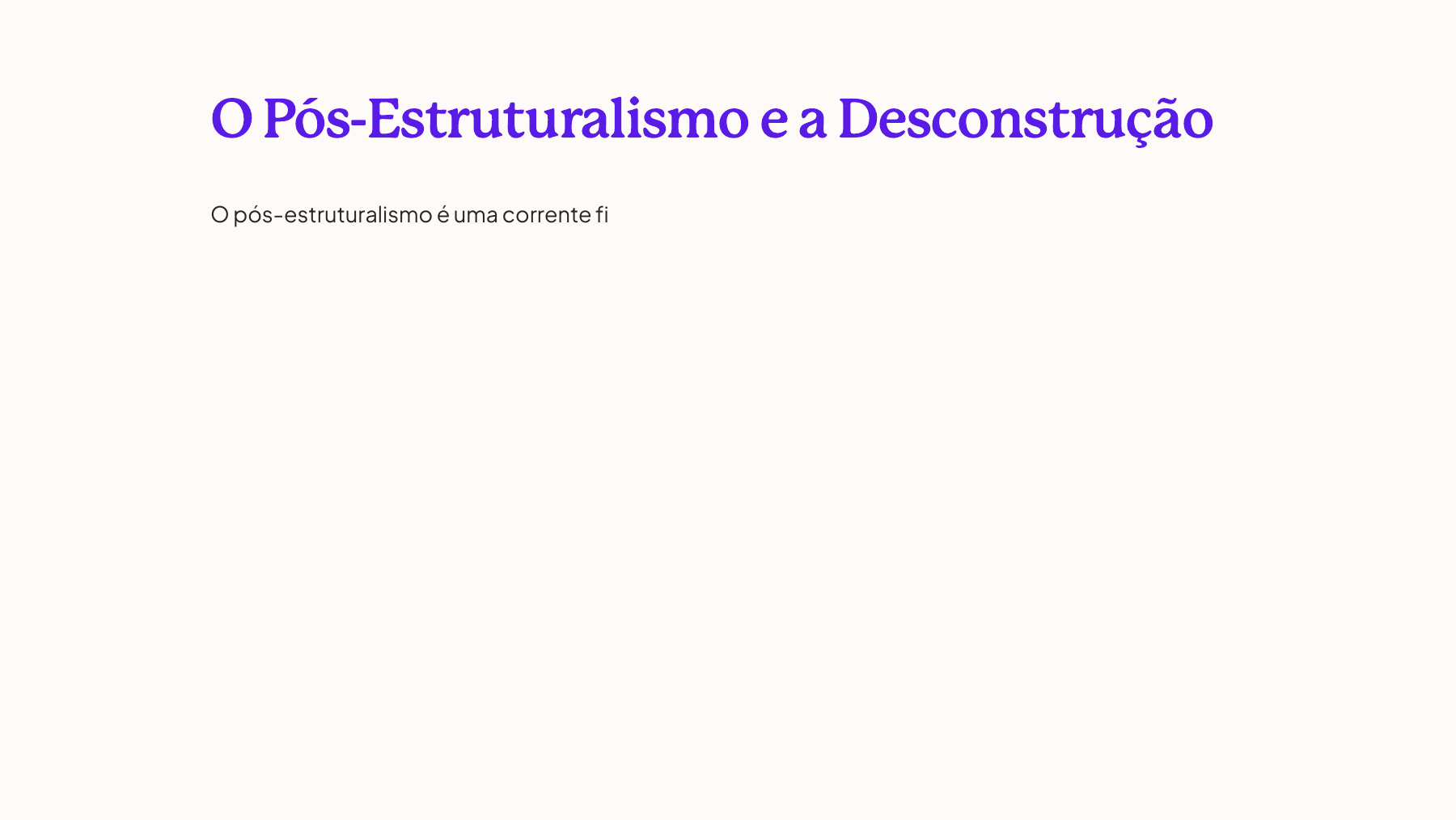 O Pós-Estruturalismo e a Desconstrução O pós-estruturalismo é uma corrente filosófica que surgiu na década de 1960, como uma crítica ao estruturalismo e à visão de que a realidade pode ser entendida por meio de estruturas fixas e universais. Nesta abordagem, a ênfase recai sobre a desconstrução, um processo de análise que visa desvendar as contradições e ambiguidades presentes em qualquer texto ou discurso, desafiando a noção de significado fixo e unívoco. Os principais representantes do pós-estruturalismo incluem Jacques Derrida, Michel Foucault, Julia Kristeva e Gilles Deleuze. Esses filósofos rejeitam a ideia de que exista uma essência ou verdade fundamental a ser descoberta, argumentando que o significado é sempre relacional, contextual e instável. A desconstrução propõe uma leitura atenta às margens, aos silêncios e às contradições, revelando como todo texto carrega em si as sementes da sua própria desconstrução. Essa abordagem tem implicações profundas para a epistemologia, a hermenêutica e a própria noção de sujeito. Ao questionar a possibilidade de um conhecimento objetivo e universal, o pós- estruturalismo abre caminho para uma compreensão mais flexível e plural da realidade, desafiando as hierarquias e as estruturas de poder estabelecidas. A Filosofia Política Contemporânea A filosofia política contemporânea tem suas raízes no século XX, impulsionada por eventos históricos, movimentos sociais e revoluções que desafiaram os paradigmas políticos e filosóficos estabelecidos. Neste período, pensadores influentes como John Rawls, Jürgen Habermas, Michel Foucault e Hannah Arendt desenvolveram teorias inovadoras que abordam questões fundamentais, como a justiça, a democracia, o poder e a liberdade. Um dos temas centrais da filosofia política contemporânea é a busca por uma sociedade mais justa e igualitária. Autores como Rawls propõem princípios de justiça que visam garantir oportunidades iguais e a redistribuição de bens e recursos de forma mais equitativa. Outros, como Habermas, enfatizam a importância do diálogo e da ação comunicativa na construção de consensos democráticos. Pensadores como Foucault, por sua vez, analisam as relações de poder e as estruturas de dominação presentes nas sociedades modernas, desafiando as noções tradicionais de política e chamando a atenção para as formas sutis e pervasivas de exercício do poder. Já Arendt destaca a dimensão da ação política como uma atividade essencialmente humana, capaz de transformar o mundo e criar novas possibilidades. Além disso, a filosofia política contemporânea também se debruça sobre questões emergentes, como os desafios impostos pela globalização, as lutas por reconhecimento de minorias e a necessidade de repensar a relação entre cidadania, identidade e pertencimento. Dessa forma, a filosofia política contemporânea se mantém relevante e engajada, buscando compreender e intervir nos complexos problemas do mundo moderno.