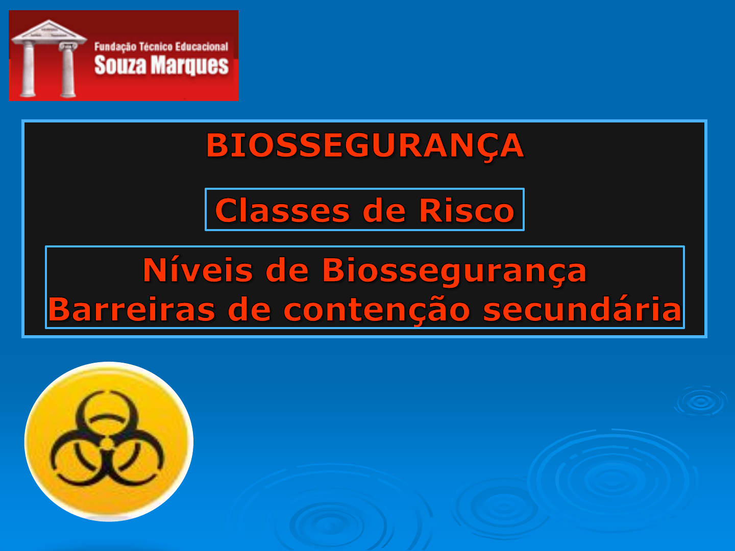 Rodrigo P. de Carvalho Docente Pós-Graduação UFRJ Docente Pós-Graduação Faculdade Souza Marques E-mail: rpdc.rpdc@gmail.com DEFINIÇÕES CLASSE DE RISCO 04 Classes Grau de risco associado ao agente biológico manipulado. NÍVEL DE BIOSSEGURANÇA 04 Níveis Consiste na combinação de práticas e técnicas de laboratório, equipamentos de segurança e instalações laboratoriais. Prof. Rodrigo P. de Carvalho Agentes Biológicos Bactérias, fungos, vírus, príons, clamídias, riquétsias, micoplasmas, parasitos, linhagens celulares e outros organismos. Avaliação de Risco É o processo de levantamento, avaliação, gerenciamento e comunicação dos riscos, considerando o processo de trabalho, a possibilidade de escape no ambiente, o volume, a concentração e a classe de risco do Agente Biológico a ser manipulado, a fim de implementar ações destinadas à preservação, ao controle, à redução ou eliminação dos mesmos e à determinação do Nível de Biossegurança a ser adotado para o desenvolvimento de trabalhos em contenção com Agentes Biológicos e a comunicação aos profissionais envolvidos nos processos de trabalho. Prof. Rodrigo P. de Carvalho Os Príons são os menores agentes patogênicos conhecidos e podem ser observados apenas com a ajuda de potentes microscópios eletrônicos. Sua proliferação é extremamente rápida e causa as denominadas Encefalopatias Espongiformes, doenças cujo sintoma mais comum é a demência. Os príons patogênicos são formas alteradas de proteínas normais as quais estão presentes no cérebro de mamíferos. Quando expostos à radiação ultravioleta (que normalmente destrói ácidos nucléicos), os extratos com poder infeccioso não perdem esta capacidade. Os príons foram identificados como causadores de várias doenças neurológicas letais, geralmente com períodos de incubação prolongados, que antes eram atribuídas a vírus de lenta proliferação. Doenças causadas por Príons Scrapie , Doença de Creutzfeldt-Jakob (DCJ), Kuru , Encefalopatia Espongiforme Bovina (BSE) ou Mal da Vaca-Louca, Síndrome de Gerstmann-Sträussler-Scheinker, Insônia Familiar Fatal Príons Prof. Rodrigo P. de Carvalho http://pt.wikipedia.org/wiki/Scrapie http://pt.wikipedia.org/wiki/Doen%C3%A7a_de_Creutzfeldt-Jakob http://pt.wikipedia.org/wiki/Kuru http://pt.wikipedia.org/wiki/Encefalopatia_Espongiforme_Bovina http://pt.wikipedia.org/wiki/S%C3%ADndrome_de_Gerstmann-Str%C3%A4ussler-Scheinker http://pt.wikipedia.org/wiki/Ins%C3%B4nia_Familiar_Fatal Níveis de Biossegurança NB - 1 NB - 2 NB - 3 NB - 4 Prof. Rodrigo P. de Carvalho Existem quatro níveis de Biossegurança. Denominados NB-1, NB-2, NB-3 e NB-4. Estes níveis estão relacionados aos requisitos crescentes de segurança para o manuseio dos agentes biológicos, terminando no maior grau de contenção e de complexidade do nível de proteção. O NB exigido para um ensaio será determinado pelo agente biológico de maior classe de risco envolvido no ensaio. Quando não se conhece o potencial patogênico do agente biológico, deverá ser realizada uma análise de risco prévia para estimar o nível de contenção. Para trabalhos em grande escala, o NB deve ser o superior ao recomendado para a manipulação do agente biológico envolvido. Níveis de Biossegurança Prof. Rodrigo P. de Carvalho Nível de Biossegurança 1 É o nível de contenção laboratorial que se aplica aos laboratórios de ensino básico, onde são manipulados os microrganismos pertencentes a Classe de Risco 1. Não é requerida nenhuma característica de desenho, além de um bom planejamento espacial e funcional e a adoção de boas práticas laboratoriais. Prof. Rodrigo P. de Carvalho Fonte: CDC - Centers for Disease Control and Prevention LABORATÓRIO NB-1 Prof. Rodrigo P. de Carvalho LABORATÓRIO NB-1 Prof. Rodrigo P. de Carvalho Classe de Risco 1 O risco individual e para a comunidade é ausente ou muito baixo, ou seja, são microrganismos que têm baixa probabilidade de provocar infecções no homem ou em animais. Exemplos: Lactobacillus spp. e Bacillus subtilis Prof. Rodrigo P. de Carvalho Laboratório de contenção, onde são manipulados microrganismos da Classe de Risco 2 Se aplica aos laboratórios clínicos ou hospitalares de níveis primários de diagnóstico, sendo necessário, além da adoção das boas práticas, o uso de barreiras físicas primárias (Cabine de Segurança Biológica e Equipamentos de Proteção Individual) e secundárias (desenho e organização do laboratório). Prof. Rodrigo P. de Carvalho Nível de Biossegurança 2 Fonte: CDC - Centers for Disease Control and Prevention LABORATÓRIO NB-2 Prof. Rodrigo P. de Carvalho LABORATÓRIO NB-2 Prof. Rodrigo P. de Carvalho Classe de Risco 2 O risco individual é moderado e para a comunidade é baixo. São microrganismos que podem provocar infecções, porém, existem medidas terapêuticas e profiláticas eficientes, sendo o risco de propagação limitado. Exemplos: Vírus da Febre Amarela Schistosoma mansoni. Prof. Rodrigo P. de Carvalho Prof. Rodrigo P. de Carvalho Classe de Risco 2 AGENTES BACTERIANOS, INCLUINDO CLAMÍDIAS E RICKÉTSIAS ➢ Aeromonas caviae, A. hydrophila, A. sobria, Aeromonas spp. ➢ Campylobacter coli, C. fetus, C. jejuni, C. lari, C. septicum, C. upsaliensis, Campylobacter spp. ➢ Clostridium difficile, C. haemolyticum, C. histolyticum, C. novyi, C. perfringens, C. septicum, C. sordelli, C. tetani, Clostridium spp. (exceto Clostridium botulinum classificado como de risco 3). ➢ Enterococcus faecalis, E. faecium, Enterococcus spp. ➢ Haemophilus ducreyi, H. influenzae, Haemophilus spp. ➢ Listeria innocua, L. ivanovii, L. monocytogenes, Listeria spp. ➢ Legionella pneumophila, Legionella spp. Prof. Rodrigo P. de Carvalho ➢ Mycobacterium asiaticum, M. avium, M. bovis (BCG – cepas vacinais), M. chelonae, M. fortuitum, M. kansasii, M. leprae, M. malmoense, M. marinum, M. paratuberculosis, M. scrofulaceum, M. simiae, M. s