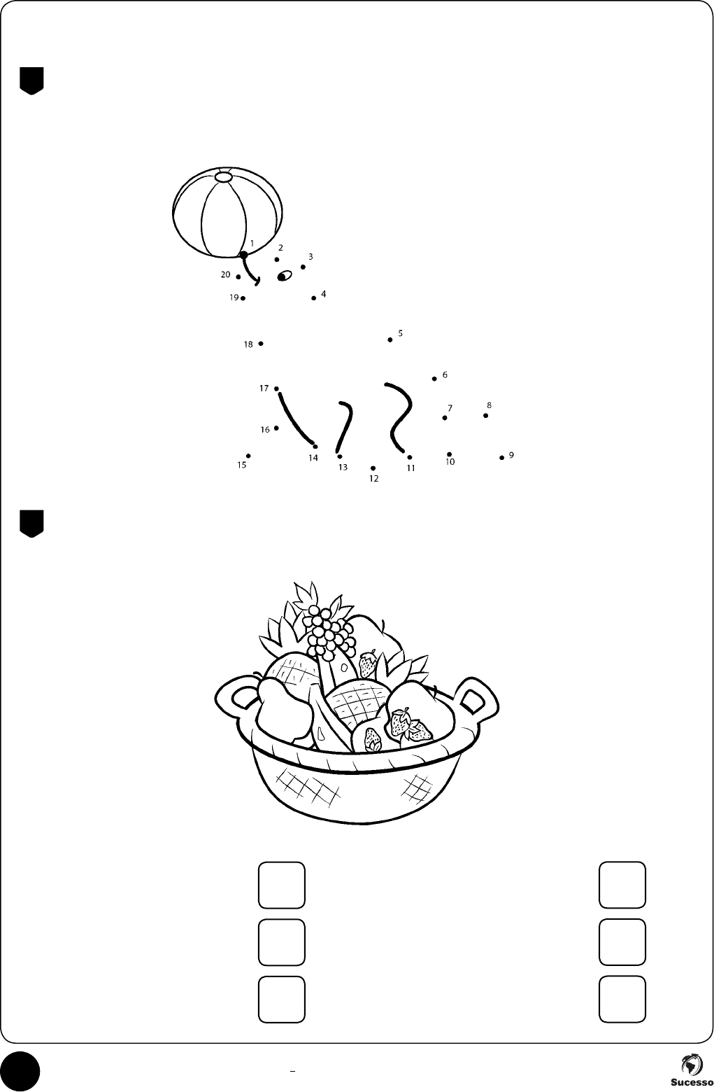2 Banco de Questões – Matemática – 2o ano | Ensino Fundamental a. Quantos morangos? b. Quantos abacaxis? c. Quantas bananas? UNIDADE 1 – NÚMEROS NATURAIS 1. Observe a sequência dos números, ligue os pontos de 1 a 20 e descubra qual o animal que forma. 2. Mamãe preparou uma cesta de frutas para vovó. Observe a cena e, em seguida, responda de acordo com o que se pede: d. Quantas maçãs? e. Quantas peras? f. Quantos cachos de uva?