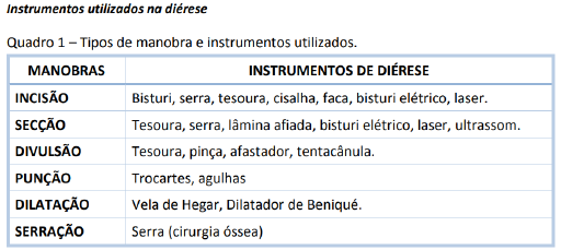 OPERAÇÕES FUNDAMENTAIS DIÉRESE: significa divisão, separação, toda manobra cirúrgica que separe tecidos, órgãos ou regiões anatômicas e que resulte em -tomia, -ectomia, exérese ou biópsia. TIPOS DE DIÉRESE: A separação dos tecidos não é realizada de forma aleatória. É necessário um bom conhecimento anatômico para escolher o melhor caminho até a área doente. O caminho mais curto pode não ser o ideal, pois pode ser até mais lesivo a outras estruturas que precisam ser obrigatoriamente preservadas. Determinadas artérias e veias não podem ser lesadas impunemente. • Incisão: manobra básica de corte ou secção realizada com bisturi. Está reservada para o corte do chamado tecido mole, ou seja, de pele, tela subcutânea, aponeuroses, músculos das paredes abdominal e torácica, órgãos parenquimatosos (baço, fígado, pâncreas, adrenal, rim, pulmão), órgãos tubulares (trato digestório, vias urinárias, trato circulatório). • Secção: pode ser realizada por bisturi (em suas múltiplas modalidades), tesoura ou serra. Exemplos: secção do istmo da glândula tireoide na realização de uma traqueostomia; • Serração: a secção de tecido ósseo, na grande maioria das vezes, só é possível com o uso de serras ou fios denteados, em razão da natureza mineral do osso. A perfuração do osso com brocas para a fixação de parafusos ou fios metálicos não deixa de ser também uma manobra de diérese. • Divulsão: separar à força, esgarçar, romper, rasgar. Em cirurgia, está reservada para a separação romba de tecidos, ou seja, sem secção ou corte. Grosseiramente, em algumas situações de difícil acesso aos instrumentais de diérese, taticamente a divulsão pode ser realizada com os dedos do cirurgião (com o indicador e o polegar em pinça) • Punção: os cateteres endovasculares (Jelco, Abocath, Intracath, Butterfly) são exemplos de instrumentos que permitem a punção não só de vasos, mas também de outras cavidades. • Dilatação: uso de instrumentos metálicos, plásticos ou balões infláveis em orifícios ou trajetos naturais estenosados ou trajetos fistulosos com a finalidade de aumentar o calibre do orifício/trajeto e facilitar a drenagem ou injeção de líquidos. • Curetagem: uso de instrumental com aspecto similar a uma colher com as bordas afiadas e cortantes e que, por movimentos de raspagem, coletam material para exame ou retirada terapêutica da lesão. São exemplos a curetagem uterina para diagnóstico de doenças endometriais, remoção de aborto retido, remoção de restos placentários, curetagem de tecido ósseo nas neoplasias osteoblásticas. • A diérese pode ser auxiliada por técnicas de dissecção mediante emprego de pinças de dissecção, gaze montada em pinças e manobras digitais, com o objetivo de poupar estruturas nobres como nervos e vasos. Deve haver secções de tecidos com bordas regulares e simétricas, o que facilitará o processo da síntese. Incisões oblíquas ou compostas (em duas direções ou mais) levam à desvitalização dos tecidos, prejudicando a cicatrização e favorecendo a infecção. O afastamento dos tecidos dissecados deverá ser firme, porém delicado, de modo a não prejudicar a irrigação e a inervação. A incisão na pele e nos outros planos anatômicos deve ser feita em movimento único, retilíneo, constante e deixando as bordas da ferida operatória de modo regular, sem “dentes”. A incisão nos planos subsequentes deve ter a mesma extensão da ferida na pele e tecido subcutâneo, evitando a formação de um túnel em funil. Os planos anatômicos devem ser preferencialmente afastados e divulsionados. A secção deve ser parcimoniosa e cortar o estritamente necessário para o acesso cirúrgico adequado. Vasos de maior calibre devem ser identificados de antemão, ocluídos com pinças hemostáticas e, em seguida, seccionados e ligados ou cauterizados. A secção de aponeuroses musculares deve ser retilínea e com bordas regulares, o que facilitará a síntese e posterior cicatrização dos tecidos. HEMOSTASIA: É o termo médico usado para conceituar as manobras ou processos envolvidos na coibição de sangramento normalmente provocado pela diérese ou trauma. A diérese é acompanhada da inevitável secção de vasos e consequente extravasamento de sangue. O controle da hemostasia começa no pré-operatório, pela avaliação da capacidade do indivíduo de coibir a hemorragia naturalmente. A determinação do tempo de sangramento e tempo de coagulação são exames de rotina em qualquer tratamento cirúrgico. Devem ser identificados comportamentos hematológicas congênitas (p. ex., hemofilia) ou adquiridas pelo uso de diversos tipos de medicação para tratamento de comorbidades e, a partir disso, traçadas estratégias de suspensão prévia e temporária delas. Atos operatórios de risco devem ser precedidos de tipagem e reserva de sangue para eventual transfusão pré, intra ou pós-operatória. A hemostasia operatória pode ser temporária, em que as manobras de impedimento da corrente sanguínea duram um tempo determinado, o qual, dependendo da natureza dos tecidos, será breve ou longo. Por sua vez, a hemostasia definitiva implica interromper a corrente sanguínea de modo permanente. MEDIDAS PARA HEMOSTASIA TEMPORÁRIA • Garroteamento: interrompida para um segmento corporal pela compressão do feixe vascular na raiz do membro com a aplicação de garrote ou faixas elásticas (Esmarch). • Oclusão endovascular: aplicação de cateter provido de um balão inflável que fará a oclusão da luz vascular acima do local da intervenção. Está reservada principalmente para intervenções sobre artérias em que o pinçamento externo está contraindicado ou o acesso é difícil ou impossível. • Hipotensão arterial controlada: uso de drogas anestésicas que promovam uma hipotensão arterial controlada pode ser considerado uma manobra de hemostasia, já que seu 