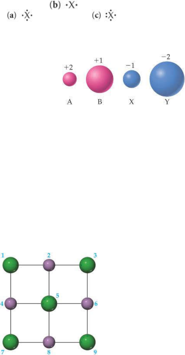 Lista 1 Química Estrutural 01. Para cada um desses símbolos de Lewis, indique o grupo na tabela periódica ao qual o elemento X pertence: 02. Ilustrados estão quatro íons - A, B, X e Y - mostrando seus raios iônicos relativos. Os íons mostrados em vermelho carregam cargas positivas: uma carga 2+ para A e uma carga 1+ para B. Os íons mostrados em azul carregam cargas negativas: uma carga 1- para X e uma carga 2- para Y. (a) Quais combinações desses íons produzem compostos iônicos onde há uma proporção de cátions e ânions de 1:1? (b) Entre as combinações na parte (a), qual leva ao composto iônico tendo a maior energia de rede? (c) Qual combinação de íons leva ao composto iônico com a menor energia de rede? 03. Uma porção de uma “placa” bidimensional de NaCl (s) é mostrada aqui (ver Figura) na qual os íons são numerados. (a) Dos seguintes tipos de interações (identificadas pela cor), quais são atrativas e que são repulsivas: “roxo-roxo”, “roxo- verde”, “verde-verde”? Explique. (b) Considere as interações “verde-verde” entre os íons 1 e 3, os íons 1 e 5 e os íons 3 e 5. Qual um ou mais desses três resultará na interação de maior magnitude? Qual ou mais resultará na interação da menor magnitude? (c) Considere as interações “verde-verde” entre os íons 1 e 5 e as interações “verde-púrpura” entre os íons 1 e 2. Qual destes Lista 1 Química Estrutural terá a maior magnitude? (d) Sua resposta à parte (c) ajuda a explicar por que o NaCl é um sólido iônico estável? 04. O diagrama orbital a seguir mostra os elétrons de valência para um íon 2+ de um elemento. (a) Qual é o elemento? (b) Qual é a configuração eletrônica de um átomo deste elemento? 05. Na estrutura de Lewis mostrada aqui, A, D, E, Q, X e Z representam os elementos nas duas primeiras linhas da tabela periódica (H− Ne). Identifique todos os seis elementos de forma que as cargas formais de todos os átomos sejam zero. 06. Estruturas de Lewis incompletas para a molécula de ácido nitroso, HNO2, e o íon nitrito, NO2 -, são mostradas abaixo. (a) Complete cada estrutura de Lewis adicionando pares de elétrons conforme necessário. (b) A carga formal em N é a mesma ou diferente nessas duas espécies? (c) Seria esperado que HNO2 ou NO2 - exibissem ressonância? (d) O que você esperaria da distância de ligação NO em HNO2 e NO2 -? Explique. H-O-N=O O-N=O – 07. A estrutura parcial de Lewis que se segue é para uma molécula de hidrocarboneto. Na estrutura de Lewis completa, cada átomo de carbono satisfaz a regra do octeto e não há pares de elétrons não compartilhados na molécula. As ligações Lista 1 Química Estrutural carbono-carbono são rotuladas como 1, 2 e 3. (a) Determine onde os átomos de hidrogênio estão na molécula. (b) Classifique as ligações carbono-carbono em ordem crescente de comprimento de ligação. (c) Classifique as ligações carbono- carbono em ordem crescente de entalpia de ligação. 08. Considere a estrutura de Lewis para o oxiânion poliatômico mostrado aqui, onde X é um elemento do terceiro período (Na — Ar). Alterando a carga geral, n, de 1– para 2– para 3– obtemos três íons poliatômicos diferentes. Para cada um desses íons (a) identifique o átomo central, X; (b) determinar a carga formal do átomo central, X; (c) desenhe uma estrutura de Lewis que torne a carga formal no átomo central igual a zero. 09. (a) Escreva a configuração eletrônica para o elemento titânio, Ti. Quantos elétrons de valência este átomo possui? (b) Háfnio, Hf, também é encontrado no grupo 4B. Escreva a configuração eletrônica para Hf. (c) Ti e Hf se comportam como se possuíssem o mesmo número de elétrons de valência. Qual das sub-camadas na configuração eletrônica de Hf se comporta como orbitais de valência? Quais se comportam como orbitais centrais? 10. Preveja a fórmula química do composto iônico formado entre os seguintes pares de elementos: (a) Al e F, (b) K e S, (c) Y e O, (d) Mg e N. 11. Escreva a configuração eletrônica para cada um dos íons a seguir e determine quais possuem configurações de gases nobres: (a) Sr2+, (b) Ti2+, (c) Se2−, (d) Ni2+, (e) Br-, (f) Mn3+. Lista 1 Química Estrutural 12. Escreva as configurações de elétrons para os íons a seguir e determine quais têm configurações de gases nobres: (a) Cd2+, (b) P3−, (c) Zr4+, (d) Ru3+, (e) As3−, (f) Ag+. 13. NaCl e KF têm a mesma estrutura cristalina. A única diferença entre os dois é a distância que separa cátions e ânions. (a) As energias de rede de NaCl e KF são fornecidas na Tabela 8.2.(Brown) Com base nas energias da rede, você esperaria que a distância Na-Cl ou K-F fosse maior? (b) Use os raios iônicos dados na Figura 7.7 para estimar as distâncias em Na — Cl e K — F. Esta estimativa está de acordo com a previsão que você fez com base nas energias da rede? 14. (a) A energia da rede de um sólido iônico aumenta ou diminui (i) conforme as cargas dos íons aumentam, (ii) conforme os tamanhos dos íons aumentam? (b) Organize as seguintes substâncias não listadas na Tabela 8.2 de acordo com suas energias de rede esperadas, listando-as da energia de rede mais baixa para a mais alta: MgS, KI, GaN, LiBr. 15. Explique as seguintes tendências na energia da rede: (a) NaCl> RbBr> CsBr; (b) BaO> KF; (c) SrO> SrCl2. 16. Use os dados do Apêndice do livro Química uma Ciência Central do Brown, e as figuras abaixo para calcular a energia da rede de RbCl. Este valor é maior ou menor que a energia de rede do NaCl? Explique. Lista 1 Química Estrutural 17. (a) Com base nas energias de rede de MgCl2 e SrCl2 fornecidas na Tabela 8.2, qual é a faixa de valores que você esperaria para a energia de rede de CaCl2? (b) Usando os dados do Apêndice C, e das figuras acima e o valor da segunda energia de ionização para Ca, 1145 kJ/mol, calcule a energia de rede do CaCl2.