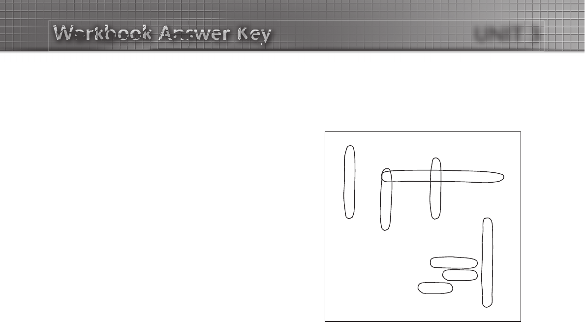 Note: In communicative exercises where several answers are possible, this answer key contains some examples of correct answers, not all possible answers. Any valid answer in this type of exercise should be considered acceptable. Copyright © 2011 by Pearson Education, Inc. Permission granted to reproduce for classroom use. Top Notch Fundamentals, Second Edition Unit 3 Workbook Answer Key UNIT 3 Exercise 1 Answers will vary. Exercise 2 1. pharmacy 2. newsstand 3. bookstore 4. bank 5. school Exercise 3 1. What’s 2. Where’s 3. Where’s 4. What’s 5. What’s 6. Where’s Exercise 4 2. A: Where’s the bookstore? B: It’s across the street. 3. Answers will vary but may include the following: A: Where’s the restaurant? B: It’s between the pharmacy and the bank. OR A: Where’s the pharmacy? B: It’s next to the restaurant. 4. A: Where’s the newsstand? B: It’s down the street (on the left). Exercise 5 Answers will vary. Exercise 6 2. Take the train. 3. Don’t take the bus. 4. Walk. 5. Don’t take a taxi. Exercise 7 Answers will vary. Exercise 8 2. Don’t drive to the restaurant. It’s around the corner. 3. Walk to the newsstand. It’s across the street. 4. Don’t take the bus to the pharmacy. It’s down the street (on the left). Exercise 9 2. Can I take a taxi to the restaurant? 3. Can I drive to the pharmacy? 4. Can I take the bus to the bank? Exercise 10 2. By taxi. 3. By train. 4. By bus. Exercise 11 Answers will vary. JUST FOR FUN Exercise 2 Means of transportation: subway, moped, motorcycle, train, taxi, bus, car, bicycle C U S O G Z Z S H Z Z F B M H H S H P R F A I A L J S I B I E U P H S I R Y T O X X S W S K B A N M O T O R C Y C L E C G W A B O W M T A J W F F F X U A C N P Z P L I Q I Y M F Y T Y N C E S P I N B O Y G T H Z M Y K D C I A S O A K B N T R W E N M B W M N H T F I X E T I Y T L Q Q E P O R U C P Q Z A I U U R T S T A X I Y S W E G A K K L R H K B U S C H S X K U K M U N C A R G T L H Z M J F N J R Q W G V F B E X Y S C X T A U E O B Q W S V B P WWWWWWWWWoooooorrrrrrkkkkkkkkkkbbbbbbbbooooooooooooookkkkkkkkkk AAAAAAAAAnnnnnnnsssssswwwwwwweeeeeeerrrrrrrr KKKKKKKKKeeeeeeeeyyyyyyyy Workbook Answer Key