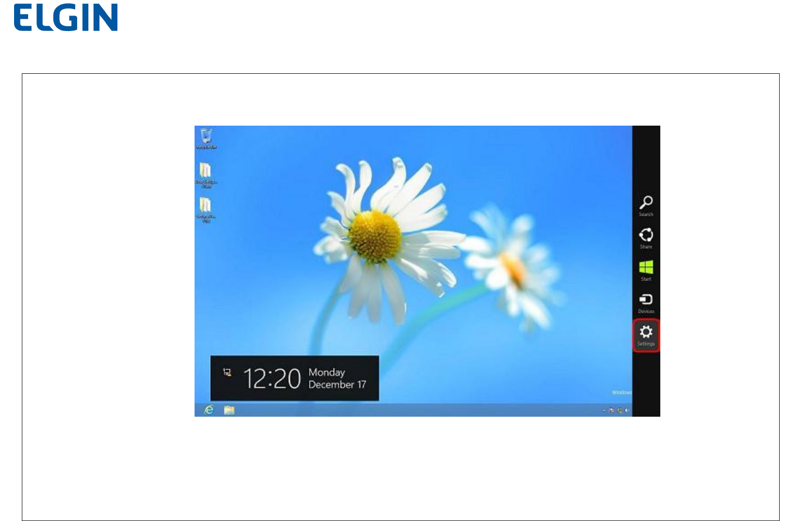 Procedimento de instalação Driver (V2.03) no Windows 8 Impressora L42 1- No Windows 8, posicione o ponteiro do mouse no canto inferior direito, até o ícone de “Ajustes” (settings) aparecer, e clique nele. Procedimento de instalação Driver (V2.03) no Windows 8 Impressora L42 2- Clique em “Alterar configurações do PC” (Change PC Settings). Procedimento de instalação Driver (V2.03) no Windows 8 Impressora L42 3- Clique na opção: “Geral”, e escolha “Reiniciar agora” (Restart Now) Procedimento de instalação Driver (V2.03) no Windows 8 Impressora L42 4- Clique em “Defeitos e Soluções” (Troubleshoot) Procedimento de instalação Driver (V2.03) no Windows 8 Impressora L42 5- Clique no botão “Opções Avançadas” (Advanced Options) Procedimento de instalação Driver (V2.03) no Windows 8 Impressora L42 6- Clique em “Configurações de Inicialização” (Startup Settings) Procedimento de instalação Driver (V2.03) no Windows 8 Impressora L42 7- Clique em “Reiniciar” (Restart) Procedimento de instalação Driver (V2.03) no Windows 8 Impressora L42 8- Após o computador reiniciar, pressione a tecla “F7”: Desabilitar reconhecimento de assinatura digital (Disable driver signature enforcement). 9- Faça o download do novo Driver na página da impressora L42, no lado esquerdo inferior, em Download Center: http://bit.ly/SEfCbU (caso já tenha o arquivo de driver, pule para o passo 11) 10- Descompacte o arquivo Driver L42_BR V2.03 11- Através do Windows Explorer, selecione a seguinte pasta: Driver L42_BR V2.03 12- Com o botão direito do mouse, clique em Setup, e escolha a opção: Executar como administrador 13- Siga as instruções de instalação do software.