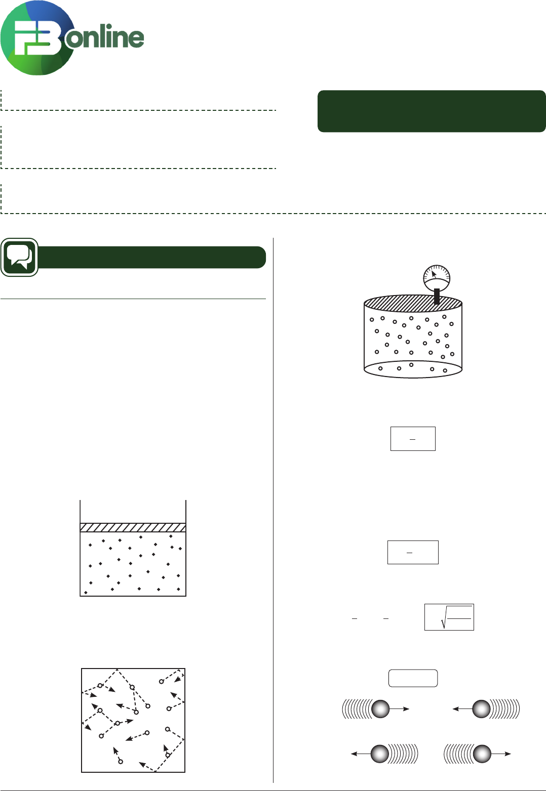 F B O N L I N E . C O M . B R ////////////////// Professor(a): Sérgio MatoS assunto: EStudo doS gaSES frente: QuíMica i 016.602 - 141924/19 AULAS 59 A 62 EAD – ITA/IME Resumo Teórico 1. TEORIA CINÉTICA DOS GASES A simples observação do comportamento dos três estados de agregação mais comuns – sólido, líquido e gasoso – permite diferenciá- los com relação a forma e volume: • Um sólido tem forma e volume definidos. • Um líquido possui volume definido, mas adapta-se à forma do recipiente que o contém. • Um gás também adquire a forma do recipiente e, além disso, ocupa todo o volume disponível. Apresenta grande compressibilidade e expansibilidade. A partir do estudo das propriedades dos gases, foi criado um modelo – a Teoria Cinética dos Gases – que procura explicar seu comportamento. Os postulados da Teoria Cinética dizem, em linhas gerais, que: 1º. As partículas gasosas (moléculas ou átomos) estão em contínuo movimento, separadas umas das outras por espaços muito grandes comparados aos tamanhos das mesmas. O tamanho das moléculas é desprezível em relação ao volume do recipiente. 2º. O movimento das partículas é completamente aleatório (em todas as direções e sentidos), de modo que as mesmas colidem entre si e contra as paredes do recipiente. Movimento browniano das partículas de um gás. 3º. Das colisões das partículas contra as paredes do recipiente resulta a pressão do gás. Manômetro O manômetro registra a pressão do gás. 4º. A energia cinética translacional média por molécula é diretamente proporcional à temperatura absoluta (medida em kelvins): E k Tc = 3 2 · Sendo: Ec = energia cinética média translacional por molécula, em joules (J) T = temperatura do gás, em kelvins (K) k = 1,38 × 10–23 J · K–1 (constante de Boltzmann) A energia cinética é proporcional ao quadrado da velocidade: E m vc = 1 2 2· A velocidade quadrática média por molécula pode ser determinada em função da temperatura do gás: 3 2 1 2 32k T m v v k T m ⋅ = ⋅ ⇒ = ⋅ ⋅ 5º. Todas as colisões ocorrem sem perda de energia cinética total (colisões perfeitamente elásticas): DE cTotal = 0 Antes 20 J 20 J 30 J 30 J Depois Uma colisão perfeitamente elástica. 2F B O N L I N E . C O M . B R ////////////////// Módulo de estudo 016.602 - 141924/19 Um gás que satisfaz a esse modelo é denominado gás ideal ou gás perfeito. Por outro lado, gases que apresentam desvio em relação a esse modelo são chamados de gases reais. Dos postulados da Teoria Cinética concluímos que um gás ideal apresenta basicamente duas características fundamentais que o diferem de um gás real: • A partícula do gás ideal possui tamanho desprezível. • O gás ideal não possui forças intermoleculares. Para que o gás apresente tal comportamento é necessário que esteja suficientemente expandido, ou seja, submetido a: • Baixas pressões; • Temperaturas elevadas. 2. VARIÁVEIS DE ESTADO DE UM GÁS O estado de um gás é caracterizado pela medição de três variáveis: volume, pressão e temperatura. 2.1. Volume (V) Nas unidades do Sistema Internacional (S.I.) o volume é medido em metros cúbicos (m3). Outras unidades: • 1dm3 = 10–3 m3 • 1cm3 = 10–6m3 • 1L = 1dm3 • 1mL = 10–3L = 1cm3 2.2. Pressão (P) É a razão entre a força exercida pelo gás e a área da superfície (parede do recipiente) contra a qual o gás se choca. A pressão de um gás é tanto maior quanto maior for o número de colisões, por unidade de tempo e unidade de superfície, do gás contra as paredes do recipiente que o contém. F → P F A = A pressão é dada pelo quociente entre a força e a área da superfície. Em unidades S.I. a pressão é medida em newton por metro quadrado (N/m2) ou pascal (Pa). 1Pa = 1N / m² Outras unidades: • 1 atm (1 atmosfera) = 1,01325 × 105 Pa • 1 atm = 760 mmHg = 76 cmHg • 1 dyn/cm2 = 1 b (1 bária) = 10–1 Pa • 1 bar = 106 dyn/cm2 • 1 torr = 1 mmHg A pressão atmosférica normal (ao nível do mar) foi medida pela primeira vez por Evangelista Torricelli, físico e matemático italiano, em 1643, determinando a altura de uma coluna de mercúrio em um tubo de vidro de extremidade fechada. Com o líquido em equilíbrio dentro e fora do tubo, a altura foi medida, obtendo-se 76 cm. A pressão de 1 atm corresponde, portanto, a 76 cmHg ou 760 mmHg. vácuo mercúrio (Hg) 76 cmpressão atmosférica Determinação da pressão atmosférica com barômetro de mercúrio. 2.3. Temperatura (T) É a medida do grau de agitação das partículas, sendo, portanto, diretamente proporcional à energia cinética média das mesmas. Em unidades S.I. a temperatura é dada em kelvin (K). Outra unidade usual é o grau celsius (ºC). T/K = t/ºC + 273,15 3. CONDIÇÕES NORMAIS DE TEMPERATURA E PRESSÃO A pressão exercida pelo ar atmosférico ao nível do mar, ou seja, 1 atm, foi escolhida como padrão. Assim, a pressão de 1 atm é chamada de pressão normal. A temperatura normal é fixada no ponto de fusão normal do gelo, ou seja, 0ºC (ou 273,15K). Desse modo, as condições normais (CNTP, CNPT, TPN ou CN) são: p = 1 atm e T = 273,15K. Nas mesmas condições de pressão e temperatura 1 mol de qualquer gás ocupa sempre o mesmo volume, o que é uma consequência da Hipótese de Avogadro: “Volumes iguais de gases quaisquer, nas mesmas condições de pressão e temperatura, encerram sempre o mesmo número de moléculas.” Um mol de gás ideal, em condições normais de temperatura e pressão (CNTP), ocupa sempre o volume de 22,4 litros. Recentemente a IUPAC alterou a pressão das condições normais para 1 bar. Para as condições normais p = 1 bar e T = 273,15K, o volume molar dos gases ideais é igual a 22,7 L/mol. 4. TRANSFORMAÇÕES GASOSAS Chamamos de transformação de estado de um gás a qualquer modificação que o gás sofre em suas variáveis de estado. 4.1. Transformação Isotérmica (Lei de Boyle e Mariotte) Observaç