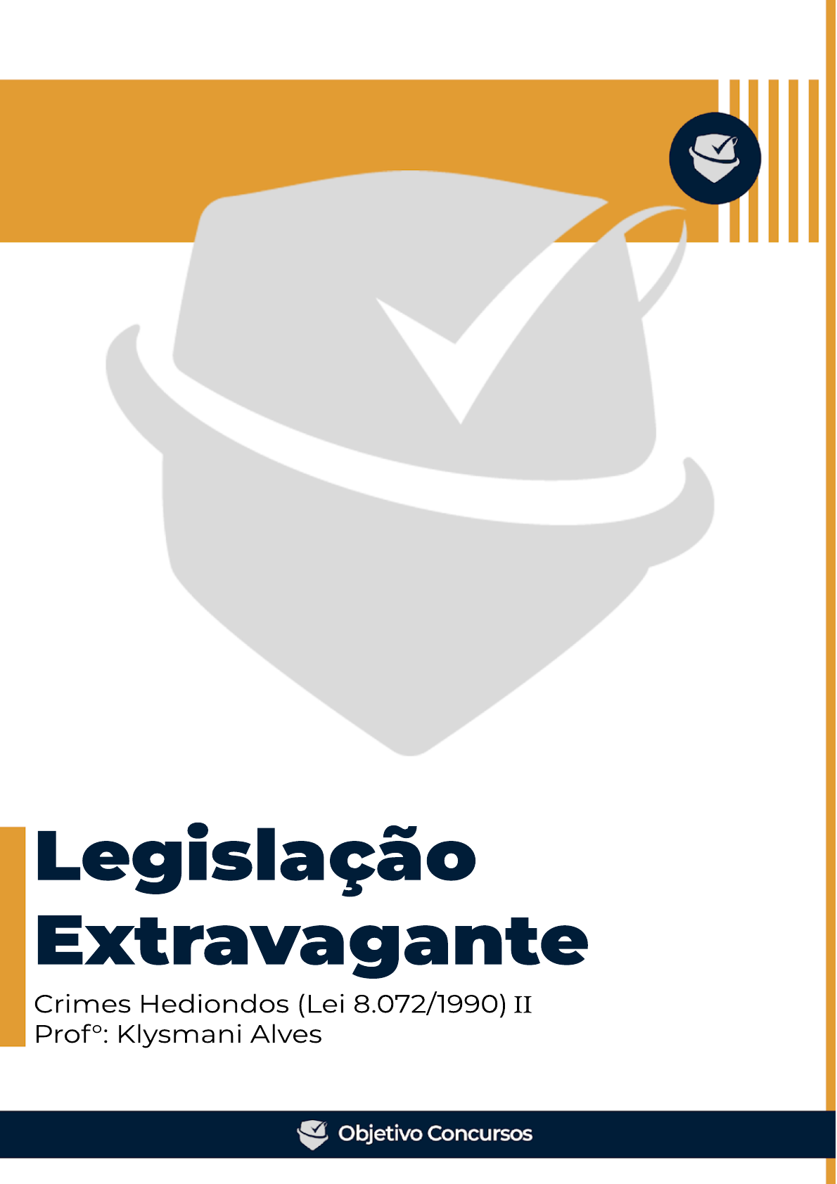 SUMÁRIO 1. CRIMES HEDIONDOS CONTRA A DIGNIDADE SEXUAL 3 2. CRIME HEDIONDO CONTRA A PAZ PÚBLICA 3 3. CRIMES HEDIONDOS CONTRA A SAÚDE PÚBLICA 3 4. CRIMES HEDIONDOS CONTRA A INCOLUMIDADE PÚBLICA 3 5. EQUIPARADOS A HEDIONDOS 4 6. CONSEQUÊNCIAS JURÍDICAS GRAVOSAS 4 7. REGIME INICIAL 4 8. PROGRESSÃO DE REGIME 5 9. PRISÃO TEMPORÁRIA 5 10. EXERCÍCIOS 6 11. GABARITO 8 2 CRIMES HEDIONDOS 1. CRIMES HEDIONDOS CONTRA A DIGNIDADE SEXUAL V - Estupro (art. 213, caput e §§ 1 o e 2 o ); VI - Estupro de vulnerável (art. 217-A, caput e §§ 1 o , 2 o , 3 o e 4 o ); VIII - Favorecimento da prostituição ou de outra forma de exploração sexual de criança ou adolescente ou de vulnerável (art. 218-B, caput, e §§ 1º e 2º). 2. CRIME HEDIONDO CONTRA A PAZ PÚBLICA V - O crime de organização criminosa, quando direcionado à prática de crime hediondo ou equiparado. ● A organização criminosa somente é hedionda no caso acima. O examinador adora confundir dizendo por exemplo que o homicídio simples quando praticado pela OCRIM é hediondo, quando não é! Homicídio simples praticado pelo OCRIM não é HEDIONDO 3. CRIMES HEDIONDOS CONTRA A SAÚDE PÚBLICA VII - Epidemia com resultado morte (art. 267, § 1 o ). VII-B - Falsificação, corrupção, adulteração ou alteração de produto destinado a fins terapêuticos ou medicinais (art. 273, caput e § 1 o , § 1 o -A e § 1 o -B, com a redação dada pela Lei n o 9.677, de 2 de julho de 1998 ). 4. CRIMES HEDIONDOS CONTRA A INCOLUMIDADE PÚBLICA Parágrafo único. Consideram-se também hediondos, tentados ou consumados : II - O crime de posse ou porte ilegal de arma de fogo de uso proibido, previsto no art. 16 da Lei nº 10.826, de 22 de dezembro de 2003 ; (Incluído pela Lei nº 13.964, de 2019) ● Até a entrada em vigor, era hediondo a posse/porte da arma de fogo de uso RESTRITO, o pacote anticrime alterou essa disposição e agora somente é considerado hediondo a posse/porte de arma de fogo de uso PROIBIDO ! 3 https://www.planalto.gov.br/ccivil_03/leis/L9677.htm https://www.planalto.gov.br/ccivil_03/leis/2003/L10.826.htm#art16 https://www.planalto.gov.br/ccivil_03/_Ato2019-2022/2019/Lei/L13964.htm#art5 https://www.planalto.gov.br/ccivil_03/_Ato2019-2022/2019/Lei/L13964.htm#art5 III - O crime de comércio ilegal de armas de fogo, previsto no art. 17 da Lei nº 10.826, de 22 de dezembro de 2003 ; (Incluído pela Lei nº 13.964, de 2019) IV - O crime de tráfico internacional de arma de fogo, acessório ou munição, previsto no art. 18 da Lei nº 10.826, de 22 de dezembro de 2003 ; (Incluído pela Lei nº 13.964, de 2019) Esses são os únicos delitos do estatuto do desarmamento que são considerados hediondos. 5. EQUIPARADOS A HEDIONDOS ⮚ 3T : ● TORTURA; ● TRÁFICO DE DROGAS; ● TERRORISMO. Atenção ao tráfico, não é tráfico de pessoas, é tráfico de drogas! 6. CONSEQUÊNCIAS JURÍDICAS GRAVOSAS Os hediondos e equiparados são inafiançáveis, insuscetíveis de graça, indulto e anistia. OBS: Não há vedação à liberdade provisória! 7. REGIME INICIAL § 1 o A pena por crime previsto neste artigo será cumprida inicialmente em regime fechado. A lei trás essa disposição, entretanto, o stf entendeu ser inconstitucional esse dispositivo, vez que fere, entre outros, o princípio da individualização da pena, conforme julgado abaixo: 4 https://www.planalto.gov.br/ccivil_03/leis/2003/L10.826.htm#art17 https://www.planalto.gov.br/ccivil_03/leis/2003/L10.826.htm#art17 https://www.planalto.gov.br/ccivil_03/_Ato2019-2022/2019/Lei/L13964.htm#art5 https://www.planalto.gov.br/ccivil_03/leis/2003/L10.826.htm#art18 https://www.planalto.gov.br/ccivil_03/leis/2003/L10.826.htm#art18 https://www.planalto.gov.br/ccivil_03/_Ato2019-2022/2019/Lei/L13964.htm#art5 8. PROGRESSÃO DE REGIME O § 2º do Art.1º foi revogado pelo pac, e as disposições acerca da progressão de regime passarão a ser regidas pela lei de execução penal. No caso dos hediondos, a lep dispõe que a progressão de regime se dará da seguinte forma: Art. 112. A pena privativa de liberdade será executada em forma progressiva com a transferência para regime menos rigoroso, a ser determinada pelo juiz, quando o preso tiver cumprido ao menos: V - 40% (quarenta por cento) da pena, se o apenado for condenado pela prática de crime hediondo ou equiparado, se for primário ; (Incluído pela Lei nº 13.964, de 2019) VI - 50% (cinquenta por cento) da pena, se o apenado for : (Incluído pela Lei nº 13.964, de 2019) ● a) condenado pela prática de crime hediondo ou equiparado, com resultado morte, se for primário, vedado o livramento condicional; VII - 60% (sessenta por cento) da pena, se o apenado for reincidente na prática de crime hediondo ou equiparado; (Incluído pela Lei nº 13.964, de 2019) VIII - 70% (setenta por cento) da pena, se o apenado for reincidente em crime hediondo ou equiparado com resultado morte, vedado o livramento condicional. 9. PRISÃO TEMPORÁRIA § 4 o A prisão temporária, sobre a qual dispõe a Lei n o 7.960, de 21 de dezembro de 1989 , nos crimes previstos neste artigo, terá o prazo de 30 (trinta) dias , prorrogável por igual período em caso de extrema e comprovada necessidade . (Incluído pela Lei nº 11.464, de 2007) § 3 o Em caso de sentença condenatória, o juiz decidirá fundamentadamente se o réu poderá apelar em liberdade. 5 https://www.planalto.gov.br/ccivil_03/_Ato2019-2022/2019/Lei/L13964.htm#art4 https://www.planalto.gov.br/ccivil_03/_Ato2019-2022/2019/Lei/L13964.htm#art4 https://www.planalto.gov.br/ccivil_03/_Ato2019-2022/2019/Lei/L13964.htm#art4 https://www.planalto.gov.br/ccivil_03/_Ato2019-2022/2019/Lei/L13964.htm#art4 https://www.planalto.gov.br/ccivil_03/_Ato2019-2022/2019/Lei/L13964.htm#art4 https://www.planalto.gov.br/ccivil_03/leis/L7960.htm https://www.planalto.gov.br/ccivil_03/leis/L7960.htm https://www.planalto.gov.br/ccivil_03/_Ato2007-2010/2007/Lei/L11464.htm#art1 Art. 3º A União manterá estabelecimentos