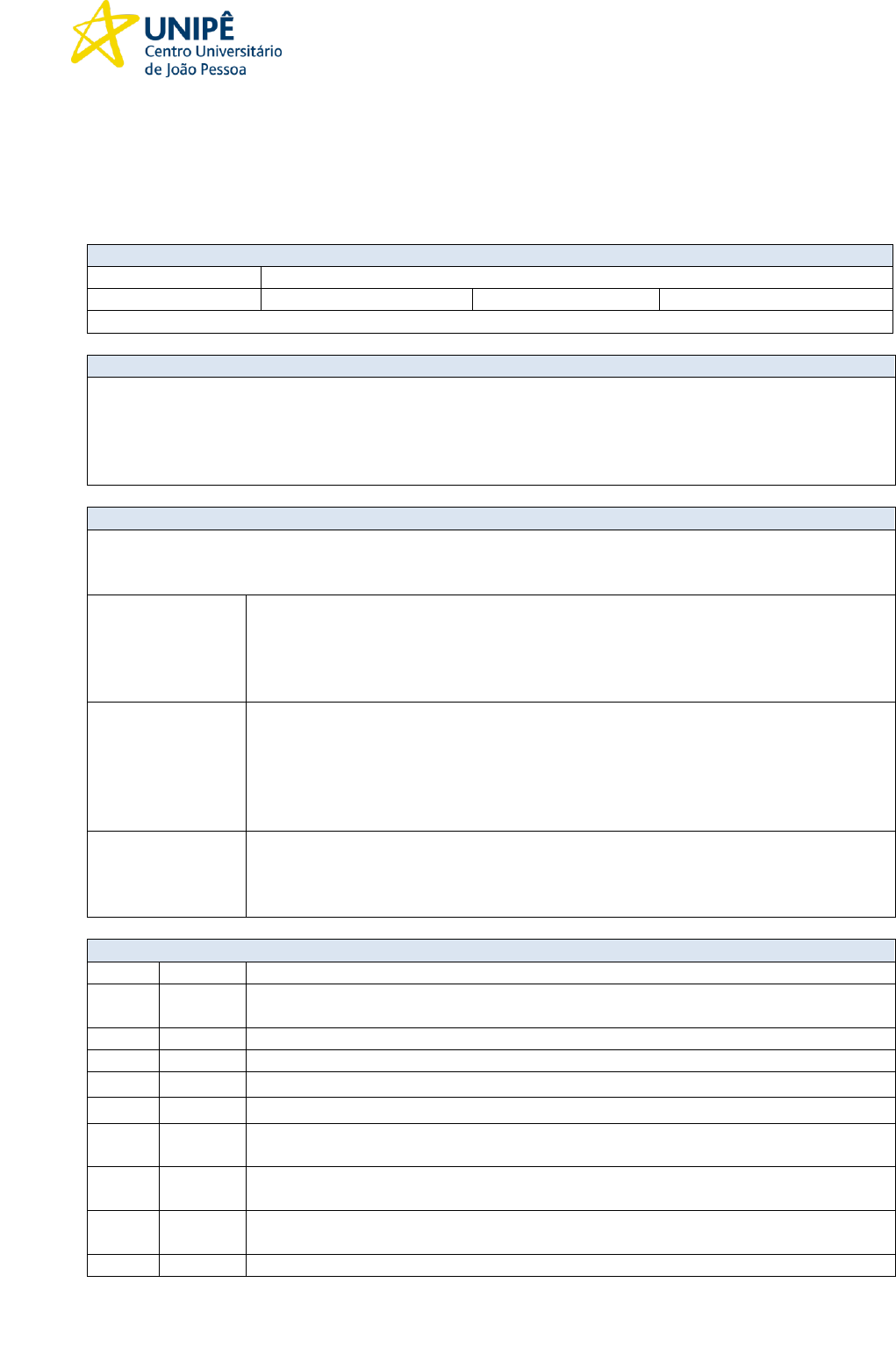 www.unipe.edu.br BR-230 – KM 22, Água Fria. 58053 002 João Pessoa PB Brasil T F 55 83 2106 9202 Recredenciada pela Portaria Ministerial nº 909, de 06/07/2012, DOU nº 131, de 09/07/2012, seção 1, p. 24. Pró-Reitoria Acadêmica – PROAC Assessoria Acadêmica – ASAC PLANO DE ENSINO – 2023.2/ 2º SEMESTRE PLANO DE ENSINO Curso: Psicologia Disciplina: Análise Experimental do Comportamento Semestre: 3º/4º Turno: Tarde/Noite C/H semana: 3h C/H semestral: 60h Professor Responsável: ISABELLE TAVARE EMENTA Fundamentos básicos sobre a Análise Experimental do Comportamento (AEC) nos seus aspectos metodológicos, epistemológicos e teóricos. As contribuições de John Watson e Ivan Pavlov para a elaboração da teoria do condicionamento operante de Skinner. Behaviorismo Radical. Experimentos em laboratório de informática com a aplicação dos princípios da AEC. OBJETIVOS Desenvolver habilidades científicas quanto à observação, análise, reflexão, crítica e elaboração técnica e adequada de relatórios científicos aplicando os conceitos teóricos à situação prática a partir da identificação dos princípios da AEC. Cognitivos - Conceituar os fundamentos históricos, enfatizando a origem da análise do comportamento por meio do método experimental; - Compreender os princípios da análise experimental do comportamento, aplicando-os para situações práticas do psicólogo, mediante exemplos. Habilidades - Utilizar modelos experimentais no estudo do comportamento por meio da pesquisa experimental; - Lidar com os elementos essenciais para realização da pesquisa experimental a partir da simulação via software; - Ler, interpretar e realizar comunicações científicas e relatórios na área da Psicologia com linguagem científica adequada; Atitudes - Contribuir para a construção do perfil de pesquisador e acadêmico no estudante; - Desenvolver postura ética, proativa, empática e assertiva na construção grupal. CONTEÚDO UND C/H I 3h Acolhida discente. Apresentação da disciplina, professora e turma. Vídeo motivacional. I 6h Introdução à ciência do comportamento e conceitos iniciais I 6h Pilar filosófico da análise do comportamento: behaviorismo radical I 3h Pilar metodológico da análise do comportamento: experimental I 3h Pilar aplicado da análise do comportamento: ABA I 6h Especificidades da modificação do comportamento com base no condicionamento operante de Skinner II 3h Sniffy Pro e pesquisas experimentais que utilizam softwares em Psicologia II 3h Embasamento teórico das atividades experimentais a serem desenvolvidas II 12h Realização prática das atividades experimentais com o Sniffy Pro Clicksign e7c7623d-a888-4dca-913e-a35d4ada3273 www.unipe.edu.br BR-230 – KM 22, Água Fria. 58053 002 João Pessoa PB Brasil T F 55 83 2106 9202 Recredenciada pela Portaria Ministerial nº 909, de 06/07/2012, DOU nº 131, de 09/07/2012, seção 1, p. 24. II 6h Supervisão da construção do relatório II 3h Apresentação e discussão sobre os resultados da pesquisa e do relatório ESTRATÉGIA DE ENSINO Como técnicas de ensino serão utilizadas aulas expositivas dialogadas, problematização, rodas de conversa, debates, estudos de caso, investigação científica com ênfase na metodologia experimental, orientações dos relatórios, exposições orais. Como tecnologias de informação e comunicação (TICs) serão utilizados objetos digitais de aprendizagem (vídeos, software Sniffy Pro), ferramentas de comunicação, ferramentas de trabalho, ferramentas de interação (enquete, nuvem de palavras), Ambiente Virtual de Aprendizagem (AVA). RECURSOS DISPONÍVEIS Livros, ebooks, artigos, revistas científicas, bases de dados (Scielo, Portal CAPES, BDTD), recursos audiovisuais (slides, vídeos, músicas). AVALIAÇÃO - Avaliação diagnóstica por meio de rodas de conversa para reforçar os conhecimentos e habilidades adquiridas, tanto na perspectiva teórica quanto prática. - Avaliação formativa por meio de atividades e orientações do relatório, buscando verificar a aprendizagem do aluno no que se refere à aplicação dos conceitos teóricos para execução, análise e discussão de dados das atividades experimentais; a articulação e coerência das ideias; a capacidade interpretativa; e ao pensamento crítico. Serão avaliados também frequência e participação nas aulas e pontualidade na entrega das atividades. - Avaliação somativa através da avaliação do desenvolvimento das atividades teóricas e práticas. AVALIAÇÃO TIPO INSTRUMENTO PONTUAÇÃO A1 Formativa Atividades 2,0 Somativa Prova teórica 3,0 TOTAL A1 5,0 A2 Formativa Realização das atividades experimentais 1,0 Somativa Entrega do relatório 2,5 Prova teórica 1,5 TOTAL A2 5,0 BIBLIOGRAFIA BÁSICA COMPLEMENTAR ALLOWAY, T.; WILSON, G.; GRAHAM, J. Sniffy: o rato virtual - versão 3.0. 3. ed. São Paulo: Cengage Learning, 2017. CAMPOS, L. F. L. Métodos e Técnicas de Pesquisa em Psicologia. 5. ed. Campinas: Alínea, 2015. CARVALHO NETO, M. B. Análise do comportamento: behaviorismo radical, análise experimental do comportamento e análise aplicada do comportamento. Interação em Psicologia, v. 6, n. 1, p. 13-18, 2002. https://revistas.ufpr.br/psicologia/article/view/3188 FELDMAN, R. S. Introdução à Psicologia. 10. ed. São Paulo: McGraw-Hill, 2015. Clicksign e7c7623d-a888-4dca-913e-a35d4ada3273 www.unipe.edu.br BR-230 – KM 22, Água Fria. 58053 002 João Pessoa PB Brasil T F 55 83 2106 9202 Recredenciada pela Portaria Ministerial nº 909, de 06/07/2012, DOU nº 131, de 09/07/2012, seção 1, p. 24. MOREIRA, M. B.; MEDEIROS, C. A. Princípios básicos de análise do comportamento. 2. ed. Porto Alegre: Artmed, 2018. MATOS, M. A análise do comportamento no laboratório didático. São Paulo: Manole, 2002. SKINNER, B. F. Ciência e comportamento humano. 5. ed. São Paulo: Martins Fontes, 1981. SKINNER, B. F. Sobre o Behaviorismo. São Paulo: Cultrix, 2006. Clicksign e7c76