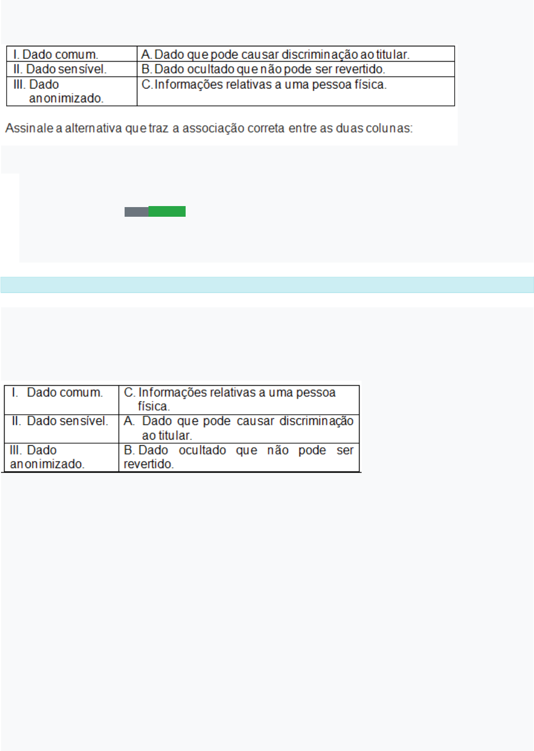 1)O GDPR traz definições sobre os dados pessoais e suas características de acordo com seu conteúdo e sua forma de identificação. Leia e associe as duas colunas conforme o Regulamento Geral Europeu de Proteção de Dados Pessoais. Alternativas: · I – B; II – C; III – A. · I – C; II – A; III – B.checkCORRETO · I – B; II – A; III – C. · I – C; II – B; III – A. · I – A; II – C; III – B. Resolução comentada: Os dados pessoais são as informações que identificam os seus titulares ou podem identificá-los, e quando puderem ser discriminatórios serão considerados sensíveis. Já os dados anonimizados são aqueles que uma vez ocultados não podem mais ser revelados, sendo impossível sua reversão. Os dados que podem ser revertidos, ou seja, novamente revelados, são os pseudoanonimizados. 2)O GDPR afirma em seu artigo 9º que em regra é proibido o tratamento de dados pessoais que possam causar algum tipo de discriminação e que são considerados dados especiais ou sensíveis. Sobre a relevância do tema, analise as assertivas a seguir e identifique as corretas: I. É proibido o tratamento de dados pessoais que revelem a origem racial ou étnica, as opiniões políticas, as convicções religiosas ou filosóficas, salvo exceções legais. II. Ainda há a possibilidade de tratamento de dados especiais no GDPR sem o consentimento do titular quando versarem sobre interesses vitais do titular. III. Organizações políticas, filosóficas, religiosas e sindicais podem tratar todos os dados que controlam por expressa previsão do GDPR. IV. O GDPR e a LGPD consideram condenações penais e infrações como dados pessoais sensíveis. V. Os Estados-Membros podem manter ou impor novas condições, incluindo limitações, no que respeita ao tratamento de dados genéticos, dados biométricos ou dados relativos à saúde. São verdadeiras: Fonte: UE. União Europeia. Regulamento geral de proteção de dados pessoais. UE: Parlamento Europeu, 2016. Alternativas: · I e V, apenas. · I, II e IV, apenas. · I, II e V, apenas.checkCORRETO · I, II e III, apenas. · II, III e IV, apenas. Resolução comentada: A afirmativa I é correta, pois é o que prevê o GDPR no seu artigo 9º e seus itens. A afirmativa II é correta, conforme previsão legal do GDPR no artigo 9º, item 2, alínea c. A afirmativa III é incorreta, pois as organizações políticas, filosóficas, religiosas e sindicais podem tratar dados desde que pertençam aos membros ou antigos membros da organização sem que sejam compartilhados com terceiros sem as autorizações desses titulares. A afirmativa IV é incorreta, pois somente no GDPR condenações penais e infrações são considerados dados especiais; a LGPD não as classifica dessa forma. A afirmativa V é correta, pois expressa previsão legal do GDPR, no artigo 9º, item 4. 3)A privacidade se tornou um dos ativos mais valiosos do mercado mundial. As Big techs crescem nos seus mercados violando a privacidade com dados pessoais coletados que entregamos todos os dias nas redes ou em empresas que solicitam dados na prestação de serviços como moeda de troca, oferecendo benefícios como atrativos. Sobre o alcance do direito fundamental constitucional no Brasil, assinale a alternativa correta: Alternativas: · A proteção de dados pessoais não é considerada direito fundamental, pois ainda carece de previsão constitucional no artigo 5º da Carta Magna. · A privacidade é direito fundamental no Brasil, mas ele não é reconhecido da mesma forma na Declaração dos Direitos Humanos. · A privacidade no Brasil é um direito fundamental, mas a proteção de dados pessoais não tem o mesmo status. · A proteção de dados pessoais e a privacidade têm previsão expressa na Constituição como direito fundamental.checkCORRETO · O titular de direitos fundamentais pode dispor de sua privacidade, pois cabe a ele decidir sobre qual direito poderá usufruir. Resolução comentada: A privacidade é direito fundamental, conforme artigo 5º, inciso X, da Constituição Federal, e a proteção de dados goza do mesmo status com previsão no inciso LXXIX do mesmo artigo. Ambos são indisponíveis e inalienáveis. Fonte: BRASIL. Constituição da República Federativa do Brasil de 1988. Brasília, DF: Presidência da República, 1988. 4)A privacidade por padrão (Privacy by Default) disponibiliza o máximo grau de privacidade, estruturando que os dados pessoais sejam preparados para os ambientes da tecnologia da informação ou o da prática de negócios; e a Privacy by Design lida com as consequências da tecnologia da informação e da comunicação, além dos sistemas de dados em grande escala. Sobre as duas formas de proteção, analise as assertivas a seguir e identifique as corretas: I. A privacidade por padrão (Privacy by Default) é padrão internacional e foi aprovada por unanimidade pelas autoridades especializadas em privacidade de diversos países. II. Os resultados da Privacy by Design e da Privacy by Default criam a conscientização de privacidade e proteção de dados pessoais em todas as equipes, tornando-as propensas a cumprir suas obrigações. III. A privacidade é um elo indissociável de qualquer sistema, conectada às tecnologias, às operações e às ações dos projetos dos controladores dos dados. IV. O GDPR, quanto às medidas de proteção que devem ser tomadas no Privacy by Design, permite um conceito aberto quanto às suas ações. V. O Privacy by Design requer que a privacidade e a proteção de dados sejam consideradas quando a maturidade atingir o projeto, o sistema ou o processo. São verdadeiras: Alternativas: · I, II e V, apenas · II, III, IV e V, apenas. · II, III e IV, apenas.checkCORRETO · I, II e III, apenas. · I, IV e V, apenas Resolução comentada: A alternativa correta é a que traz como resposta: “II, III e IV, apenas”. Veja a forma correta das afirmativas falsas: I. Privacidade por Design é um conce