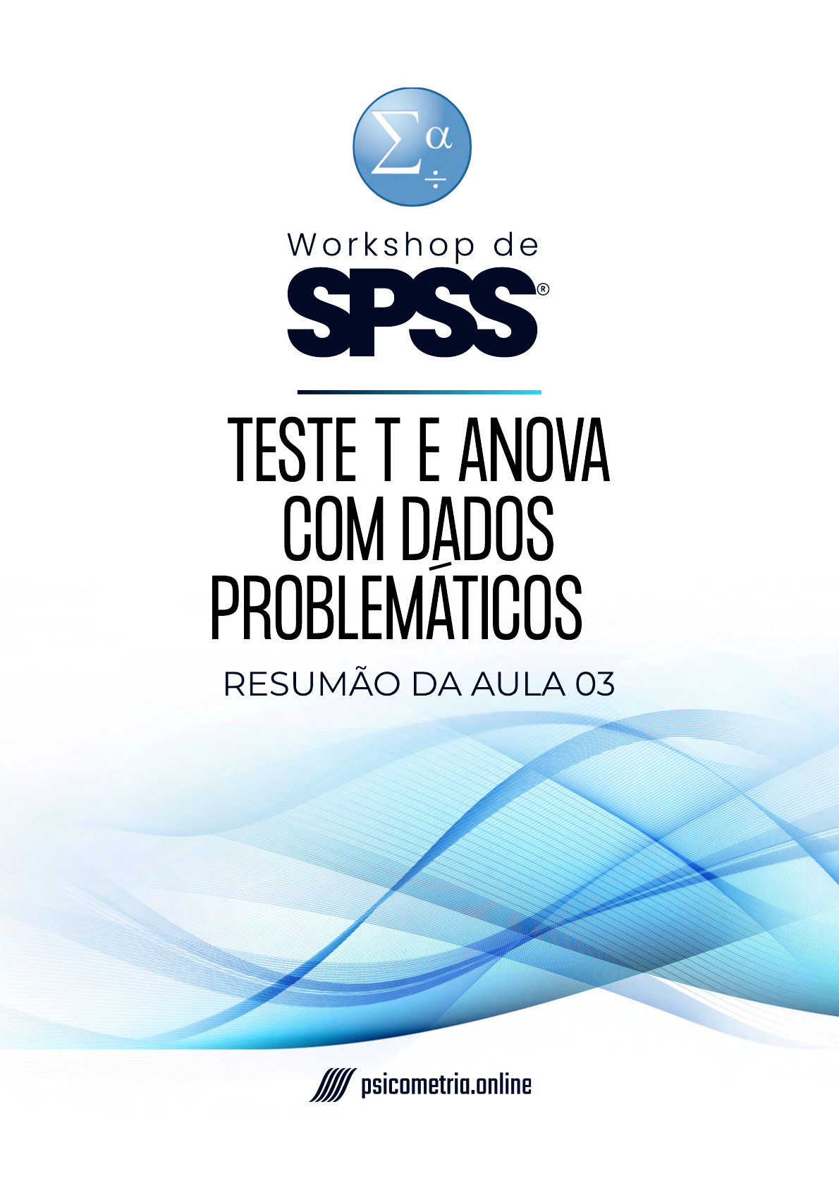 RESUMÃO DA AULA 03 TESTE T E ANOVA COM DADOS PROBLEMÁTICOS Nesse resumo da AULA 3, vamos abordar o que são os testes t e ANOVAs. Mais que isso, vamos explicar como você pode realizar as análises dos Testes T e ANOVA mesmo que seus dados não cumpra os pressupostos de homogeneidade de variância e distribuição normal. Para fins didáticos, começaremos abordando o Teste T e, posteriormente, falaremos da ANOVA. TESTE T Procedimentos de análise de dados que buscam comparar um grupo de pessoas a um determinado escore pré-estabelecido, comparar dois grupos entre si ou o mesmo grupo em dois momentos distintos. Conforme pode ser visto, os testes t apresentam vários objetivos, e para cada um desses objetivos, existe um teste t específico, conforme tabela abaixo: Embora haja diferentes tipos de testes t, vamos abordar aqui mais especificamente o teste t para amostras independentes. O teste t para amostras independentes avalia a diferença nos níveis de uma determinada variável ‘x’ entre dois grupos independentes. Sua principal característica é a presença de uma variável dicotômica e uma variável contínua. Exemplo: Cargos (diretores vs não diretores) e satisfação com o trabalho. Para deixar ainda mais claro, vamos visualizar mais exemplos de pesquisa. Perceba que a segunda e terceira coluna explica quem é a variável contínua e a variável de grupo (dicotômica). O Teste T O Teste T para amostras independentes apresentam alguns pressupostos: Medida contínua: A medida deve ser contínua. Independência das observações: A resposta de um participante não deve influenciar a resposta de outro. Homoscedasticidade: Espera-se que os grupos tenham homogeneidade de variância. Distribuição normal: Por ser um teste paramétrico, requer distribuição normal. Vamos agora entender o que é e como se resolve, de forma metodologicamente correta, a ausência de homogeneidade de variância (heteroscedasticidade) e a ausência de distribuição normal. Vamos agora entender o que é e como se resolve, de forma metodologicamente correta, a ausência de homogeneidade de variância (heteroscedasticidade) e a ausência de distribuição normal. Homogeneidade de variância A homogeneidade de variância refere-se ao pressuposto de que a variabilidade dos escores do grupo em torno da média são equivalentes. Isso não significa que as médias precisam ser equivalentes. Veja nesse exemplo didático, da Figura 1, que as médias, representadas pela barra preta horizontal, são relativamente diferentes, embora que a variabilidade dos escores (dispersão dos pontos vermelhos) são relativamente equivalentes. O contrário também pode acontecer. As médias podem ser equivalentes, mas a dispersão dos escores serem diferentes, indicando heterogeneidade de variância (Ver Figura 2). E como resolver quando a homogeneidade de variância não for acatada? No SPSS, ao realizar um teste t de Student, você verá duas linhas Equal variances assumed (Variâncias iguais assumidas) Equal variances not assumed (Variâncias iguais não assumidas). A princípio, a homogeneidade de variância é acatada quando o valor de p da primeira linha é maior que 0,05 (p > 0,05). Quando não é, pode-se utilizar os resultados oriundos da segunda linha (Equal variances not assumed). Essa é uma famosa correção, chamada correção de Welch. Para ser mais preciso, atualmente, se entende que a correção de Welch (ou seja, os resultados da segunda linha) são sempre superiores aos da primeira. Nesses casos, deveríamos sempre adotar o teste t de Welch e não mais o teste t de Student, conforme referências abaixo. DISTRIBUIÇÃO DE NORMALIDADE. Por ser um teste paramétrico, o teste t requer que os dados tenham distribuição normal. Entretanto, muitas vezes essa distribuição não acontece nas pesquisas das ciências humanas, sociais e da saúde. Quando a distribuição não é normal, os pesquisadores, em geral, buscam realizar testes não-paramétricos equivalentes, como o Mann-Whitney. Entretanto, isso não é necessário. Há uma forma metodologicamente correta de realizar teste t sem distribuição normal. E a solução para isso se chama Bootstrapping (Re-Amostragem). Bootstrapping O procedimento de bootstrapping foi desenvolvido pelo Epidemiologista Bradley Efron, e tem como principal objetivo apresentar intervalos de confiança para estimativas amostrais, e realizar inferências estatísticas a partir desses resultados. Por ser um processo de reamostragem, o boostrapping corrige distribuição de normalidade para os dados. Os detalhes teóricos deste procedimento foram apresentados na Aula 3 do Workshop de SPSS. Aqui, basta você saber que o SPSS apresenta uma forma de você solicitar o bootstrapping. Feito isso, haverá uma saída específica com o teste t realizado com boostrapping. Nela, os seus resultados poderão ser analisados tranquilamente, mesmo que você não tenha distribuição normal (Haukoos & Lewis, 2005). ANÁLISE DE VARIÂNCIA (ANOVA) Em relação à ANOVA, as correções dos pressupostos são muito semelhantes. Mas antes de falarmos das correções, vamos explicar rapidamente o que é ANOVA e como ela se diferencia do teste T. A Análise de Variância é, também, um conjunto de procedimentos que visa avaliar a diferença entre grupos ou entre sujeitos em diferentes coletas. Existe uma ampla variedade de técnicas que entra no rol de Análises de variância, mas aqui falaremos exclusivamente da Análise de Variância simples (ou ANOVA de uma via; em inglês ANOVA one-way). Enquanto o teste t para amostras independentes deve ser implementado quando há dois grupos, a ANOVA one-way deve ser usada quando há três ou mais grupos sendo comparados entre si (Ver Tabela abaixo). Porque realizar uma anova? A ANOVA traz alguns benefícios, quando comparado com o teste t. Em uma única análise você compara todos os grupos que você tiver. Além disso, ela controla o Erro Tipo I por meio de análises 