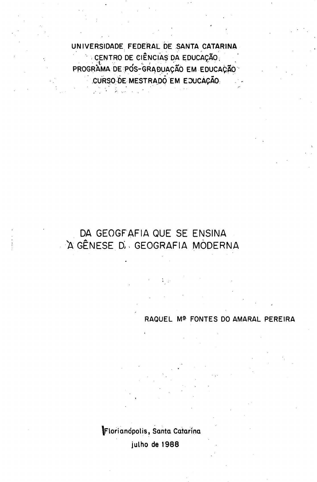 1» › DN |vERs1DADE FEDERAL DE .$ANTA JDATAREWA A 4 É ÇENTRD DE c|ENc¡A$ED_A EDucAç¬AD. _ PROGRAMA~DE-;PdsfeRL~,DD¿\çÂo EM zEDucA¢ÃD~ ;cu'R$o..'DE.EMESTDRADÕ 'EM EDucÀçÃDz õ » DA GEOGFAFIA QUE SE EN-SINA `/.x DÊNESE DL GEDGRAHA MODERNA RAQUEL M9 FONTES DO AMARAL PERE|RA 1 \ \Flor"iDnópDli_sV, Soñtu. Caiafína A ¡u1h‹› de mas ' UNIVERSIDADE FEDERAL DE SANTA CATARINA PROG cENTRo DE c1ENc1As DA EDUCACÃD RAMA DE Pós-GRADUAÇÃD EM EDUCAÇÃD _ cuRso DE MESTRADD EM EDUCAÇÃO ` DA GEOGRAFIA QUE SE ENSINA à GÊNESE DA GEOGRAFIA MODERNA - RAQUEL M4 Fowres vo AMARAL PEREIRA - FLoR1ANöPoL1s, SANTA CATARINA JULHO/ 1988 1' I' APROVADO PEL ii UNIVERSIDADE FEDERAL DE sAMTA CATARIMA cEMTRo DE cIENcIAs DA EDucAcAoE _ PRDGRAMA DE Pós-ERADUACAD EM EDucAcAo _.cuRso DE MESTRADO 'EM `EDucA¢Ao . DA GEOGRAFIA QUE SE ENSINA» à eÊMEsE DA GEOGRAFIA MDDERNA DISSERTAÇÃO APRESENTADA AO COLEGIADO DO CURSO DE MESTRADO EM EDUCAÇÃO DO CENTRO DE CIÊNCIAS DA EDUCAÇÃO COMO EXIGÊNCIA 7 PARCIAL PARA A OBTENÇÃO DO TÍTULO DE MESTRE EM EDUCAÇÃO. I' I A coMIss o EXAMINA oRA EM /O OA/1988. \ A ' - Orientador lv Jose smann - UFSC Prof. . " *z . . F i>'›fI. 'M " Prof. Dr'=.Mi1t<›n.A. dosl'-szmtos - USP }i ¢f~4w.uu»~¿[@u«~v z - Prof. Dr.Armen Mamigonían - UFSC/USP _ E E ~ RAQDEL M9 FoMTEs vo AMARAL PEREIRA - 1 ELDRIAMÕPDLIS, sANTA CATARINA JULHO/1988» iii Vafieu a pena? Tudo vale a pena Se a afima não ë pequena. Quem quea paóóaa afiem do Bojadoa Tem que paóóaa aiëm da doa. Deuó ao mau peaigoó e abáàmoó deu Maó áoá nefle que eópeihou o ceu". - Fernando Pessoa - à memoa¿a de meu pai, Caaloó Baäboóa Foniea homem de Iantoó óonhoó que uiveu tao pouco ... L à Luc¿a e a SZ£u¿a, aó m¿nhaó'men¿naó, que caaaegam oó óeuó e oó noóóoó óonhoó ¿£um¿nadoó de óám. V iv ABSTRACT ~ The Geography that is taught contains a hind of discourse characterized by an apparent neutrality in which the difficulty to formulate satisfactorily the relationship between society and nature stands out; By attempting to handle both the natural environment as well as society, Geography_is different from the other sciences and in spite of the possibilities of being able to cope with reality because it deals with its two component fields, it withdraws from reality because of its íncapacity to consider space as a social construction. p Nevertheless,the fragmentary and dualist form of educational Geography can be partially explained through the relationships between this discipline and the expansion of formal education which are much more profound than can be imagined at first sight, since both modern Geography and the public system of education are offspring of the nineteenth century. . The questioning of the past and the search for the historical roots of the geographical knowledge is essential for the success of any renewing proposal whose construction, in the realm of educational Geography, requires the knowledge of the moment responsible for the genesis of modern Geography. Thus, the present study, by approaching the problem of the relationship man-nature in the midst of traditional Geography, tries to understand and locate the reasons for this duality, performing a brief historical regression that demonstrates its existence much beyond the limites of Geography itself. lt is in Germany, in the nineteenth century, that modern Geography flourishes and that this science is introduced as an obligatory educational discipline in the composition of the curriculum in the three levels of school education. Specific historical reasons, of a material and ideological kind, explain its brith. Humboldt and Ritter are the first to formulate modern Geography and their theoretical proposals, artículating regional Geography and general Geography, allow thesnstmmmiuufion of geographical knowledge and its existence as an autonomous - area of knowledge according to moderns patterns. ~ E t /Á V R E S U M‹0 A geografia que se ensina encerra um discurso ca racterizado por uma aparente neutralidade em que se destaca a dificuldade de articular de forma satisfatõria a relação entre sociedade e natureza. ' ' X Pretendendo tratar tanto do meio natural quanto da sociedade, a geografia diferencia-se das demais ciências e apesar das possibilidades de dar conta da realidade portra tar das duas esferas que a compoem,_dela se distanciapor sua incapacidade de considerar o espaço como uma construçao so- cial. No entanto, a forma fragmentária e dualista da geogra- fia escolar pode ser explicada, em parte, pelas relações en- tre esta disciplina e a expansão da escolaridade que são mui to mais profundas do que se possa imaginar a primeira vista, pois tanto a geografia moderna como o sistema público de en- sino são frutosdo sêculo XIX. . A interrogação do passado e a busca das raízes .4 .. .- , histõricas`do conhecimento geograñcosao indispensaveusao su ~ À cesso de qualquer proposta renovadora cuja construçao, no am bito da geografia escolar, torna necessário conhecer o momen to responsável pela gênese da geografia moderna. Por isso, o presente estudo, ao abordar a problemática da relação homem- natureza no seio da geografia tradicional, procura compreen- der e situar as razões desta dualidade, fazendo um breve re- cuo histõrico que demonstra sua presença muito além dos limi tes da prõpria geografia. _ E na Alemanha, no século XIX, que floresce a geg grafia moderna e que se dã a introduçao dessa ciência como disciplina escolar obrigatõria na composição curricular dos três niveis de ensino. Razões histõricas especificas, de or- dem material e ideolõgica, explicam o seu nascimento. Hum- boldt e.Ritter são os primeiros formuladores da geografia mg derna e suas propostas teõricas, articulando geografia regio V 1 nal e geografia geral, propiciam a sistematizaçao do conheci mento geográfico e sua existência como um campo de conheci- A ~ mento autonomo,de acor