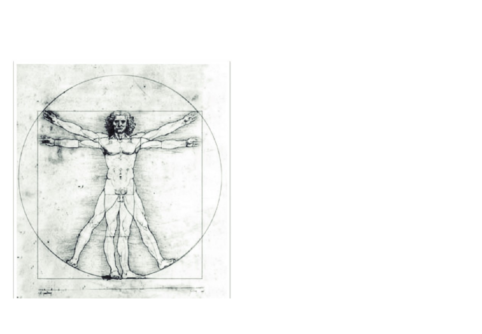 Em 1480, Leonardo da Vinci usou parte da obra de Vitruvius em que este explicava as razões ideais do corpo humano e suas relações. Segundo o tratado, as proporções ideais seriam então: Um palmo é o comprimento de quatro dedos; Um pé é o comprimento de quatro palmos; Um côvado (comprimento do antebraço, da ponta do dedo médio até o cotovelo) é o comprimento de seis palmos; Um passo são quatro côvados; A altura de um homem é quatro côvados; O comprimento dos braços abertos de um homem é igual à sua altura; A distância entre a linha de cabelo na testa e o fundo do queixo é um décimo da altura de um homem; A distância entre o topo da cabeça e o fundo do queixo é um oitavo da altura de um homem; A distância entre o fundo do pescoço e a linha de cabelo na testa é um sexto da altura de um homem; O comprimento máximo nos ombros é um quarto da altura de um homem; A distância entre o meio do peito e o topo da cabeça é um quarto da altura de um homem; A distância entre o cotovelo e a ponta da mão é um quarto da altura de um homem; A distância entre o cotovelo e a axila é um oitavo da altura de um homem; O comprimento da mão é um décimo da altura de um homem; A distância entre o fundo do queixo e o nariz é um terço do comprimento do rosto; A distância entre a linha de cabelo na testa e as sobrancelhas é um terço do comprimento do rosto; O comprimento da orelha é um terço do da face; O comprimento do pé é um sexto da altura. O HOMEM VITRUVIANO Leonardo da Vinci image1.png