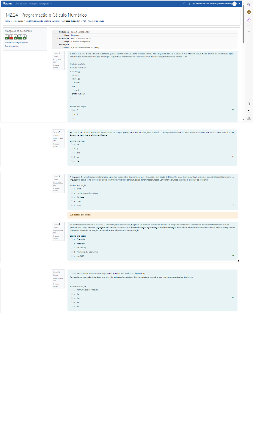 Internal Use PROGRMAÇÃO E CÁLCULO NUMÉRICO: EXERCÍCIOS 1