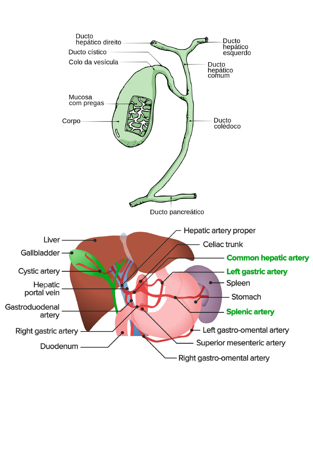 espessura parede vesícula 3mm vesícula biliar 7-10 cm de comprimento e 3-4 cm de diâmetro armazena até 50ml bile via biliar principal diâmetro até 7mm colo/infundíbulo, corpo e fundo da vesícula biliar · o suprimento sanguíneo do ducto hepático comum e do colédoco provém da artéria hepática direita e da artéria cística · suprimento sanguíneo da vesícula biliar e ducto cístico vem da artéria cística · artéria cística ramo da artéria hepática própria (ou ramo da hepática direita, que é ramo da hepática própria), ramo da hepática comum, ramo do tronco celíaco Colecistectomia · perfuração da vesícula biliar, durante uma colecistectomia, com derramamento de bile: como a bile é estéril, não é necessário realizar nenhuma medida adicional durante a cirurgia. Podemos realizar uma lavagem com soro fisiológico, de modo a evitar uma irritação local e evitar infecção pós-operatória - retirar o máximo de cálculos que conseguir pois podem causar manifestações futuras COLECISTECTOMIA ABERTA · risco lesão de ducto biliar (BDI) 0,1-0,2% e lesão vasculobiliar (VBI) COLECISTECTOMIA LAPAROSCÓPICA (CL) · maior risco lesão biliar (0,1-1,5%) e vasculobiliar - tendência decrescente · colecistectomia segura - conceito novo para prevenção COLECISTECTOMIA SEGURA 1. conhecimento profundo da anatomia relevante, vários marcos anatômicos e variações anatômicas · triângulo hepatocístico - delimitado por borda do fígado, ducto cístico e ducto hepático comum - também chamado de triângulo de Calot · triângulo de Calot/hepatobiliar - delimitado por ducto hepático comum, ducto cístico e artéria cística · linfonodo cístico geralmente superficial à artéria cística - ponto de referência para localizar a artéria · artéria deve ser seccionada no lado direito desse linfonodo próximo à vesícula biliar para evitar lesão da artéria hepática direita · placa cística - folha fibrosa ovóide plana localizada no leito da vesícula biliar · NÃO visível com vesícula biliar in situ Anatomia dos triângulos hepatocístico e de Calot. A: Triângulo hepatocístico (contorno vermelho); Triângulo de Calot (em azul); Estruturas anatômicas relevantes; B: Antes da dissecção; C: Após dissecção. CD: Ducto cístico; AC: Artéria cística; NL: Linfonodo; PAH: Artéria hepática própria; CBD: Ducto biliar comum/colédoco A placa cística é visualizada depois que a vesícula biliar é dissecada do leito hepático. Compreender os planos cirúrgicos durante a dissecção. A: Geralmente, nos casos não complicados, o plano de dissecção permanece próximo à vesícula biliar, deixando para trás a placa cística aderida ao fígado; B: Na colecistite crônica, com vesícula biliar pequena e encolhida, desenvolve-se enrugamento do fígado (seta curva vermelha) com encurtamento da placa cística (seta preta interrompida). Com a perda do plano, o cirurgião tende a romper a placa cística (setas vermelhas), resultando em sangramento do fígado. Além disso, existe o risco de entrar no pedículo portal direito durante a primeira abordagem do fundo (seta azul) se tal perigo não for apreciado. 2. compreensão dos mecanismos envolvidos na lesão biliar/vascular, sendo o mais importante a lesão por erro de identificação · identificação incorreta do ducto hepático comum como ducto cístico · identificação incorreta da artéria hepática como artéria cística 3. compreensão e execução da técnica correta · trígono de colecistectomia (Calot) - como é chamado o trígono hepatocístico · retração da vesícula biliar (para abrir e expor o triângulo HC) · dissecção no triângulo HC para alcançar o CVS (visão crítica da segurança de Strasberg) · clipagem e divisão do ducto cístico e da artéria cística · dissecção de a vesícula biliar do seu leito de forma retrógrada (do infundíbulo ao fundo) Marcos anatômicos B-SAFE e linha de segurança R4U. Se o sulco de Rouviere não estiver presente, então a linha imaginária que passa pela base do segmento 4 da fissura umbilical pode ser estendida para a direita através do ligamento hepatoduodenal para determinar a zona segura de dissecção. · sulco de Rouvière: presente na superfície inferior do lobo hepático direito, correndo para direita do hilo hepático - possui 2-5cm de comprimento · fissura umbilical: entre segmentos 2-3 e segmento 4 - onde estão o ligamento falciforme e redondo · linha R4U: teto do sulco de Rouvière até base do segmento 4 do fígado 4. estratégias para lidar com situações difíceis · regras de interrupção · segunda opinião/assistência cirúrgica · uso de imagens intraoperatórias para esclarecimento da anatomia - ex.: colangiografia intraoperatória (contraste iodado injetado diretamente nos ductos biliares) · procedimentos de resgate - ex.: colecistectomia subtotal (mantendo infundíbulo) PREDITORES DE COLECISTECTOMIA DIFÍCIL REGRAS DE PARADA - ALTO RISCO LESÃO ESTRATÉGIAS DE RESGATE 1. abortar totalmente o procedimento 2. converter para procedimento aberto 3. colecistostomia tubular 4. colecistectomia subtotal 5. primeira colecistectomia do fundo 5. documentação CONTRAINDICAÇÕES COLECISTECTOMIA ELETIVA CONTRAINDICAÇÕES ABSOLUTAS · TCE grave · instabilidade hemodinâmica CONTRAINDICAÇÕES RELATIVAS · cirurgias abdominais abertas prévias · IC ou pneumopatias descompensadas · obesidade mórbida (IMC > 40) · idade avançada · peritonite generalizada · gestação - aguardar 2º trimestre · comorbidades descompensadas - controlar antes da cirurgia image9.png image13.png image3.png image8.png image4.png image6.png image7.png image1.png image2.png image12.png image5.png image11.png image10.png