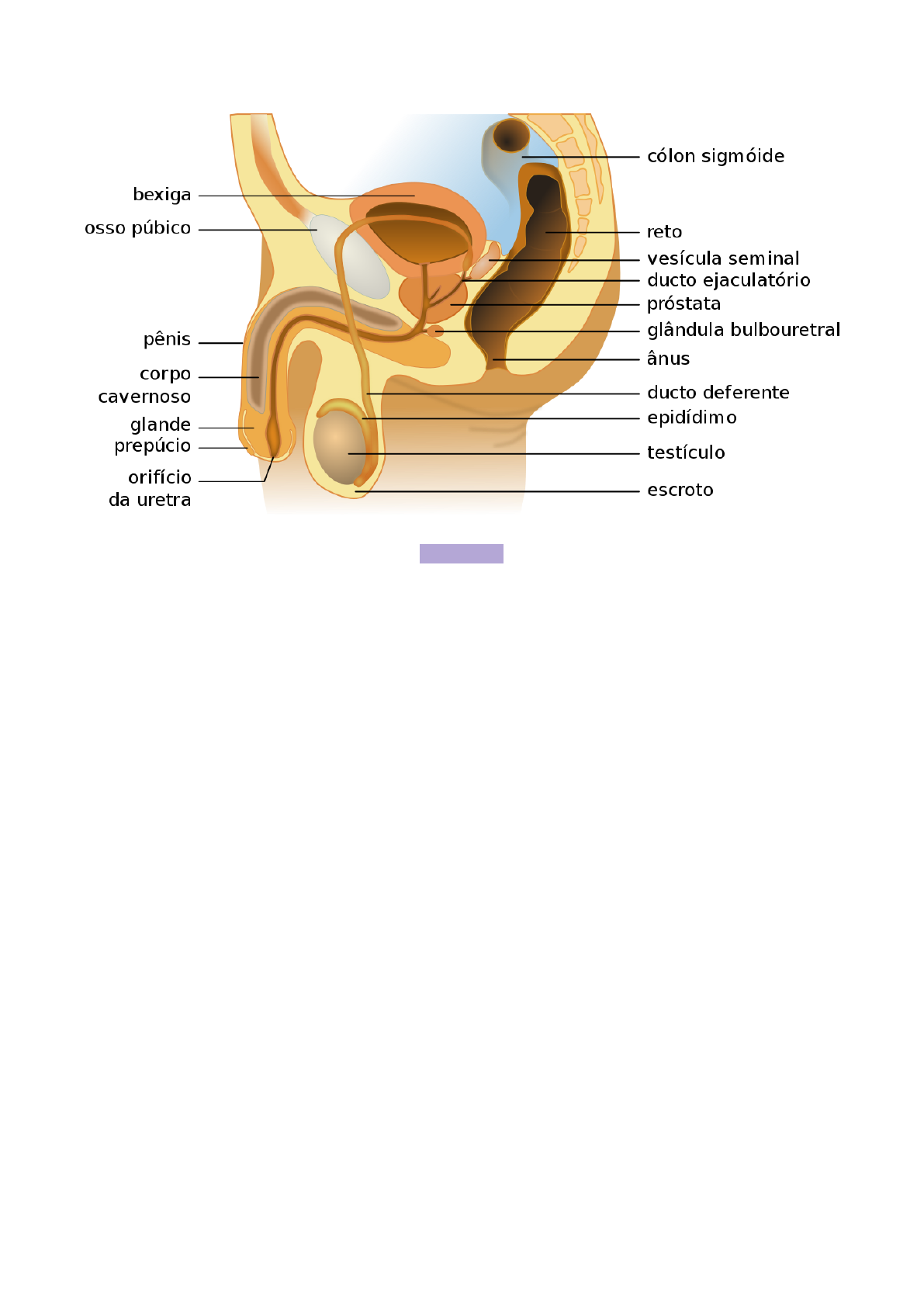 órgãos sexuais primários: testículos, produção de espermatozóides e hormônios órgãos sexuais secundários: estruturas essenciais para o transporte do espermatozóide ESCROTO ● estrutura de sustentação dos testículos ● externamente se parece com uma bolsa de pele ● rafe do períneo: crista mediana que separa o escroto em porções laterais externamente ● septo do escroto: internamente divide o escroto em dois sacos, cada um com um testículo ● a localização do escroto e a contração das fibras musculares regulam a temperatura dos testículos - cerca de 2 a 3°C abaixo da temperatura corporal ● músculo dartos: enruga o escroto para reduzir a perda de calor ● músculo cremaster (continuação do músculo oblíquo interno do abdome da parede abdominal): aproxima o testículo do corpo para absorver o calor corporal inervação ● nervo ilioinguinal ● ramo genital do nervo genitofemoral ● dois ramos escrotais posteriores do nervo perineal ● ramo perineal do nervo cutâneo posterior da coxa irrigação arterial ● pudenda externa, ramo da artéria femoral ● cremastérica, ramo da artéria epigástrica inferior ● escrotal, ramo da perineal (ramo da pudenda interna - ramo da artéria ilíaca interna - ramo da ilíaca comum - ramo da aorta) drenagem venosa ● ramos pudendos externos da artéria femoral ● ramos escrotais da artéria pudenda interna ● ramos cremastérico da artéria epigástrica inferior TESTÍCULOS ● produção de espermatozóides e testosterona ● gônadas masculinas ● glândulas ovais pares esbranquiçadas ● situadas no escroto ● aproximadamente 4 cm de comprimento, 3 cm de espessura e 2,5 cm de diâmetro ● cada testículo pesa entre 10 e 14 g ● o testículo esquerdo é mais baixo que o direito ● contém túbulos seminíferos: unidades funcionais dos testículos que produzem os espermatozóides firmemente enrolados irrigação ● artéria testicular ● artéria diferencial ● artéria cremastérica drenagem ● veia testicular direita (drena para a veia cava inferior) ● veia testicular esquerda (drena para a veia renal esquerda) ● plexo pampiniforme EPIDÍDIMO ● órgão em forma de vírgula ● cerca de 4cm de comprimento ● situado ao longo da margem posterior de cada testículo ● cauda tubular altamente encaracolada: contém espermatozóides em suas fases finais de maturação ● cabeça: porção superior dilatada; onde os ductos deferentes do testículo se unem aos ductos do epidídimo ● corpo: seção média cônica ● seio: fenda estreita dentro da túnica vaginal: bolsa de membrana serosa que cobre os testículos entre o corpo do epidídimo e a face lateral do testículo DUCTO DEFERENTE ● tubo fibromuscular ● aproximadamente 45 cm de comprimento e 2,5mm de espessura ● ascende ao longo da margem posterior do epidídimo através do funículo espermático e, em seguida, entra na cavidade pélvica ● contorna o ureter e passa lateralmente e desce pela face posterior da bexiga urinária ● a ampola do ducto deferente é a porção terminal que continua como ducto ejaculatório irrigação ● artéria diferencial, ramo da artéria vesical superior FUNÍCULO ESPERMÁTICO ● estrutura de suporte do sistema genital masculino ● ascende a partir do escroto ● se estende do testículo ao canal inguinal ● consiste em ducto deferente, artéria testicular, plexo venoso, nervos, músculo cremaster e vasos linfáticos ● a porção do funículo espermático que passa anterior ao osso púbis pode ser palpada facilmente DUCTOS EJACULATÓRIOS ● cada ducto tem cerca de 2 cm de comprimento ● união do ducto da glândula seminal com a ampola do ducto deferente ● perfura a cápsula da próstata em sua face posterior e continua através do interior dessa glândula ● ambos os ductos ejaculatórios recebem as secreções das glândulas seminais para então ejetar os espermatozóides com seus aditivos na uretra prostática onde se misturam com as secreções da próstata irrigação ● artérias do ducto deferente, ramos das artérias vesicais superiores GLÂNDULAS SEMINAIS ● par de glândulas genitais acessórias ● estruturas contorcidas ● se situam posteriormente a base da bexiga urinária e anterior ao reto ● aproximadamente 5cm de comprimento ● secretam uma substância viscosa, ligeiramente alcalina, amarelada que contribui para a mobilidade e viabilidade dos espermatozóides ● a secreção das glândulas contém uma variedade de nutrientes, inclusive frutose que proporciona uma fonte de energia aos espermatozóides; ácido cítrico, proteínas de coagulação e prostaglandinas irrigação ● ramos das artérias retais médias PRÓSTATA vista superior - vista posterior - vista frontal - vista lateral D ● glândula única ● glândula composta por ser formada de tecido muscular e glandular ● tamanho e forma de uma castanha ● cerca de 4 cm de largura e 3 cm de espessura ● encontra-se inferiormente à bexiga urinária ● circunda a parte prostática da uretra ● possui três zonas: lateral, transição e periférica ● secreta um líquido leitoso levemente acidificado que contém diversas substâncias importantes ↪ ácido cítrico: usado na produção de ATP pelo espermatozóide via ciclo de krebs ↪ enzimas proteolíticas: decompõe as proteínas de coagulação do líquido seminal ↪ plasmina seminal: antibiótico que destrói as bactérias lóbulos ● base (próx do intradorso da bexiga urinária, aponta para cima) + vértice (aponta para baixo, apoiado na fáscia superior do diafragma urogenital) + lóbulo anterior + traseiro + 2 superfícies laterais ● lóbulo anterior unicamente fibromuscular sem glândulas ● lóbulo mediano cônico entre a uretra e os dois canais ejaculatórios laterais ● lóbulos laterais separados pela peça prostática da uretra se juntando atrás dela ● lóbulo traseiro pode ser sentido através da parede retal no exame retal digita