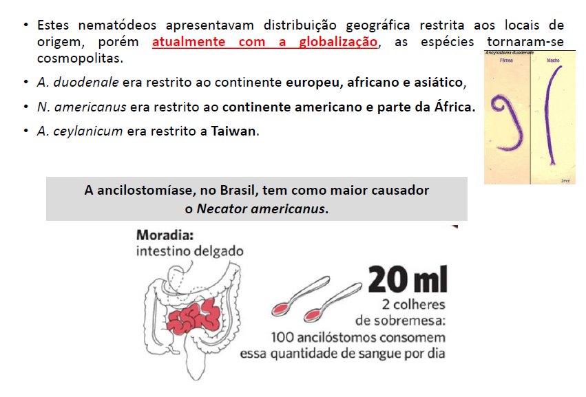 E V,V,F,V. Pergunta 3 0,17 Pontos A ancilostomose humana é uma doença intestinal causada, no Brasil, por nematoides de duas espécies principais: An...