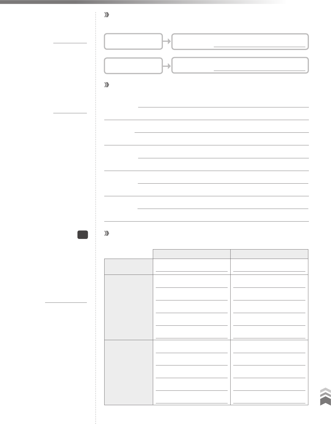 81 C a d e rn o d o E s tu d a n te • B IO LO G IA 1 Encontrei essas informações na(s) página(s) . Encontrei essas informações na(s) página(s) . Resuma as subfases da prófase I indicando a principal característica de cada uma delas. Leptóteno: Zigóteno: Paquíteno: Diplóteno: Diacinese: Compare os processos de meiose e mitose preenchendo a tabela abaixo. Meiose Mitose Número de divisões Células resultantes Importância biológica Onde e quando ocorre a meiose Encontrei essas informações na(s) página(s) . 2 Indique o que ocorre durante cada divisão nuclear preenchendo o diagrama abaixo. Meiose I Meiose II Separação de Separação de visualização dos cromômeros emparelhamento cromossômico formação dos bivalentes e permuta entre cromátides homólogas visualização dos quiasmas terminalização dos quiasmas 4 células-filhas, cada uma com metade do número de cromossomos originalmente presentes na célula-mãe. 2 células-filhas com mesmo número e mesmos tipos de cromossomos da célula-mãe. Formação dos gametas (meiose gamética); após a formação do zigoto (meiose zigótica); origem de esporos haploides (meiose espórica). Crescimento e desenvolvimento de organismos multicelulares; reprodução dos organismos unicelulares. 2 1 226 e 233; 238 e 244 239 e 240 cromossomos homólogos cromátides 238 FeCHANDo o CAPÍtULoPARTE I Sintetize Capítulo 8 82 C a d e rn o d o E s tu d a n te • B IO LO G IA 1 Redija um texto pequeno sobre o tema: “A importância do ciclo celular”. Escolha alguns aspectos do ciclo celular e relacione-os a diferentes processos biológicos. Marque um X na coluna que melhor reflete o seu aprendizado de cada tema. Depois, compare esta tabela com a que você preencheu no “Antes de estudar o capítulo”. Temas principais do capítulo Já sabia tudo Aprendi sobre o tema Não entendi... Socorro!!! A importância da divisão celular em organismos unicelulares e multicelulares As principais subdivisões do ciclo celular A sequência e características das principais fases da mitose e da meiose Os mecanismos de separação das cromátides- -irmãs A citocinese em células de animais e em células de plantas Os pontos de checagem do ciclo celular A ocorrência de meiose em diferentes organismos Se você não entendeu algum desses temas, reveja as atividades do Caderno do Estudante e revise seu livro-texto. Quando for necessário, peça ajuda a seu professor ou a um colega. Reveja a segunda atividade do “Antes de estudar o capítulo” e reavalie as suas escolhas. Se julgar necessário, escreva novas justificativas e compare-as com suas considerações iniciais. Resposta pessoal. Resposta pessoal. Espera-se que o aluno mencione a interfase, a mitose e a meiose, relacionando-as, principalmente, ao crescimento, ao desenvolvimento e à reprodução dos organismos. Capítulo PARTE I 83 C a d e rn o d o E s tu d a n te • B IO LO G IA 1 PARTE II Seções: 9.1 Energia para a vida 9.2 ATP, a “moeda energética” do mundo vivo 9.3 Respiração celular 9.4 Fermentação Metabolismo energético (I): respiração celular e fermentação Unidade C 9 antes de estudar o capítulo Veja nesta tabela os temas principais do capítulo e marque um X na coluna que melhor traduz o que você pensa sobre a aprendizagem de cada tema. Temas principais do capítulo Domino o tema Vai ser fácil Vai ser difícil Obtenção de energia para a vida Metabolismo e suas reações fundamentais Reações endergônicas e exergônicas Energia de ativação e enzimas Estrutura do trifosfato de adenosina (ATP) As etapas da respiração celular A formação do ATP Tipos de fermentação e suas características Veja abaixo alguns termos e conceitos que você encontrará no capítulo. Marque um X naqueles que você julga que estão relacionados à imagem. metabolismo anabolismo catabolismo trifosfato de adenosina respiração celular ciclo de Krebs fermentação Justifique suas escolhas. X Resposta pessoal. X X X X X X Caderno do estudante Parte II Unidade C Capítulo 9