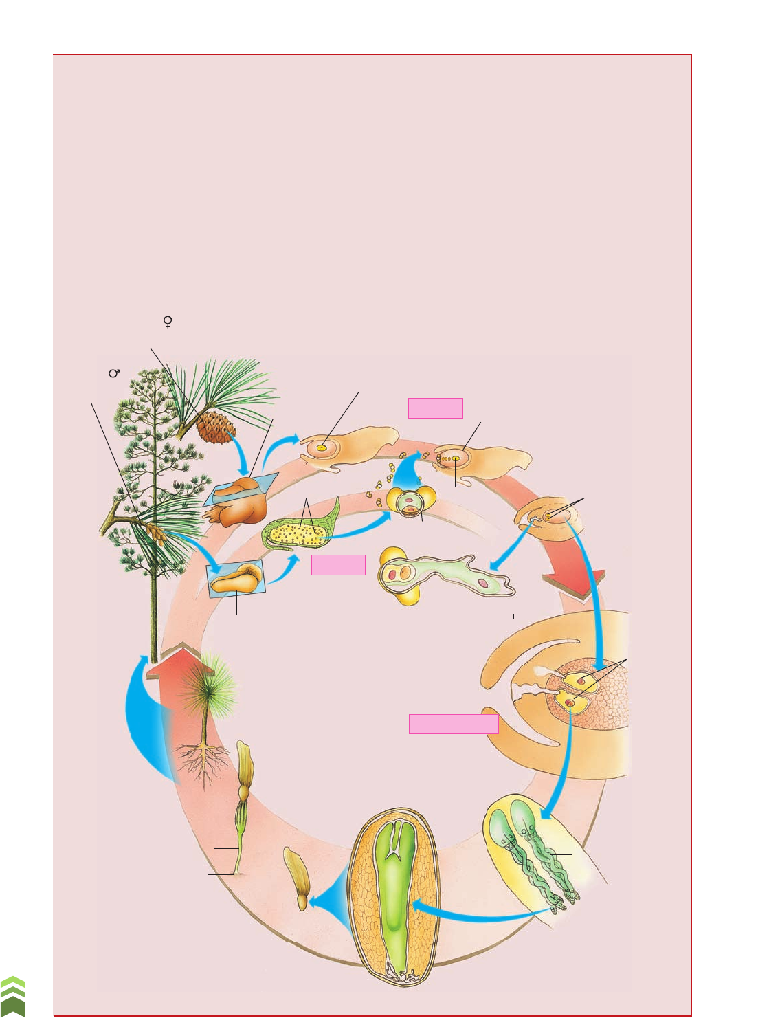 R ep ro d uç ão p ro ib id a. A rt .1 84 d o C ód ig o P en al e L ei 9 .6 10 d e 19 d e fe ve re iro d e 19 98 . 180 U n id a d e C • D iv e rs id a d e , a n at o m ia e f is io lo g ia d a s p la n ta s ESPORÓFITO ADULTO Estróbilo (microstróbilo) Megasporângio Estróbilo (megastróbilo) Óvulo Megásporo (n) MEGAGAMETÓFITO Arquegônios Oosferas (n) Tubo polínico Microgametófito Microsporângio Semente alada Microsporócitos Grão de pólen ESPORÓFITO JOVEM Cotilédones Caule Raiz Germinação SEMENTE Embriões Suspensor Megasporócito MEIOSE MEIOSE FERTILIZAÇÃO Figura 6.25 Representação esquemática do ciclo de vida de Pinus sp. (Imagens sem escala, coresfantasia.) Durante o desenvolvimento embrionário forma- se um cordão de células, o suspensor, que empurra o embrião para o fundo do arquegônio. O embrião em desenvolvimento é nutrido pelas células do gametófito feminino que estão em seu redor. O integumento do óvulo de Pinus sp. consiste em três camadas celulares, uma das quais endurece e origina a casca da semente. Quando a semente está madura e o embrião em seu interior já apre- senta primórdios de raiz, de caule e das primeiras oito folhas, denominadas cotilédones (do grego kotyledon, cavidade em forma de taça), ela des- prende-se do estróbilo feminino e cai no solo, onde germinará. A liberação das sementes de Pinus sp. dos megastróbilos ocorre no outono do segundo ano após a polinização. As sementes da maioria das espécies apresentam expansões em forma de asa, que permitem a flutuação no ar e a dispersão por grandes distâncias. A germinação (do latim germinare, brotar) nada mais é do que a retomada do desenvolvimento do em- brião, que cresce e perfura a casca da semente, dando origem a um novo esporófito. Durante a germinação, o embrião nutre-se do gametófito feminino. Quando este esgota suas reservas, o jovem esporófito já apre- senta raízes e folhas, sendo capaz de retirar nutrientes minerais do solo e de produzir substâncias orgânicas por meio da fotossíntese. (Fig. 6.25) R ep ro d uç ão p ro ib id a. A rt .1 84 d o C ód ig o P en al e L ei 9 .6 10 d e 19 d e fe ve re iro d e 19 98 . 181 C a p ít u lo 6 • D iv e rs id a d e e r e p ro d u çã o d a s p la n ta s Seção 6.5 Plantas vasculares com flores e frutos: angiospermas 1 Características gerais das angiospermas As angiospermas são as plantas dominantes no planeta e constituem a maior parte da vegetação. Há desde espécies de grande porte, como certos eucaliptos da Austrália, cujos troncos atingem mais de 110 metros de altura e 20 metros de circunferência, até espécies com menos de 1 milímetro de comprimento. Quanto à forma, as angiospermas podem ser árvores, arbustos, trepadeiras, capins etc. Elas vivem nos mais diversos ambientes: no solo, na água ou sobre outras plantas, em certos casos como parasitas e em outros apenas como “inquilinas”. As angiospermas diferem das gimnospermas por apresentar flores e frutos, além de certas características particulares no ciclo de vida. Os mais antigos fósseis identificados claramente como angiospermas datam do início do período Cretáceo e têm cerca de 130 milhões de anos de idade. Entre 100 milhões e 65 milhões de anos atrás, as angiospermas diversificaramse rapidamente e tornaramse o grupo de plantas dominante em vários ambientes pelo mundo, exceto em regiões de clima muito frio. O filo que engloba as angiospermas é atualmente denominado Magno- liophyta, embora o termo Anthophyta (do grego antho, flor) continue a ser utilizado. Os pesquisadores acreditam que, apesar da grande variedade, as angiospermas atuais são todas descendentes de um mesmo ancestral e compõem, portanto, um grupo monofilético (relembre no capítulo 1). Há mais de 250 mil espécies descritas no filo Magnoliophyta, das quais cerca de 55 mil ocorrem no Brasil. A classificação das angiospermas passa atualmente por grandes modificações, em virtude de novas informações obtidas pelos sistematas. Não há ainda consenso a respeito da quantidade de classes do filo Magnoliophyta; no entanto essas plantas podem ser divididas, de acordo com os princípios da sistemática moderna, em três categorias informais: monocotiledôneas, eudicotiledôneas e dicotiledône- as basais. As eudicotiledôneas e as monocotiledôneas reúnem 97% das espécies do filo; os 3% restantes são dicotiledôneas basais. Estas últimas incluem desde representantes arbóreos, como a frutadoconde e as mag- nólias, até plantas aquáticas, como a vitóriarégia. (Figs. 6.26 e 6.27) Objetivos❱❱❱❱ Identificar os principais CCCCCCC grupos de angiospermas e descrever seu ciclo de vida. Distinguir a fecundação CCCCCCC simples, que ocorre em plantas gimnospermas, da fecundação dupla, que ocorre em plantas angiospermas. Reconhecer a CCCCCCC importância das sementes na adaptação das plantas ao ambiente de terra firme. Identificar as partes CCCCCCC básicas de uma flor: cálice, corola, androceu e gineceu. Conceituar fruto, CCCCCCC reconhecendo sua importância na proteção e na disseminação das sementes de angiospermas. Termos e conceitos❱❱❱❱ angiosperma• flor• carpelo• estame• corola• cálice• verticilo floral• saco embrionário• polinização• endosperma• dupla fecundação• cotilédone• fruto• pseudofruto• A B C Figura 6.26 Representantes das eudicotiledôneas: (A) castanheira; (B) cactos; (C) uva. R ep ro d uç ão p ro ib id a. A rt .1 84 d o C ód ig o P en al e L ei 9 .6 10 d e 19 d e fe ve re iro d e 19 98 . 182 U n id a d e C • D iv e rs id a d e , a n at o m ia e f is io lo g ia d a s p la n ta s A B C D F E G Conteúdo digital Moderna PLUS http://www.modernaplus.com.br Texto: Importância para a humanidade da reprodução assexuada das plantas Figura 6.27 Representantes das monocotiledôneas: (A) coqueiros; (B) bananeira; (C) grama; (D) panículas do arroz; (E) canadeaçúcar. Represen