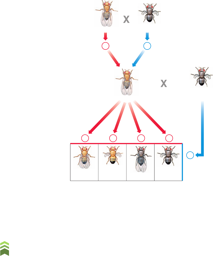 R ep ro d uç ão p ro ib id a. A rt .1 84 d o C ód ig o P en al e L ei 9 .6 10 d e 19 d e fe ve re iro d e 19 98 . 124 U n id a d e A • G e n é ti ca Quando fêmeas selvagens de corpo cinzento-amarelado e asas normais (PPVV) são cruzadas com machos de corpo preto e asas vestigiais (ppvv), a geração F1 é inteiramente constituída por machos e fêmeas com fenótipo selvagem. As fêmeas da geração F1, no cruzamento-teste com machos de corpo preto e asas vestigiais (ppvv), produzem quatro tipos de descendente, nas seguintes porcentagens: • 41,5% de corpo cinzento-amarelado e asas alongadas; • 41,5% de corpo preto e asas vestigiais; • 8,5% de corpo cinzento-amarelado e asas vestigiais; • 8,5% de corpo preto e asas alongadas. Esses resultados indicam que as fêmeas duplo-heterozigóticas produzem quatro tipos de ga- meta, embora não em mesma proporção: 41,5% PV, 41,5% pv, 8,5% Pv e 8,5% pV. Note que o fenótipo dos descendentes é determinado pela constituição genética do óvulo, uma vez que o macho, sendo duplo homozigótico recessivo, fornece apenas alelos recessivos para os descendentes. (Fig. 5.5) Figura 5.5 Representação esquemática de um cruzamento em drosófila que mostra a segregação não independente dos genes para cor do corpo e forma das asas. O cruzamento-teste de fêmeas duplo-heterozigóticas (com machos duplo-recessivos) mostra que elas formam quatro tipos de gametas, mas em proporções diferentes das esperadas pela lei da segregação independente. (Imagem sem escala, cores-fantasia.) O fato de os quatro tipos de gameta da fêmea não serem produzidos em mesma proporção (25% de cada tipo), como seria esperado pela segunda lei de Mendel, mostra que os genes não se segregaram independentemente. Gametas portadores dos alelos P/V e dos alelos p/v ocorrem em porcentagens bem maiores do que gametas portadores dos alelos P/v e p/V. Morgan explicou os resultados obtidos admitindo que os genes para cor do corpo e forma da asa localizam-se no mesmo par de cromossomos homólogos da drosófila, e, sendo assim, eles não se segregam independentemente (relembre a explicação para a segregação independente no capítulo 4). Corpo cinzento- -amarelado/asa alongada GAMETAS Corpo preto/ asa vestigial Corpo cinzento- -amarelado/asa alongada PPVV PV pv ppvv ppvv ppvvppVvPpvvPpVv 41,5% 8,5% 8,5% 41,5% PpVv PV Pv pV pv pv CRUZAMENTO- -TESTE GAMETAS GAMETA R ep ro d uç ão p ro ib id a. A rt .1 84 d o C ód ig o P en al e L ei 9 .6 10 d e 19 d e fe ve re iro d e 19 98 . 125 C a p ít u lo 5 • O m a p e a m e n to d o s g e n e s n o s cr o m o ss o m o s Cromossomo 1 M (normal) R (Vermelho) U (Cor verde na base) T (Não tangerina) (Caule liso) Wf (Flor amarela) m (manchada) r (Amarelo) u (Cor uniforme) t (Tangerina) (Caule piloso) wf (Flor branca) D (Alta) d (Baixa) 12 15 23 21 4 17 21 4 6 14 P (Liso) p (Aveludado) O (Normal) Ne (Folha normal) S (Inflorescência simples) S (Inflorescência composta) Bk (Sem pescoço) Lc (Poucos lóculos ovarianos) lc (Muitos lóculos ovarianos) o (Oblongo) ne (Folha necrosada) bk (Com pescoço) Cromossomo 2 Cromossomo 7 Em 1915, Morgan e seus colaboradores já haviam descoberto 85 mutações em drosófila. Analisando os cruzamentos, eles verificaram que alguns desses mutantes segregavam-se inde- pendentemente, enquanto outros apresentavam ligação gênica. Com base nesses dados, Morgan e sua equipe separaram as 85 mutações em quatro grupos, denominados grupos de ligação. Os genes de um mesmo grupo apresentavam ligação entre si, mas segregavam-se independen- temente de genes dos outros três grupos. Estudos citológicos de Drosophila melanogaster, por sua vez, mostraram que essa espécie tem 4 pares de cromossomos (2n 5 8). Morgan percebeu que o fato de haver 4 pares de cromos- somos e 4 grupos de ligação não era mera coincidência, mas um forte indício de que os genes localizam-se nos cromossomos, uma vez que genes que fazem parte de um mesmo cromossomo tendem a ser herdados juntos. Em milho, análises genéticas semelhantes permitiram separar os genes conhecidos em dez grupos de ligação. Não por acaso, o número de pares de cromossomos do milho é 10 (2n 5 20). Na espécie humana há 24 grupos de genes em ligação, correspondentes aos 22 pares de autosso- mos e aos cromossomos sexuais X. O tomate tem 12 grupos de ligação e 12 pares de cromossomos homólogos. (Fig. 5.6) Figura 5.6 Representação esquemática de três dos 12 pares de cromossomos do tomate, mostrando a localização de alguns genes, cada um deles com dois alelos. Os números entre os genes indicam a distância relativa entre eles no cromossomo. (Imagem sem escala, cores-fantasia.) (Baseado em Griffiths, A. J. F. e cols., 1998.) R ep ro d uç ão p ro ib id a. A rt .1 84 d o C ód ig o P en al e L ei 9 .6 10 d e 19 d e fe ve re iro d e 19 98 . 126 U n id a d e A • G e n é ti ca 2 Explicando a recombinação pela permutação Uma questão que intrigava os geneticistas pioneiros era que, se os genes estavam fisicamente unidos na estrutura do cromossomo, por que sua ligação não era completa? Por que apareciam fenótipos recombinantes na descendência? Para entender essa questão, vamos relembrar o cruzamento descrito anteriormente e mos- trado na figura 5.5 de fêmeas de drosófila duplo-heterozigóticas quanto aos alelos para cor do corpo e forma da asa. Pela análise da geração parental, concluímos que um dos cromossomos da fêmea apresentava os alelos P/V, recebidos da mãe, enquanto seu homólogo apresentava os alelos p/v, recebidos do pai. Como os cromossomos homólogos separam-se na meiose, era de esperar que essas fêmeas formassem apenas dois tipos de gameta: 50% com o cromossomo materno, portador dos ale- los dominantes (P/V), e 50% com o cromossomo paterno, portador dos alelos recessivos (p/v). Entretanto, os resultados mostram que, além desses dois tipos de gameta, as fêmeas duplo- -heterozigóticas formaram também gametas reco