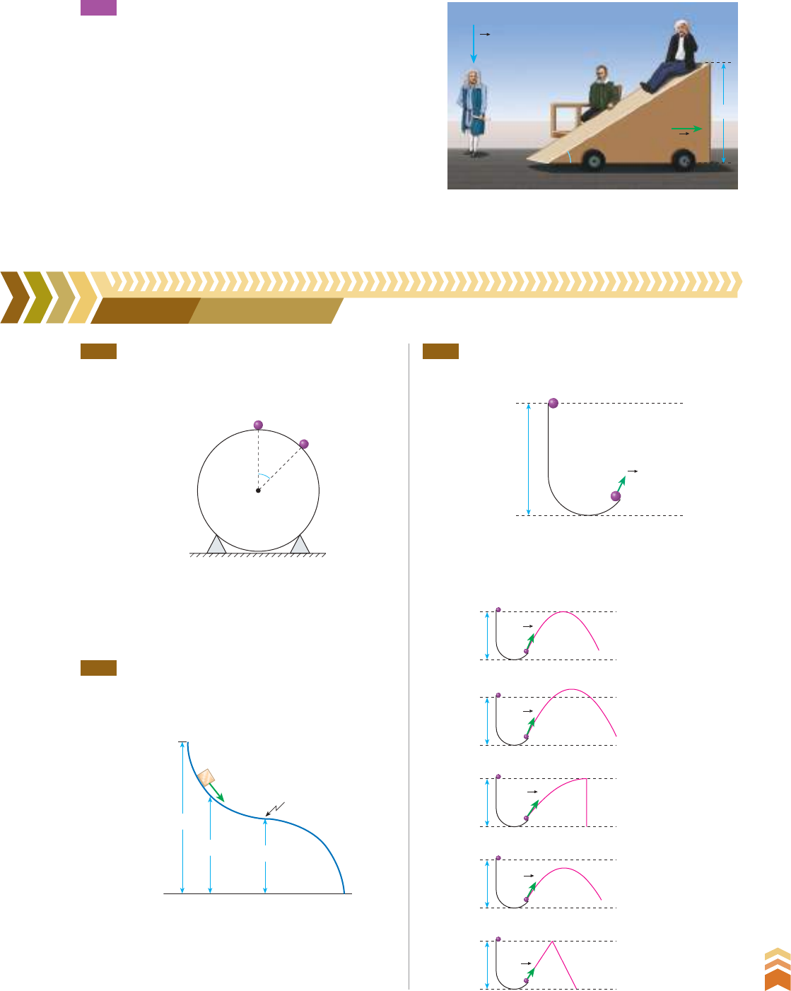 321 C a p ít u lo 1 5 • En e rg ia , a s su a s fo rm a s e a s u a c o n se rv a çã o 321 R ep ro d uç ão p ro ib id a. A rt .1 84 d o C ód ig o P en al e L ei 9 .6 10 d e 19 d e fe ve re iro d e 19 98 . P. 379 (Fuvest-SP) Um carro alegórico do bloco carnavalesco “Os Filhos do Nicolau” possui um plano inclinado e se move com velocidade horizontal u constante em relação à pista. Albert, o filho mais moço, escorrega desde o alto da rampa sem atrito. É observado por Galileu, o mais velho, sentado no carro, e por Isaac, parado na pista. Quando Albert chega ao fim da rampa, Isaac observa que a componente horizontal da velocidade de Albert é nula. Suponha que o movimento de Albert não altera a velocidade do carro, muito mais pe- sado do que ele. São dados: h 5,0 m; J 30w; g 10 m/s2. a) Quais são os valores das componentes horizontal (vH) e vertical (vV) da velocidade de Albert no fim da rampa, observados por Galileu? b) Quanto vale u? c) Qual é o valor da componente vertical (veV) da velocidade de Albert no fim da rampa, observado por Isaac? T. 311 (Uece) Uma partícula se move sobre a superfície lisa de um cilindro, partindo, do repouso, de um ponto arbitrariamente próximo de 0 (zero) e situado à direita de O. T. 312 (ITA-SP) Um pequeno bloco, solto com velocidade nula a uma altura h, move-se sob o efeito da gra- vidade e sem atrito sobre um trilho em forma de dois quartos de círculo de raio R que se tangenciam, como mostra a figura. A mínima altura inicial h que acarreta a saída do bloco, do trilho, após o ponto A é: a) 4R ___ 3 c) 3R ___ 2 e) 2R b) 5R ___ 4 d) 5R ___ 2 C O S α Rh 2R A A partícula desliza ao longo da curva OS e, quando chega ao ponto S, se separa do cilindro. O valor de cos a é: a) 2 __ 3 b) 2 __ 5 c) 2 __ 7 d) 2 __ 9 T. 313 (Unirio-RJ) Uma esfera desliza sobre um trilho perfeitamente liso, cujo perfil é mostrado na figura abaixo. Considere que a esfera inicia o seu movimento, a partir do repouso, no ponto A. Que trajetória poderia representar o movimento da esfera após abandonar o trilho no ponto B? A h B v A h B v a) A h B v b) A h B v c) A h B v d) A h B v e) testes propostos θ Galileu Albert Isaac u g h V1_P2_UN_E_CAP_15_B.indd 321 27.07.09 09:32:59 322322 R ep ro d uç ão p ro ib id a. A rt .1 84 d o C ód ig o P en al e L ei 9 .6 10 d e 19 d e fe ve re iro d e 19 98 . U n id a d e E • O s p ri n cí p io s d a c o n se rv a çã o T. 314 (UFSC) Na figura abaixo, a esfera tem massa igual a 2,0 kg e encontra-se presa na extremidade de uma mola de massa desprezível e constante elástica de 500 N/m. A esfera encontra-se, inicialmente, em repouso, mantida na posição A, onde a mola não está deformada. A posição A situa-se a 30 cm de altura em relação à posição B. Soltando-se a esfera, ela desce sob a ação da gra- vidade. Ao passar pelo ponto B, a mola se encontra na vertical e distendida de 10 cm. Desprezam-se as dimensões da esfera e os efeitos da resistência do ar (g 10 m/s2). Considerando-se a situação física descrita, assinale as proposições corretas. 01) A velocidade da esfera no ponto B é igual a dlll 3,5 m/s 02) Toda a energia potencial gravitacional da es- fera, na posição A, é transformada em energia cinética, na posição B. 04) A velocidade da esfera no ponto mais baixo da trajetória, ponto B, é igual a dlll 6,0 m/s. 08) A força resultante sobre a esfera na posição B é igual a 30 N. 16) A energia mecânica da esfera, na posição B, é igual à sua energia potencial gravitacional na posição A. 32) Parte da energia potencial gravitacional da esfera, na posição A, é convertida em energia potencial elástica, na posição B. 64) A energia cinética da esfera, na posição B, é igual à sua energia potencial gravitacional, na posição A. Dê como resposta a soma dos números que prece- dem as proposições corretas. T. 315 (ITA-SP) Um anel de peso 30 N está preso a uma mola e desliza sem atrito num fio circular situado num plano vertical, conforme mostrado na figura. T. 316 (AFA-SP) Duas partículas são lançadas nos pontos A e B com a mesma velocidade v0, conforme indica a figura abaixo: Considerando que a mola não se deforma quando o anel se encontra na posição P e que a velocidade do anel seja a mesma nas posições P e Q, a constante elástica da mola deve ser de: a) 3,0 3 103 N/m b) 4,5 3 103 N/m c) 7,5 3 103 N/m d) 1,2 3 104 N/m e) 3,0 3 104 N/m A B 30 cm 10 cm Q 2 cm P Anel v0 v0 A B C D m M g g h h Enquanto a partícula de massa m passa por um trecho em elevação, a outra, de massa M, passa por uma depressão com a mesma forma e “profundi- dade” h. Desprezando-se quaisquer forças dissipativas, pode-se afirmar que a razão tA __ tB entre os tempos gastos pelas partículas para atingirem os pontos C e D é: a) menor que 1, se m M. b) maior que 1, independentemente da razão m ___ M . c) igual a 1, independentemente da razão m ___ M . d) pode ser igual a 1, se m , M. T. 317 (Mackenzie-SP) Um garoto, que se encontra apoiado sobre seu skate, desce por uma rampa, saindo do repouso no ponto B. Deslocando-se sempre sobre o mesmo plano vertical, atinge o ponto C, com velocidade nula. Admitindo o mesmo percentual de perda de energia mecânica, se o garoto saísse do repouso no ponto A, atingiria o ponto C com velocidade: a) 4,0 km/h b) 8,0 km/h c) 14,4 km/h d) 16,0 km/h e) 32,0 km/h (Use g 10 m/s2.) A B C 5,00 m 4,00 m 3,20 m V1_P2_UN_E_CAP_15_B.indd 322 27.07.09 09:33:00 Uma partida de bilhar é um excelente laboratório de colisões. Durante o jogo, as bolas colidem, tro- cam energia e alteram o sentido dos seus movimen- tos, obedecendo uma lei muito importante da Física: a quantidade de movimento sempre se conserva. Capítulo O impulso e a quantidade de movimento são duas grandezas vetoriais relacionadas pelo teorema do impulso. A conservação da quantidade de movimento é um dos princípios fundamentais da Física. Sua aplicação nos aceleradores de partículas permitiu 
