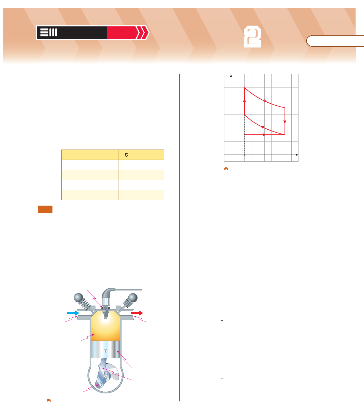 Física os Fundamentos da Física Moderna plus 2 ramalho nicolau toledo 4 w w w .m o d e rn a p lu s .c o m .b r Parte I Unidade D Capítulo 9 as leis da termodinâmica Pede-se: a) represente o ciclo completo deste motor em um diagrama p 3 V. b) complete a tabela seguinte, atribuindo para cada um dos quatro processos o valor zero ou os sinais positivo (1) ou negativo (2) às grandezas T, Q e DU, que são, respectiva- mente, o trabalho realizado pelo ou sobre o motor, a quantidade de calor recebida ou fornecida pelo motor e a variação de energia interna do motor. Processo T Q DU 2 # 3 1 3 # 4 1 4 # 5 2 5 # 2 0 L.29 (UEPB) Entre as máquinas térmicas aper- feiçoadas no decorrer do século XX, aquela com a qual temos maior contato é o motor a explosão (ou de combustão interna), a ál- cool ou a gasolina. Considere o princípio de funcionamento do motor a explosão de um automóvel de “quatro tempos” ou quatro eta- pas e o diagrama da pressão pelo volume num ciclo completo desenvolvido por esse motor, conforme as figuras seguintes. Pistão Biela Virabrequim Aqui o combustível queima Entrada do ar e do combustível Válvula de admissão Vela de ignição Válvula de escape Saída de gases resultantes da queima de combustível Cilindro do motor de um automóvel. V p V1 O V2 C B D A Diagrama da pressão pelo volume do motor de um automóvel. Tendo como base as informações dessas figuras, analise, nas proposições a seguir, o processo de funcionamento do motor citado, em um ciclo completo, com as suas respectivas transformações gasosas (mistura de ar e com- bustível) em cada uma das etapas desse ciclo. Assinale a alternativa correta. a) Na 1a etapa (de O até A e de A até B): trans- formações isobárica e adiabática — ocorre a admissão da mistura de ar e combustível e, em seguida, de uma compressão dessa mistura com a subida do pistão. b) Na 3a etapa (de B até C e C até D): trans- formações isovolumétrica e adiabática — ocorre a explosão da mistura, causada por uma faísca elétrica originada pela vela de ignição, seguida de uma expansão; o motor realiza trabalho, que é responsável pelo movimento. c) Na 2a etapa (de B até C): apenas transforma- ção isovolumétrica — ocorre a compressão dessa mistura com a subida do pistão. d) Na 3a etapa (de D até A): transformação iso- volumétrica — ocorre a explosão da mistura, causada por uma faísca elétrica originada pela vela de ignição; o motor realiza traba- lho, que é responsável pelo movimento. e) Na 4a etapa (de A até O): apenas transforma- ção isobárica — ocorre a expulsão dos gases resultantes, com a abertura da válvula de saída e a subida do pistão. Física os Fundamentos da Física Moderna plus 2 ramalho nicolau toledo w w w .m o d e rn a p lu s .c o m .b r 1 Parte I Unidade D Capítulo 9 as leis da termodinâmica o desenvolvimento da termodinâmica Podemos considerar que a história da Termodinâmica começou há pouco mais de dois séculos, quando tiveram início as primeiras tentativas para criar “máquinas de calor”, isto é, dispositivos que pudessem produzir energia mecâ- nica a partir de corpos aquecidos. Essas tentativas desembocaram na construção de máquinas a vapor, que utilizavam a capacidade do vapor de água em produ- zir movimento. No entanto, as primeiras máquinas desse tipo tinham pouca eficiência. Coube ao engenheiro escocês JAMES WATT (1736-1819), trabalhando numa máquina a vapor rudimentar, aperfeiçoá-la, para que tivesse melhor rendimento, patenteando seu modelo em 1769. A partir de então, as máquinas a vapor passaram a ser intensamente utilizadas, no bombeamento de água de minas, no acionamento de moinhos de farinha, em fiações e tecelagens e na fabricação de papel, tornando-se um fator fundamental na Revolução Industrial que transformou o mundo. Entretanto, apesar de seu uso ter-se difundido, ainda eram ignorados os princípios teóricos em que se baseavam. É interessante observar que nessa época ainda predominava o modelo em que se considerava o calor como um fluido. Somente em meados do século XIX, com os trabalhos de Mayer e Joule, a relação de equivalência entre calor e energia mecânica foi definitivamente estabelecida. Daí nasceu a primeira lei da Termodinâmica, que nada mais é que o princípio da conservação da energia aplicado aos processos naturais que envolvem trocas de calor e rea- lização de trabalho mecânico. Estudando as máquinas a vapor, o físico francês NICOLAS LEONARD SADI CARNOT (1796-1832) conseguiu estabelecer o princípio de funcionamento das máquinas térmicas, antes de ser estabelecida a segunda lei da Termodinâmica. Segundo suas conclusões, publicadas em 1824 no seu livro Reflexões sobre a potência motriz do fogo, uma diferença de temperaturas era fundamental para que uma máquina térmica funcionasse, tanto quanto um desnível de altura para que funcionasse uma roda-d’água. Parece claro que Carnot estava consciente dos fundamentos da primeira lei da Termodinâmica, embora isso não tenha sido reconhecido pela comunidade científica da época. Desenvolveu ainda a noção de processos reversíveis, abrindo caminho para a segunda lei da Termodinâmica. Em 1834, BENOÎT PAUL ÉMILE CLAPEYRON (1799-1864) publica seu trabalho A potência motriz do calor, abandonando a ideia do “calórico” e dando uma formulação mais acessível para a segunda lei da Termodinâmica. Introduziu o gráfico pressão 3 volume, apresentando o ciclo de Carnot de forma objetiva. Esse gráfico recebeu o nome de “gráfico de Clapeyron”. Apesar de o enunciado de funcionamento da máquina térmica ser con- siderado atualmente uma maneira de enunciar a segunda lei da Termodi- nâmica, considera-se que foi o físico alemão RUDOLF CLAUSIUS (1822-1888) quem pela primeira vez, em 1850, a enunciou. A partir daí, outros enunciados foram propostos por vários outros cientistas, entre os quais LORDE KELVIN (1824-19