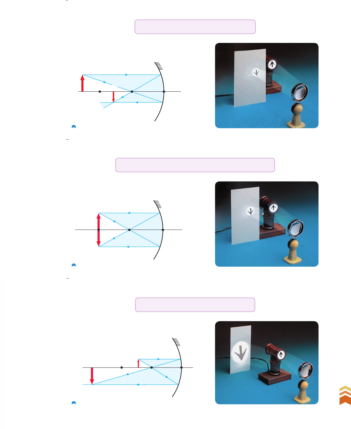269 C a p ít u lo 1 2 • Es p e lh o s e sf é ri co s 269 R ep ro d uç ão p ro ib id a. A rt .1 84 d o C ód ig o P en al e L ei 9 .6 10 d e 19 d e fe ve re iro d e 19 98 . A imagem que um espelho esférico côncavo fornece de um objeto real tem características diversas, conforme a posição deste relativamente ao centro de curvatura e ao foco do espe- lho. Assim, podemos ter cinco diferentes posições do objeto e, por conseguinte, cinco tipos diferentes de imagens: 1a) Objeto além do centro de curvatura — A figura 15 nos mostra que a imagem está entre o foco F e o centro de curvatura C e é: REAL, INVERTIDA e MENOR que o objeto. 2a) Objeto sobre o centro de curvatura — A imagem formada (fig. 16) está sobre o centro de curvatura C e é: 3a) Objeto entre o centro de curvatura e o foco — A imagem formada (fig. 17) está além do centro de curvatura C e é: REAL, INVERTIDA e de MESMO TAMANHO que o objeto. REAL, INVERTIDA e MAIOR que o objeto. Figura 16. Objeto sobre o centro de curvatura. A' B' A B VC F Figura 17. Objeto entre o centro de curvatura e o foco. A' B' B A FC V Figura 15. Objeto além do centro de curvatura. C F V A A' B' B V2_P2_UN_E_CAP_12.indd 269 28.08.09 09:02:09 270 U n id a d e E • Ó p ti ca G e o m é tr ic a 270 R ep ro d uç ão p ro ib id a. A rt .1 84 d o C ód ig o P en al e L ei 9 .6 10 d e 19 d e fe ve re iro d e 19 98 . ExErcícIo rEsolvIDo ExErcícIos propostos 4a) Objeto no plano focal — Nesse caso, os raios refletidos são paralelos (fig. 18). Dizemos que a imagem é: 5a) Objeto entre o foco e o vértice — A imagem formada (fig. 19) está atrás do espelho, sendo: De todas as construções feitas podemos concluir: • a imagem real de um objeto real é invertida; • a imagem virtual de um objeto real é direita; • quando o objeto se desloca, a imagem também se desloca, mas em sentido oposto; • o elemento (objeto ou imagem) que estiver mais próximo do espelho será menor. Deve-se destacar que: IMPRÓPRIA (imagem no infinito). VIRTUAL, DIREITA e MAIOR que o objeto. Somente as imagens reais, por serem formadas pelos próprios raios de luz, podem ser projetadas em anteparos. Figura 18. Objeto no plano focal. VFC A B Figura 19. Objeto entre o foco e o vértice. F V A B B' A' No endereço eletrônico http://www.glenbrook.k12.il.us/gbssci/phys/mmedia/index.html#optics (acesso em agosto/2009), você encontra animações e textos (em inglês) sobre a formação de imagens em espelhos esféricos. No endereço eletrônico http://br.geocities.com/saladefisica3/laboratorio/esfericos/esfericos.htm (acesso em agosto/2009), você pode arrastar um objeto (com o mouse) e verificar como mudam as características da imagem conjugada por um espelho esférico. Entre na redeEntre na rede Conteúdo digital Moderna PLUS http://www.modernaplus.com.br Atividade experimental: Imagens em espelhos esféricos V2_P2_UN_E_CAP_12.indd 270 28.08.09 09:02:11 271 C a p ít u lo 1 2 • Es p e lh o s e sf é ri co s 271 R. 79 No esquema, AB é um objeto real e AeBe é sua imagem forne- cida por um espelho esférico de eixo principal XXe. Determine graficamente a posição do espelho, do centro de curvatura e do foco principal. Solução: O vértice V do espelho foi encontrado invertendo-se o objeto e unindo-se o extremo da imagem Ae com o extremo Z do objeto invertido. A reta obtida corta o eixo XXe no ponto V. A justificativa de tal construção advém da propriedade d, do item 2 da seção 12.2 deste capítulo (página 266). Como a ima- gem é direita e menor, concluímos que o espelho é convexo. O foco F foi encontrado traçando-se pelo extremo do objeto um raio paralelo ao eixo principal. O raio refletido, que tem seu prolongamento passando pelo extremo Ae da imagem, determina, no eixo principal, o foco F. O centro de curvatura C é obtido ligando-se os extremos superiores A e Ae do objeto e da imagem. P. 261 A figura representa um objeto AB e sua imagem AeBe, ambos reais, obtida com o auxílio de um espelho esférico, de eixo principal ab. a) Qual é a natureza do espelho? b) Determine graficamente a posição do espelho, seu foco principal e seu centro de curvatura. P. 262 Um objeto linear AB é colocado perpendicularmente ao eixo principal de um espelho esférico côncavo de centro de curvatura C, foco principal F e vértice V. a) Associe as colunas: Posição do objeto 1) entre F e V 2) entre F e C 3) além de C b) Represente esquematicamente o espelho, o objeto e a imagem conjugada, para cada posição do ob jeto descrita no item anterior. Nesses esquemas, mostre os raios utilizados. ExErcícIo rEsolvIDo ExErcícIos propostos P. 265 (PUC-MG) Usando apenas dois raios notáveis, determine graficamente a imagem do objeto AB formada pe lo espelho convexo esférico de centro de curvatura C. P. 263 Um objeto está situado a 30 cm de um espelho esférico côncavo. A correspondente imagem tem a mesma altura do objeto. Qual é a distância do foco F ao vértice V do espelho? P. 264 A imagem de um objeto que está a 20 cm de um espelho esférico côncavo tem a mesma altura do ob je to. Em seguida, afasta-se o objeto de modo que ele fique a uma grande distância do espelho. A que distância do espelho se forma a imagem do objeto nessa situação? A X B' A' X' B A B Z X V B' A' F C X' A' a B A b B' A C B Características da imagem I) real, invertida e maior que o objeto II) real, invertida e menor que o objeto III) virtual, direita e maior que o objeto V2_P2_UN_E_CAP_12.indd 271 28.08.09 09:02:12