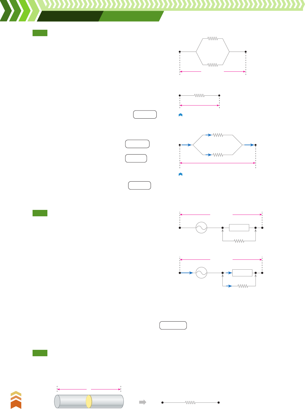 162 U n id a d e B • C a rg a s e lé tr ic a s e m m o vi m e n to 162 R ep ro d uç ão p ro ib id a. A rt .1 84 d o C ód ig o P en al e L ei 9 .6 10 d e 19 d e fe ve re iro d e 19 98 . ExErcícIos rEsolvIDos R. 59 Um resistor de 5 C e um resistor de 20 C são associados em paralelo e a essa associação aplica-se uma ddp de 100 V. a) Qual a resistência equivalente da associação? b) Qual a intensidade de corrente elétrica em cada resistor? c) Qual a intensidade de corrente elétrica na asso- ciação? ExErcícIos propostos R1 = 5 Ω U = 100 V R2 = 20 Ω Solução: A sequência para a solução do exercício está esque- mati zada nas figuras ao lado. Rp U = 100 V Figura I. R1 = 5 Ω U = 100 V i1 i2 R2 = 20 Ωi i Figura II. a) A resistência equivalente é (fig. I): Rp 5 R1R2 _______ R1 1 R2 ] Rp 5 5 3 20 _______ 5 1 20 ] Rp 5 4 C b) Pela lei de Ohm, as intensidades de corrente elé- trica são (fig. II): i1 5 U ___ R1 ] i1 5 100 ____ 5 ] i1 5 20 A i2 5 U ___ R2 ] i2 5 100 ____ 20 ] i2 5 5 A c) A intensidade de corrente elétrica na associação valerá: i 5 i1 1 i2 ] i 5 20 1 5 ] i 5 25 A Resposta: a) 4 C; b) i1 5 20 A e i2 5 5 A; c) 25 A R. 60 Na associação ao lado, A é um aquecedor onde está gravado (200 W — 100 V) e f é um fusível de resistên- cia desprezível que suporta uma corrente elétrica máxima de 3 A. Calcule o menor valor da resistência elétrica de um resistor que pode ser ligado em paralelo com o aquecedor sem queimar o fusível. A 3 A U = 100 V f A U = 100 V i i1 i2 R Pot = 200 W3 A f Solução: O aquecedor está ligado corretamente, pois U 5 100 V e, desse modo, ele dissipa a potência Pot 5 200 W. Então, a corrente que o percorre terá intensidade: Pot 5 U 3 i1 ] i1 5 Pot ___ U ] i1 5 200 ____ 100 ] i1 5 2 A Deve-se ter i 5 3 A, pois acima desse valor o fusível queima. Portanto, pela lei de Ohm: R 5 U __ i2 ] R 5 100 ____ 1 ] R 5 100 C Resposta: 100 C R. 61 Um fio condutor homogêneo, de seção transversal constante de área A e comprimento L, tem resistência elétrica R. Esse fio é dividido em 10 pedaços iguais que são ligados em paralelo, formando um cabo cuja resistência vale Rc. Calcule a relação entre Rc e R. Solução: O fio condutor de resistividade G pode ser esquematizado da seguinte maneira: L ρ A R em que R = ρ • —L A No resistor R, em paralelo, poderá passar a corrente i2, tal que: i 5 i1 1 i2 ] i2 5 i 2 i1 5 3 2 2 ] i2 5 1 A V3_P1_UN_B_CAP_07a.indd 162 19.09.09 09:34:24 163 C a p ít u lo 7 • A ss o ci a çã o d e r e si st o re s 163 ExErcícIos propostos P. 146 (PUC-RJ) O sistema de aquecimento de um chuveiro elétrico está representado na figura abaixo. Com a chave na posição “inverno”, o chuveiro dissipa 2.200 W, enquanto, na posição “verão”, dis si pa 1.100 W. A tensão na rede de alimentação é de 110 V. Admitin- do que os valores dessas resistências não variam com a temperatura, responda: a) Qual o valor da corrente que passa pelo fio de alimentação do chuveiro quando este é ligado na posição “inverno”? b) Qual o valor das resistências R1 e R2? P. 141 Associam-se em paralelo dois resistores de resis- tências R1 5 20 C e R2 5 30 C, e a essa associação aplica-se a ddp de 120 V. a) Qual a resistência equivalente da associação? b) Quais as intensidades de corrente elétrica em cada resistor? c) Qual a intensidade de corrente elétrica na asso- ciação? P. 142 Três lâmpadas incandescentes iguais estão asso- ciadas em paralelo, e a ddp entre os terminais da as sociação é mantida constante. Se uma das lâm- padas queimar, o que ocorrerá com a intensidade de corrente elétrica em cada uma das outras? P. 143 Em uma residência são ligados em paralelo, simul- taneamente, 12 lâmpadas de 100 W cada, um ferro elétrico de 720 W, um chuveiro de 2.400 W, um aquecedor de 1.200 W e um liquidificador de 360 W. A ddp constante na residência é de 120 V. Calcule a intensidade de corrente elétrica que atravessa o fusível que protege o circuito. P. 144 (Fuvest-SP) Várias lâmpadas idênticas estão ligadas em paralelo a uma rede de alimentação de 110 V. Sabendo-se que a corrente elétrica que percorre cada lâmpada é de 6 ___ 11 A, pergunta-se: a) Qual a potência dissipada em cada lâmpada? b) Se a instalação das lâmpadas estiver protegida por um fusível que suporta até 15 A, quantas lâmpadas, no máximo, podem ser ligadas? P. 145 (UFRJ) Você dispõe de várias lâmpadas idênticas, de 60 W — 120 V, e de uma fonte de tensão capaz de manter em seus terminais, sob quaisquer condi- ções, uma diferença de potencial constante e igual a 120 V. Considere as lâmpadas funcionando nor- malmente, isto é, com seu brilho máximo. Calcule quantas lâmpadas, no máximo, podem ser ligadas a essa fonte sem queimar um fusível de 15 A que protege a rede. R1 R2 Verão Inverno Para o cabo formado temos: 1 2 10 ρ A 1 2 10 r r r —–L 10 em que r = ρ • —––– A )( L 10 –— A resistência elétrica r de cada pedaço valerá: r 5 1 ___ 10 3 G 3 L __ A ] r 5 1 ___ 10 3 R Resposta: 1 ____ 100 Por outro lado, a resistência elétrica do cabo Rc será equivalente a 10 resistores iguais de resis- tência elétrica r cada um, associados em paralelo. Portanto: Rc 5 r ___ 10 ] Rc 5 @ 1 ___ 10 3 R # ________ 10 ] Rc 5 1 ____ 100 3 R ] Rc ___ R 5 1 ____ 100 V3_P1_UN_B_CAP_07a.indd 163 19.09.09 09:34:25 164 U n id a d e B • C a rg a s e lé tr ic a s e m m o vi m e n to 164 R ep ro d uç ão p ro ib id a. A rt .1 84 d o C ód ig o P en al e L ei 9 .6 10 d e 19 d e fe ve re iro d e 19 98 . Objetivo Analisar a associação mista de resistores. Termos e conceitos • nós • terminais de uma associação de resistores Seção 7.3 Associação mista de resistores As associações mistas de resistores são aquelas constituídas por associações em paralelo e associações em série. Qualquer associação mista pode ser substituída por um resistor equivalente, que se obtém considerando-s