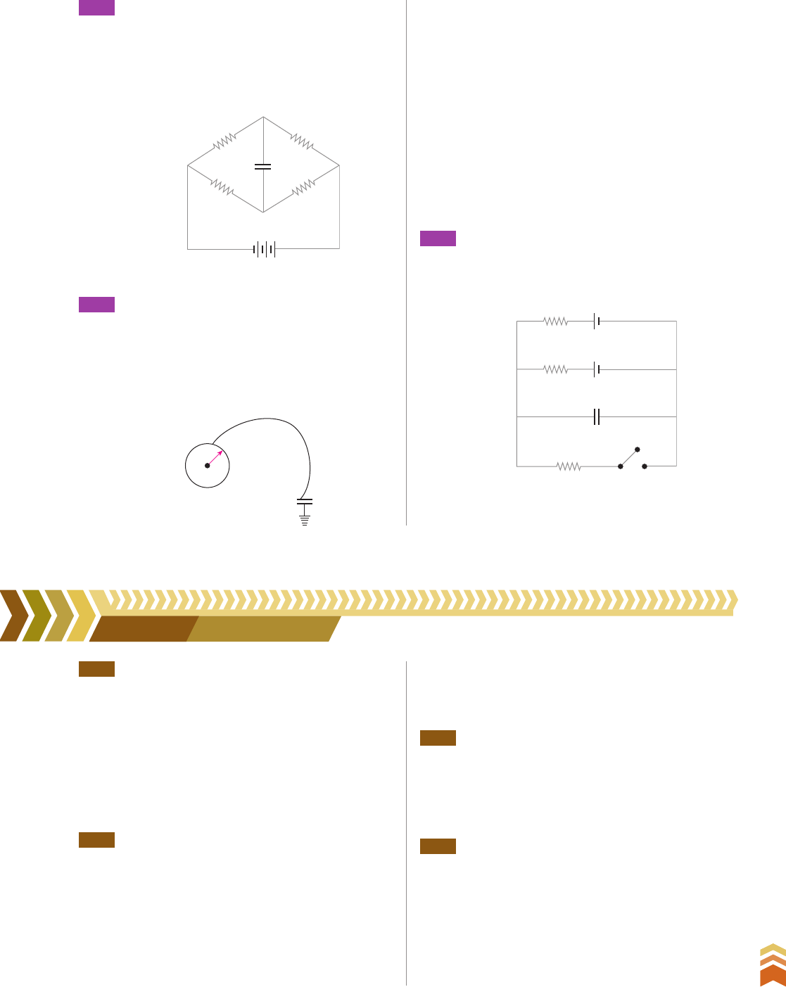 291 C a p ít u lo 1 2 • C a p a ci to re s 291 P. 309 (UFC-CE) A figura abaixo mostra uma esfera condutora, de raio R, ligada por um fio muito longo e de capacitância nula a uma das placas de um capacitor plano de placas paralelas e de capacitância C. A outra placa do capacitor está ligada à terra no ponto T (considere nulo o po- tencial em T). P. 308 No circuito indicado, a fem da bateria é de 18 V e sua resistência interna é de 1 C; a capacitância do capacitor é de 50 jF. Determine: a) a carga do capacitor; b) o valor da resistência que deveria substituir uma das resistências de 9 C para que o capacitor não se carregasse. P. 310 No circuito da figura a seguir, a capacitância do capacitor C é de 10 jF e as baterias E1 e E2 têm 6 V e 3 V e resistências internas 1 C e 0,5 C, respecti- vamente. A resistência R é de 3 C. 15 Ω 50 µF 9 Ω 9 Ω 3 Ω 18 V, 1 Ω Antes de o fio ser ligado, o capacitor estava ele- tricamente neutro e a esfera estava eletrizada, de modo que o potencial V0 5 k 3 Q 0 ___ R , na sua super- fície, era de 3,0 3 105 volts. Suponha que o sistema (esfera fio capacitor) está no vácuo e que a constante k é igual a 9,0 3 109 N 3 m2/C2. O raio R é igual a 0,30 m e a capacitância C é igual a 300 pF (1 pF 5 1,0 3 10212 F). Restabelecido o equi- líbrio, após o fio ser ligado, determine: a) o valor da carga do capacitor, expresso em jC (1 jC 5 1,0 3 1026 C); b) a diferença de potencial entre as placas do ca- pacitor, medida em volts. C R Fio T testes propostos T. 255 (Mackenzie-SP) Uma esfera condutora de raio 9,0 cm que se encontra no vácuo (k0 5 9 3 109 N 3 m2/C2) é eletrizada e adquire um potencial de 100 V. Com a mesma carga elétrica dessa esfera, um condensa- dor plano de 1,0 nF criaria entre suas placas, dis- tanciadas de 1,0 mm, um campo elétrico uniforme de intensidade: a) 1 3 1024 V/m d) 1 3 103 V/m b) 1 3 1021 V/m e) 1 3 105 V/m c) 1 3 102 V/m T. 256 (Olimpíada Paulista de Física) O fluxo de íons atra- vés de membranas ou vasos sanguíneos altera o valor da capacitância e muda as propriedades de seus tecidos. A aplicação desse estudo valeu o prê- mio Nobel de Medicina de 1998. Muitas membranas, como as que envolvem os axônios, das células do sistema nervoso, têm carga positiva na parte ex- terna e negativa na interna, comportando-se como um capacitor, cuja capacitância vale 1028 F. Qual é a carga deste capacitor, se a diferença de potencial é da ordem de 50 mV? ChR C E2 r2 E1 r1 Determine a carga do capacitor: a) com a chave Ch ligada; b) com a chave Ch desligada. T. 257 (Univali-SC) A carga de um condensador sofre um aumento de 6 3 1025 C quando a ddp entre seus terminais aumenta de 50 V para 60 V. Esse conden- sador tem capacidade de: a) 12 jF c) 1 jF e) 6 jF b) 2 jF d) 10 jF T. 258 (Unitins-TO) Para aumentar a capacitância de um capacitor plano, deve-se: a) substituir o dielétrico por outro, de constante dielétrica menor. b) substituir o dielétrico por outro, de constante dielétrica maior. c) reduzir a área das placas. d) aumentar a distância entre as placas. e) aumentar a diferença de potencial elétrico (ddp) entre as placas. a) 50 3 1028 C d) 50 3 1029 C b) 5 3 1028 C e) 5 3 10210 C c) 50 3 10210 C V3_P1_UN_B_CAP_12b.indd 291 17.09.09 18:30:30 292 U n id a d e B • C a rg a s e lé tr ic a s e m m o vi m e n to 292 R ep ro d uç ão p ro ib id a. A rt .1 84 d o C ód ig o P en al e L ei 9 .6 10 d e 19 d e fe ve re iro d e 19 98 . T. 260 (UFPR) A invenção dos capacitores ocorreu há mais de dois séculos, conforme registrado na literatura especializada. Embora os princípios básicos de projeto e funcionamento dos capacitores tenham permanecido os mesmos, a utilização de novos materiais e tecnologias de fabricação permitiram melhorar a eficiência e reduzir as dimensões des- ses componentes. A miniaturização foi necessária para que eles pudessem se adequar à evolução de outros dispositivos da eletrônica, como os circuitos integrados. Com relação aos princípios básicos dos capacitores, assinale a alternativa correta. a) A capacitância de um capacitor aumenta quan- do é inserido um material dielétrico entre suas placas. b) Num capacitor de placas paralelas, quanto maior a área das placas, menor será a capaci- tância. c) A capacitância pode ser expressa no SI em V/C. d) Cargas elétricas de mesmo sinal são armazena- das nas duas placas do capacitor. e) Os capacitores podem armazenar corrente elétrica. T. 261 (UFBA) Um capacitor de placas planas e paralelas, cujo dielétrico é o ar, está submetido a uma ddp de 120 V. Considerando-se sua capacitância igual a 2 3 1026 F, pode-se afirmar: (01) A intensidade do campo elétrico, no interior do capacitor, independe da ddp e da distância entre as placas. (02) O capacitor terá sua capacitância duplicada, caso a distância entre suas placas seja redu- zida à metade. (04) Sendo a carga elementar igual a 1,6 3 10219 C, descarregando-se o capacitor, 8 3 1012 elétrons pas sarão da placa negativa para a placa positiva. (08) Se um resistor ôhmico for ligado aos termi- nais do capacitor, 1,44 3 1022 J serão converti- dos em calor. (16) Introduzindo-se, entre as placas, um dielétrico de constante dielétrica K 5 3 e mantendo-se a ddp de 120 V, a carga armazenada no capacitor será de 8,0 3 1025 C se, para o ar, K 5 1. Dê como resposta a soma dos números que prece- dem as afirmativas corretas. queno orifício, ficam sujeitas a um campo elétrico uniforme, estabelecido entre as duas placas, A e B, mostradas na figura. Variando adequadamente a tensão entre as placas, Millikan conseguiu estabelecer uma situação na qual a gotícula mantinha-se em equilíbrio. Conseguiu medir cargas de milhares de gotículas e concluiu que os valores eram sempre múltiplos inteiros de 1,6 3 10219 C (a carga do elétron em valor absoluto). Em uma aproximação da investigação descrita, pode-se considerar que uma gotícula de massa 1,2 3 10212 kg atingiu o