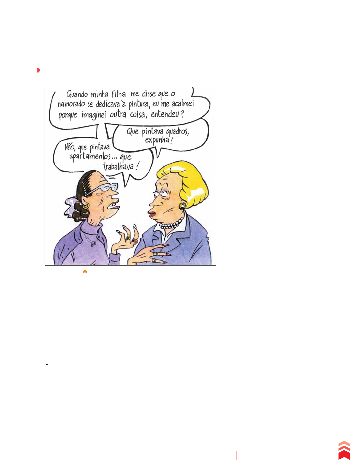 2. Releia a fala em que o homem relata o que fizeram. Que recurso gra- matical foi usado, no texto, para criar no leitor a impressão de que a viagem feita pelo casal teve um ritmo frenético? Explique de que modo esse recurso produz o efeito de sentido ff pretendido. Leia este outro cartum, da mesma autora, para responder às questões de 3 a 5. 3. Qual é a situação satirizada por esse cartum? a) A fala da primeira senhora traz uma opinião implícita sobre a atividade artística. Qual é ela? b) Que expressão, no texto, confirma essa opinião implícita? Por quê? 4. A fala da mãe reconstrói, para a amiga, diferentes reações que ela teve ao saber da ocupação do namorado da filha. Qual foi a primeira reação? O que a justifica? Qual foi a segunda reação? O que, no texto, permite identificá-la?ff 5. Leia novamente os trechos a seguir. 1o cartum “Fomos a todos os museus, [...] provamos os pratos mais exóticos, caminhamos, tiramos fotos, filmamos, visitamos parentes, amigos [...].” 2o cartum “Quando minha filha me disse que o namorado se dedicava à pintura, eu me acalmei porque imaginei outra coisa, entendeu? Que pintava quadros, expunha!” a) Observe a maneira como as orações estão organizadas em cada caso. Em qual dos trechos é possível identificar independência entre as orações? b) No trecho em que algumas orações apresentam dependência de outras, que termos estabelecem vínculos entre as diferentes orações? MAITENA. Superadas 1. Rio de Janeiro: Rocco, 2005. p. 138. 413 C ap ít u lo 2 3 • O e st ud o do p er ío do c om po st o R ep ro du çã o pr oi bi da . A rt . 1 84 d o C ód ig o P en al e L ei 9 .6 10 d e 19 d e fe ve re iro d e 19 98 . I_plus_gramatica_cap23_C.indd 413 10/12/10 5:04:17 PM Período composto por coordenação Observe o texto da tira abaixo. A comparação entre as estruturas sintáticas presentes nos dois textos nos leva a uma constatação importante sobre a maneira de organizar as orações no interior dos períodos: a depender das intenções do falante, a articulação das orações pode ser feita para criar vínculos sintáticos entre diferentes informações que se tornam dependentes umas das outras. Pode também ser adotado um outro modo de apresentar as informações, mantendo a independência sintática das orações. Para estudar os diferentes modos de articular, sintaticamente, as orações em períodos, precisamos tratar de dois conceitos básicos: o de coordenação e o de subordinação. No texto do primeiro cartum, observamos a apresentação de uma série de orações coordenadas. No texto do segundo, em que é evidente a construção de vínculos sintáticos entre as orações, elas aparecem subordinadas. MUTTS Patrick McDonnell Período composto Por coordenação Por subordinação O autor da tira, parodiando a célebre frase do filósofo ené Descartes (“Penso, logo existo”), atribui ao gato Chuchu uma conclusão de natureza filosófica: “ onrono, logo existo”. á, nesta fala da personagem, duas orações. Quando analisamos o modo como se relacionam, podemos observar que os dois verbos (ronronar, existir) apresentam-se com um mesmo peso sintático. Caso f ssemos representar a relação entre as informações a eles associadas, poderíamos criar um esquema como o seguinte. Ronrono existo logo Informação 1 Informação 2 Tome nota Ao estudar a sintaxe do período composto, identificamos o tipo de relação (de coordenação ou de subordinação) que se estabelece entre as orações no interior do período; investigamos a natureza da relação sem ntica que se estabelece entre as orações; e, quando o período é composto por subordina- ção, procuramos identificar a que termos equivalem as orações subordinadas na estrutura da oração principal e que função elas exercem em relação a essa oração. McDONNELL, Patrick. Mutts: os vira-latas. São Paulo: Devir, 200 . p. 37. 414 U n id ad e 6 • S in ta xe d o pe rí od o co m po st o R ep ro du çã o pr oi bi da . A rt . 1 84 d o C ód ig o P en al e L ei 9 .6 10 d e 19 d e fe ve re iro d e 19 98 . I_plus_gramatica_cap23_C.indd 414 10/12/10 5:04:17 PM A organização das orações coordenadas: • uma questão pragmática Observe o período abaixo, composto por coordenação: Vim, vi, venci. O período é composto por três orações, colocadas em relação atra- vés do processo sintático da coordenação. Diz-se, portanto, que são coordenadas entre si. Cada uma delas é sintaticamente independente das demais, sendo constituída por um sujeito simples (oculto, ou elíp- tico), eu, e por um predicado verbal cujo núcleo é um verbo transitivo ou intransitivo. Embora sejam sintaticamente independentes, as três orações coor- denadas ocorrem em uma ordem específica. Parece impossível modificar essa ordem para Vi, vim, venci; Vi, venci, vim; Venci, vi, vim; Venci, vim, vi ou Vim, venci, vi. Será, então, que essa ordem é sintaticamente determinada? Parece não ser esse o caso, porque podemos ter as orações apresentadas em qualquer ordem, em casos semelhantes de coordenação: Estudo, trabalho e viajo. Estudo, viajo e trabalho. Trabalho, estudo e viajo. No caso, portanto, de Vim, vi, venci, concluímos que não são restrições sintáticas, mas sem ntico-pragmáticas, que exigem a ordenação das orações segundo um critério cronológico das ações que se sucederam no tempo. Essa frase, traduzida do latim Vini, vidi, vincit, foi dita pelo imperador romano Caio úlio César, após uma vitória de seus exércitos. Era essa exatamente a ordem dos fatos que lhe interessava explicitar, para assim resumir a conquista do território pelos romanos. o contexto da enunciação que muitas vezes determina a ordem em que utilizamos as orações em uma sequência coordenada. Veja outros casos interessantes. Paulo está muito doente, logo não vai ao cinema com Patrícia. Paulo não vai ao cinema com Patrícia, logo está muito doente. Temos, nos d