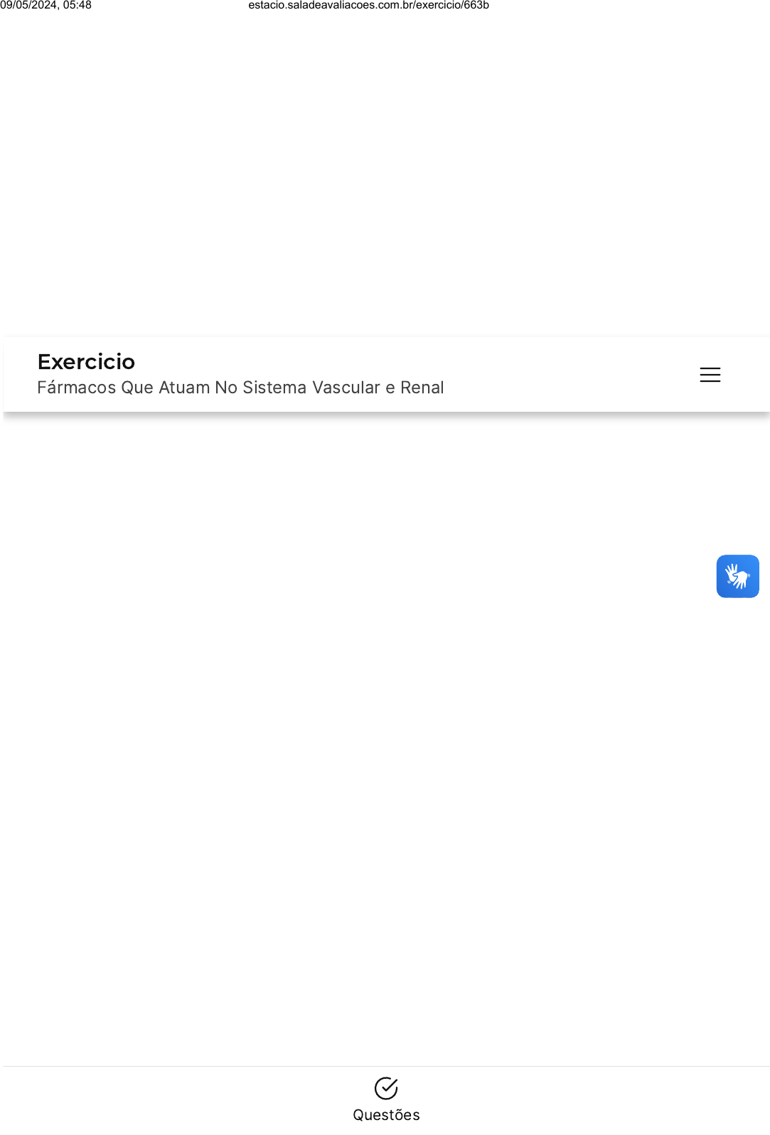 Questões Exercicio Fármacos Que Atuam No Sistema Vascular e Renal 09/05/2024, 05:48 estacio.saladeavaliacoes.com.br/exercicio/663bc344257ea9c026c95bdb/gabarito/ https://estacio.saladeavaliacoes.com.br/exercicio/663bc344257ea9c026c95bdb/gabarito/ 1/12 Você acertou 7 de 10 questões Verifique o seu desempenho e continue treinando! Você pode refazer o exercício quantas vezes quiser. Verificar Desempenho A B C D E 1 Marcar para revisão Os fármacos que atuam na coagulação sanguínea e na agregação plaquetária são rotineiramente utilizados no tratamento e na profilaxia de doenças tromboembólicas e cardiovasculares. A respeito desses medicamentos, podemos afirmar O clopidogrel pode ser utilizado em substituição ao ácido acetilsalicílico, uma vez que ambos possuem o mesmo mecanismo de ação. A varfarina atua inibindo a via da vitamina K e, consequentemente, a formação de fatores de coagulação dependentes dessa vitamina, como, por exemplo, os fatores II, VIII, IX e X. A heparina de alto peso molecular liga-se à antitrombina III. Esse complexo, ao inibir a trombina, promove, simultaneamente, efeitos anticoagulantes e antiagregantes plaquetários. As hemorragias, causadas pela administração de heparina de baixo peso molecular, podem ser completamente revertidas com a infusão de protamina. A tenecteplase é um agente ativador do plasminogênio tecidual (tPA), que atua evitando a agregação das plaquetas na fase inicial de formação do trombo. 09/05/2024, 05:48 estacio.saladeavaliacoes.com.br/exercicio/663bc344257ea9c026c95bdb/gabarito/ https://estacio.saladeavaliacoes.com.br/exercicio/663bc344257ea9c026c95bdb/gabarito/ 2/12 A B C D E Resposta correta Parabéns, você selecionou a alternativa correta. Confira o gabarito comentado! Gabarito Comentado A alternativa correta é a C. A heparina de alto peso molecular tem a capacidade de se ligar à antitrombina III. Este complexo resultante tem a função de inibir a trombina, que é uma enzima chave no processo de coagulação sanguínea. Ao inibir a trombina, a heparina de alto peso molecular promove efeitos anticoagulantes, prevenindo a formação de coágulos, e antiagregantes plaquetários, impedindo a agregação de plaquetas que também contribui para a formação de coágulos. Portanto, a heparina de alto peso molecular tem um papel importante na prevenção e tratamento de condições tromboembólicas e cardiovasculares. 2 Marcar para revisão Em uma situação em que um paciente que está medicado com anticoagulante oral - varfarina ou novos anticoagulantes (dabigatrana ou rivaroxabana) - apresenta uma hemorragia de grande proporção, qual antídoto você prescreveria, respectivamente, para o caso da varfarina ou para os novos anticoagulantes? Sulfato de protamina ou vitamina K. Vitamina K ou complexo protrombina. Plasma fresco ou sulfato de protamina. Concentrado de plaquetas ou sulfato de protamina. Complexo protrombina ou plasma fresco. 09/05/2024, 05:48 estacio.saladeavaliacoes.com.br/exercicio/663bc344257ea9c026c95bdb/gabarito/ https://estacio.saladeavaliacoes.com.br/exercicio/663bc344257ea9c026c95bdb/gabarito/ 3/12 A B C D E Resposta incorreta Opa! A alternativa correta é a letra A. Confira o gabarito comentado! Gabarito Comentado O antídoto para a varfarina é a vitamina K, enquanto o sulfato de protamina é usado para reverter os efeitos dos novos anticoagulantes, como a dabigatrana e a rivaroxabana. Portanto, em uma situação de hemorragia de grande proporção em um paciente medicado com esses anticoagulantes, o tratamento adequado seria a administração de sulfato de protamina ou vitamina K, respectivamente. Isso justifica a alternativa A como a correta. 3 Marcar para revisão Os diuréticos de alça constituem uma classe importante de medicamentos frequentemente utilizados no tratamento de condições como hipertensão arterial e edema. Qual é o principal mecanismo de ação dos diuréticos de alça e quais são os principais eletrólitos excretados em maior quantidade devido a esse mecanismo? Os diuréticos de alça atuam na porção distal dos túbulos renais, aumentando a reabsorção de sódio e potássio. Os diuréticos de alça inibem a enzima conversora de angiotensina, reduzindo a produção de angiotensina II. Os diuréticos de alça agem na porção ascendente da alça de Henle, inibindo o cotransportador de Na+-K��2Cl-, resultando em aumento da excreção de sódio, potássio, cálcio e água. Os diuréticos de alça aumentam a absorção de cálcio nos túbulos renais, levando à hipercalcemia. Os diuréticos de alça promovem a reabsorção de ácido úrico nos 09/05/2024, 05:48 estacio.saladeavaliacoes.com.br/exercicio/663bc344257ea9c026c95bdb/gabarito/ https://estacio.saladeavaliacoes.com.br/exercicio/663bc344257ea9c026c95bdb/gabarito/ 4/12 E A B C D E túbulos renais, causando hiperuricemia. Resposta correta Parabéns, você selecionou a alternativa correta. Confira o gabarito comentado! Gabarito Comentado Os diuréticos de alça atuam na porção ascendente da alça de Henle, inibindo o cotransportador de Na+-K��2Cl-, resultando em aumento da excreção de sódio, potássio, cálcio e água. 4 Marcar para revisão Por que os betabloqueadores seletivos, como o atenolol e o metoprolol, são preferencialmente usados no tratamento da hipertensão arterial em comparação com os não seletivos, como o propranolol? Os betabloqueadores seletivos têm efeitos mais duradouros. Os betabloqueadores seletivos atuam sobre os receptores β2 dos brônquios, causando broncoconstrição. Os betabloqueadores seletivos têm menos efeitos colaterais no sistema nervoso central. Os betabloqueadores seletivos têm ação mais intensa na redução da produção de renina pelos rins. Os betabloqueadores seletivos não têm efeitos adversos na função hepática. Resposta correta Parabéns, você selecionou a alternativa correta. Confira o gabarito 09/05/2024, 05:48 estacio.saladeavaliacoes.com.br/e