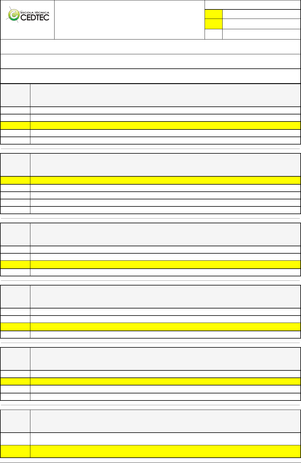 Pincel Atômico - 12/03/2024 08:08:10 1/4 ELISON SANTOS ALVES Avaliação Presencial (EAD) Atividade finalizada em 20/12/2023 14:18:19 (1442740 / 1) LEGENDA Resposta correta na questão # Resposta correta - Questão Anulada X Resposta selecionada pelo Aluno Disciplina: SEGURANÇA NO TRABALHO [861058] - Avaliação com 20 questões, com o peso total de 51,00 pontos [capítulos - Todos] Turma: Curso Técnico: Mecânica - Grupo: EAD - 06/23 - EAD MEC [91782] Aluno(a): 91479190 - ELISON SANTOS ALVES - Respondeu 15 questões corretas, obtendo um total de 38,25 pontos como nota [350168_1360 43] Questão 001 De acordo com o Art. 20 da Lei 8.213, toda doença que o trabalhador adquire em razão da sua atividade profissional enquadra-se como doença ocupacional. A enfermidade pode ter relação direta ou indireta com sua atividade, sendo definida como Doença Profissional ou Doença do Trabalho. Assinale a alternativa que melhor representa a definição de Doença Profissional. É a doença desencadeada por ato de imprudência, de negligência ou de imperícia de terceiro ou de companheiro de trabalho. É a doença proveniente de contaminação acidental do empregado no exercício de sua atividade. X É aquela produzida ou desencadeada pelo exercício do trabalho peculiar à determinada atividade. É a proveniente de ofensa física intencional, inclusive de terceiro, por motivo de disputa relacionada ao trabalho. É aquela adquirida ou desencadeada em função de condições especiais em que o trabalho é realizado e com ele se relacione diretamente. [350168;_276 9] Questão 002 A CAT é um documento padronizado pelo Instituto Nacional de Seguridade Social - INSS, utilizado pelas empresas para informar a Previdência Social, sobre os acidentes ou ocorrências de doença relacionadas ao trabalho. Qual a definição da sigla CAT? Marque a alternativa que apresenta a resposta correta. X Comunicação de Acidente do Trabalho Comunicado para Acidentes do Trabalhador Comunicativo de Acidentes de Trabalho Comunicação Acidentaria de Trabalho Comunicado de Acidente de Trabalho [350169_8241 ] Questão 003 São considerados equipamentos de proteção coletiva: Protetores Auriculares e Botinas Luvas e máscaras X Corrimão de Escada e sinalização Óculos e Capacetes [350168_8248 ] Questão 004 De acordo ao subitem 9.1.1 da NR-09, a obrigatoriedade da elaboração e implementação do Programa de Prevenção de Riscos Ambientais – PPRA é de quem? Do técnico de segurança Da CIPA X Do empregador Do empregado [350168_6907 ] Questão 005 Quais dos equipamentos abaixo NÃO serve para proteção da cabeça do funcionário? Capacete Protetor auricular X Casco Jugular [350168;_276 6] Questão 006 Ao executar suas tarefas, o individuo trabalhador se expõe a condições de riscos e situação de perigo que pode levar ao acidente de trabalho. Qual a definição para o termo acidente na visão prevencionista? É qualquer ocorrência programada, inesperada, que interfere ou interrompe o processo normal de uma atividade, não trazendo como consequência isolada ou simultaneamente perda de tempo, dano material ou lesões ao homem X É qualquer ocorrência não programada, inesperada, que interfere ou interrompe o processo normal de uma atividade, trazendo como consequência isolada ou simultaneamente perda de tempo, dano material ou lesões ao homem Pincel Atômico - 12/03/2024 08:08:10 2/4 É qualquer ocorrência não programada, inesperada, porém não interfere nem interrompe o processo normal de uma atividade, trazendo como consequência isolada ou simultaneamente perda de tempo, dano material ou lesões ao homem É qualquer ocorrência não programada, esperada, que não interfere ou interrompe o processo normal de uma atividade, trazendo como consequência isolada ou simultaneamente perda de tempo, dano material ou lesões ao homem É qualquer ocorrência não programada, inesperada, que interfere ou interrompe o processo normal de uma atividade, trazendo como consequência isolada ou simultaneamente perda de tempo, sem dano material nem lesões ao homem [350168_1359 55] Questão 007 São objetivos da Segurança do Trabalho, EXCETO: Propor melhores condições de trabalho, tanto física quanto psíquica. X Conscientizar o profissional acerca da importância da prevenção de acidentes de trabalho, bem como suas consequências. Assegurar condições ao desenvolvimento socioeconômico, aos interesses da segurança nacional e à proteção da dignidade da vida humana, além da preservação, melhoria e recuperação da qualidade ambiental propícia à vida. Minimizar acidentes e doenças relacionadas às atividades profissionais. Suprimir as condições de trabalho que apresentam insegurança ao colaborador. [350168_1361 37] Questão 008 Os Riscos Ambientais são classificados de acordo com a sua natureza e padronização de cores, ou seja, a fonte potencialmente capaz de provocar danos à saúde do trabalhador. Assinale a alternativa que melhor representa os agentes de Risco Mecânico e sua cor correspondente: Probabilidade de incêndio ou explosão, identificado pela cor amarelo. X Eletricidade, identificado pela cor azul. Falta de ordem e limpeza, identificado pela cor marrom. Armazenamento inadequado, identificado pela cor vermelho. Máquinas e equipamentos sem proteção, identificado pela cor verde. [350168_8249 ] Questão 009 São profissionais que compõem o SESMT: Médico do Trabalho Engenheiro de Segurança do Trabalho e Técnico em Segurança do Trabalho X Todas as alternativas. Enfermeiro do Trabalho e Auxiliar de Enfermagem do Trabalho [350168_8254 ] Questão 010 Atua de maneira restrita, modificando os elementos parciais do posto de trabalho, como: Dimensões, Iluminação, Ruído, Temperatura, etc. Estamos falando de qual tipo de Ergonomia? Concepção X Correção Participativa Conscientização. [350167;_275 8] Questão 011 Conforme estudamos, são considerados agentes extintores, em virtude da
