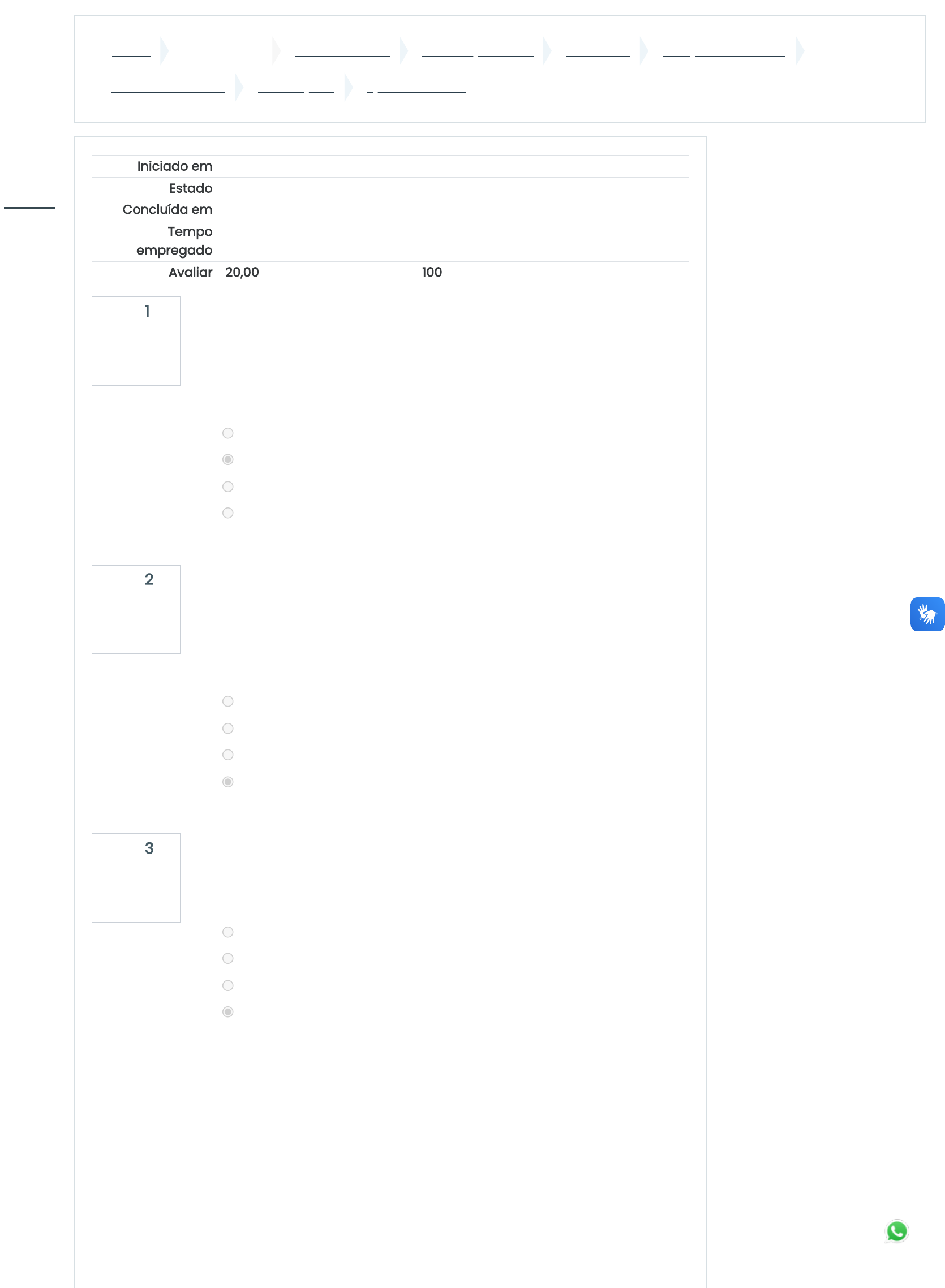 Painel Meus cursos CURSOS FUNEC Graduação - EAD Aluno EAD JUNÇÕES DE TURMA Materiais Elétricos AVALIAÇÕES QUESTIONÁRIO 1 Questão 1 Completo Atingiu 2,00 de 2,00 Questão 2 Completo Atingiu 2,00 de 2,00 Questão 3 Completo Atingiu 2,00 de 2,00 Iniciado em Sunday, 12 May 2024, 16:12 Estado Finalizada Concluída em Sunday, 12 May 2024, 16:18 Tempo empregado 6 minutos 3 segundos Avaliar 20,00 de um máximo de 20,00(100%) Um fio de aço-carbono comum com 3 mm de diâmetro deve oferecer uma resistência não superior a 20 Ω. Calcule o comprimento máximo do fio. Adotar 0,6 x 10 (Ω.m) para condutividade do aço-carbono comum. Escolha uma opção: a. 1000 m. b. 848,23 m. c. 2356,19 m. d. 23,56 m. 7 -1 Qual é a propriedade que diz respeito a disponibilidade do material em permitir um fluxo ordenado de cargas livres por seu meio (a chamada corrente elétrica), quando este é submetido a uma diferença de potencial (a chamada tensão elétrica). Escolha uma opção: a. Permissividade dielétrica. b. Permeabilidade magnética. c. Rigidez dielétrica. d. Condutividade elétrica. Das alternativas abaixo, determine aquela que apresente apenas elementos condutores. Escolha uma opção: a. Vidro, papel, chumbo. b. Prata, papel, vidro. c. Cristal de germânio, prata, ouro. d. Alumínio, ouro, cobre. https://ava.funec.br/my/ https://ava.funec.br/course/index.php?categoryid=10 https://ava.funec.br/course/index.php?categoryid=17 https://ava.funec.br/course/index.php?categoryid=19 https://ava.funec.br/course/index.php?categoryid=77 https://ava.funec.br/course/view.php?id=617 https://ava.funec.br/course/view.php?id=617#section-6 https://ava.funec.br/mod/quiz/view.php?id=9299 javascript:void(0); https://ava.funec.br/user/index.php?id=617 https://ava.funec.br/badges/view.php?type=2&id=617 https://ava.funec.br/admin/tool/lp/coursecompetencies.php?courseid=617 https://ava.funec.br/grade/report/index.php?id=617 https://ava.funec.br/my/ https://ava.funec.br/?redirect=0 https://ava.funec.br/calendar/view.php?view=month&course=617 javascript:void(0); https://ava.funec.br/user/files.php https://ava.funec.br/course/view.php?id=757 https://ava.funec.br/course/view.php?id=819 https://ava.funec.br/course/view.php?id=621 https://ava.funec.br/course/view.php?id=957 https://ava.funec.br/course/view.php?id=622 https://ava.funec.br/course/view.php?id=492 https://ava.funec.br/course/view.php?id=443 https://ava.funec.br/course/view.php?id=440 https://ava.funec.br/course/view.php?id=617 https://ava.funec.br/course/view.php?id=635 https://ava.funec.br/my/ Questão 4 Completo Atingiu 2,00 de 2,00 Questão 5 Completo Atingiu 2,00 de 2,00 Questão 6 Completo Atingiu 2,00 de 2,00 Questão 7 Completo Atingiu 2,00 de 2,00 Supondo um material que apresenta as seguintes dimensões: largura de 2mm, altura de 2mm e comprimento de 1,0m, e utilizando um ohmímetro, verificou-se que a resistência do material é de 0,1Ω. Determine a resistividade (ρ) do material em Ω.cm. Escolha uma opção: a. 5x10 Ω.cm. b. 5x10 Ω.cm. c. 40x10 Ω.cm. d. 40x10 Ω.cm. -2 2 6 -6 A planta de geração energética brasileira é formada, em sua grande maioria, por usinas hidroelétricas interligadas no sistema interligado nacional – SIN distribuídas por todo o país. Devido estas usinas estarem localizadas longe dos centros consumidores, a energia elétrica precisa ser transmitida através de linhas de transmissão. Você, como engenheiro, recebe a missão para calcular a resistência de uma linha de transmissão de 100km de comprimento, composta por fios de alumínio cuja seção transversal é igual a 500mm². Sabendo-se que a temperatura ambiente é de 30°C e que a condutividade do alumínio a 20°C é igual a 35,46x10 (Ω.m) , marque a alternativa que indica o valor da resistência ôhmica da linha de transmissão. (Adotar coeficiente de temperatura do alumínio igual a 3,9 x 10 °C ). Escolha uma opção: a. 4,99 Ω b. 3,86 μΩ c. 5,86 Ω d. 5,86 mΩ 6 -1 -3 -1 Calcule a condutividade do ouro a 200°C. Adotar ρ = 2,44x10 (Ω.m) e α = 3,4x10 (°C) . Escolha uma opção: a. 24x10 (Ω.m) b. 24x10 (Ω.m) c. 240 (Ω.m) d. 36x10 (Ω.m) ouro -8 ouro -3 -1 6 -1 3 -1 -1 6 -1 Supondo um cristal de silício intrínseco, esse cristal é considerado um material: Escolha uma opção: a. Semicondutor. b. Condutor. c. Isolante. d. Todas as alternativas anteriores. javascript:void(0); https://ava.funec.br/user/index.php?id=617 https://ava.funec.br/badges/view.php?type=2&id=617 https://ava.funec.br/admin/tool/lp/coursecompetencies.php?courseid=617 https://ava.funec.br/grade/report/index.php?id=617 https://ava.funec.br/my/ https://ava.funec.br/?redirect=0 https://ava.funec.br/calendar/view.php?view=month&course=617 javascript:void(0); https://ava.funec.br/user/files.php https://ava.funec.br/course/view.php?id=757 https://ava.funec.br/course/view.php?id=819 https://ava.funec.br/course/view.php?id=621 https://ava.funec.br/course/view.php?id=957 https://ava.funec.br/course/view.php?id=622 https://ava.funec.br/course/view.php?id=492 https://ava.funec.br/course/view.php?id=443 https://ava.funec.br/course/view.php?id=440 https://ava.funec.br/course/view.php?id=617 https://ava.funec.br/course/view.php?id=635 https://ava.funec.br/my/ Questão 8 Completo Atingiu 2,00 de 2,00 Questão 9 Completo Atingiu 2,00 de 2,00 Questão 10 Completo Atingiu 2,00 de 2,00 Uma tira metalização de alumínio em um dispositivo de estado sólido possui 1 mm de extensão com uma espessura de 1 μm e uma largura de 5 μm. Qual a resistência desta tira? Escolha uma opção: a. 7,51 Ω. b. 3,49 Ω. c. 5,66 Ω. d. 8,49 Ω. Deseja-se construir um resistor com resistência igual 12,5 mΩ. Para isso será utilizado um fio cilíndrico cuja resistividade é igual a 2,6x10 Ω.cm e cuja área da seção transversal é igual a 0,38mm². Determine o valor do comprimento deste fio. Escolha uma opção: a. 18,27 cm b. 16,24 cm c. 15,26 cm d. 20,15 cm -6 Na temperatura de 35 °C mediu-se o valor ad 