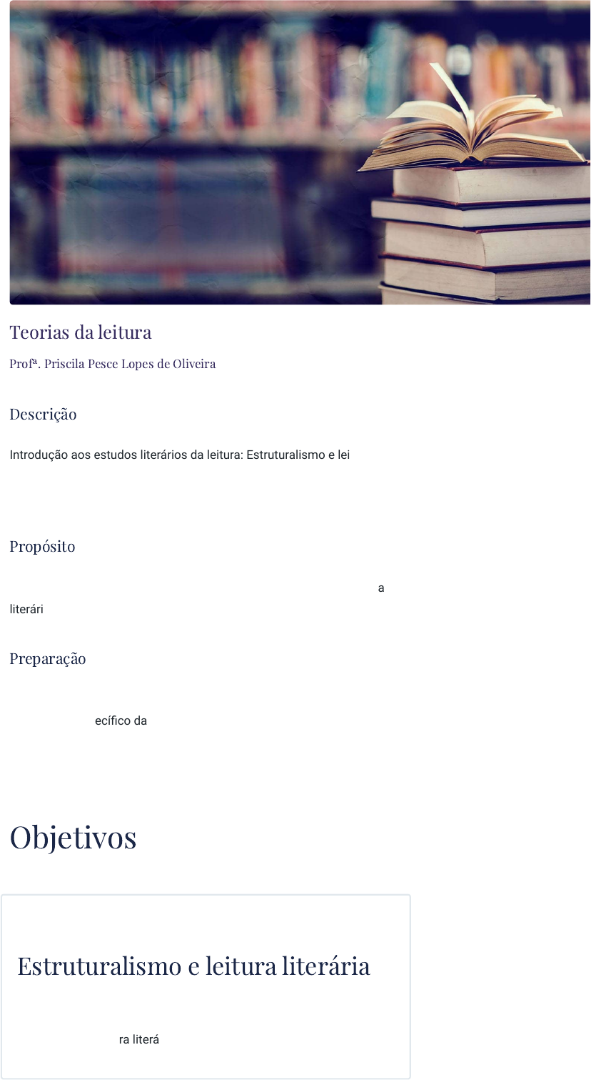 14/04/2024, 09:16 Teorias da leitura https://stecine.azureedge.net/repositorio/00212ge/02822/index.html?brand=estacio# 1/50 Teorias da leitura Profª. Priscila Pesce Lopes de Oliveira Descrição Introdução aos estudos literários da leitura: Estruturalismo e leitura literária, Estética da Recepção, Teoria do Efeito Literário e relações Literatura-Psicanálise. Propósito Compreender diferentes métodos, pressupostos e objetivos da leitura literária para ampliar a competência leitora e literária. Preparação Tenha em mãos um dicionário de literatura para compreender o vocabulário específico da área. Na internet, você acessa gratuitamente o E-Dicionário de Termos Literários, de Carlos Ceia, e o Dicionário de Cultura Básica, de Salvatore D’Onofrio. Objetivos Módulo 1 Estruturalismo e leitura literária Identificar implicações dos preceitos estruturalistas para a concepção de leitura literária. 14/04/2024, 09:16 Teorias da leitura https://stecine.azureedge.net/repositorio/00212ge/02822/index.html?brand=estacio# 2/50 Módulo 2 Estética da Recepção e Teoria do Efeito Literário Identificar as propostas de Jauss e de Iser quanto ao papel produtivo da leitura na teoria literária. Módulo 3 Crítica literária e Psicanálise Reconhecer as possibilidades de pensar a leitura literária a partir de conceitos psicanalíticos. Em 1961, o escritor francês Raymond Queneau publicou Cem Mil Bilhões de Poemas , livro contendo dez sonetos e uma organização muito especial: cada verso estava em uma tira de página separada, ou seja, podia ser virada independentemente do restante do poema na “mesma” página. Na prática, isso quer dizer que os leitores poderiam montar seus próprios poemas combinando os versos de forma livre – as possibilidades são 1014, ou seja, 100.000.000.000.000 poemas diferentes. Queneau aproveita, assim, características da forma do soneto (número fixo de versos e estrofes, esquema regular de rimas) para concretizar um aspecto da dinâmica literária que será o nosso objeto de estudos: a participação intensa de leitores na existência do texto literário. Considerar a pessoa que lê não é novidade na literatura; inclusive, dirigir-se a ela é característica marcante de alguns de nossos autores mais célebres, como Machado de Assis no início de Memórias Póstumas de Brás Cubas. Contudo, apesar de ser buscado, cortejado, desafiado – em uma palavra, previsto pelas obras, o leitor só veio a receber atenção teórico-crítica em meados do século XX. Isto se deu quando os estudiosos passaram a se perguntar de maneira sistemática sobre os objetivos e mecanismos da leitura literária, o que abriu um novo terreno de reflexão que tem sido explorado por pesquisadores atuantes em diferentes vertentes teórico-críticas, entre elas: Introdução 14/04/2024, 09:16 Teorias da leitura https://stecine.azureedge.net/repositorio/00212ge/02822/index.html?brand=estacio# 3/50 Cem Mil Bilhões de Poemas Ilustração da obra escrita pelo autor Raymond Queneau 1 - Estruturalismo e leitura literária Ao �nal deste módulo, você será capaz de identi�car implicações dos preceitos estruturalistas para a concepção de leitura literária. Contexto e pretexto Para entender o Estruturalismo, é preciso fazer algo totalmente contrário à atitude estruturalista: examinar o seu contexto histórico. Isso porque várias das questões e propostas estruturalistas respondem tanto a lacunas da teoria literária da época quanto a tendências dominantes na crítica francesa antes de 1950. No início do século passado, a França era um importante centro cultural, uma referência para outros países europeus, americanos e africanos. Para lá se dirigiam pensadores, pesquisadores e artistas do mundo Estruturalismo; Estética da Recepção e Teoria do Efeito Literário; Literatura e Psicanálise. 14/04/2024, 09:16 Teorias da leitura https://stecine.azureedge.net/repositorio/00212ge/02822/index.html?brand=estacio# 4/50 todo, atraídos pelo ambiente cosmopolita. É o caso dos nossos modernistas Oswald de Andrade e Tarsila do Amaral, e também dos búlgaros Julia Kristeva e Tzvetan Todorov, que ajudaram a introduzir na cena intelectual parisiense o formalismo russo, uma das bases do Estruturalismo, como veremos adiante. Atenção! Um ponto relevante são certas características culturais que, na França como no Brasil, são ao mesmo tempo estereótipos e algo que se experimenta todos os dias (para nós, por exemplo, o famoso “jeitinho” e as relações personalistas). Na França, o sistema de ensino e a relação social com o conhecimento eram muito marcados pela questão do prestígio e da validade da ciência. Nesse sentido, o Estruturalismo foi pautado por tentativas dos estudos literários de conseguirem mais legitimidade social e institucional, tornando-se mais parecidos com as ciências humanas, que ganhavam um caráter de cientificidade crescente: Antropologia, Sociologia e, em especial, a Linguística. Havia, então, um esforço de ser visto como uma ciência “séria”, o que leva a uma busca de rigor no desenvolvimento e aplicação de metodologias de análise, bem como na delimitação do objeto. A proposta de aproveitar as descobertas mais recentes em Linguística para descrever literatura caminhava na contramão das principais tendências da crítica francesa da época, na qual imperavam o biografismo e a crítica engajada. Vejamos rapidamente alguns pontos dessas práticas que o Estruturalismo buscava combater. A crítica engajada Seu principal expoente foi o pensador e escritor francês Jean-Paul Sartre (1905-1980), e em linhas gerais caracteriza-se por: 1. Considerar a prosa uma prática que utiliza a língua como um instrumento de nomeação, e que, nesse ato de nomear, torna visível alguma coisa; 14/04/2024, 09:16 Teorias da leitura https://stecine.azureedge.net/repositorio/00212ge/02822/index.html?brand=estacio# 5/50 2. Possuir um caráte