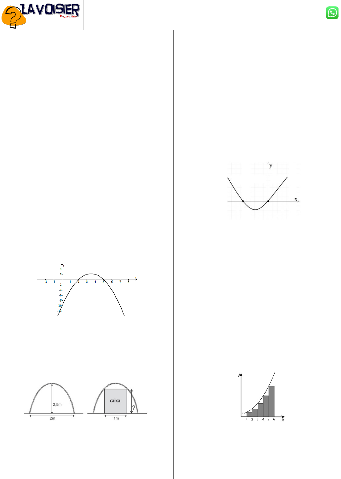 8. Laura é geóloga e está fazendo pesquisa numa caverna cuja entrada tem o formato de uma parábola invertida. Essa entrada, no nível do chão, tem 2m de largura e seu ponto mais alto está a 2,5m do chão, conforme figura a seguir.