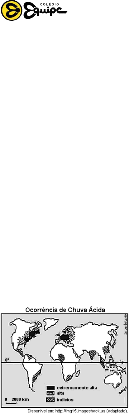 EXERCÍCIOS DE REVISÃO – IMPACTOS AMBIENTAIS ATMOSFÉRICOS – 9°ANO Prof. Fabrício Proença 01) Das opções abaixo, a que não representa um impacto ambiental é: a) chuva ácida b) assoreamento dos rios c) desertificação d) poluição sonora e) mobilidade urbana 02) Em um debate sobre o futuro do setor de transporte de uma grande cidade brasileira com trânsito intenso, foi apresentado um conjunto de propostas. Entre as propostas reproduzidas a seguir, aquela que atende, ao mesmo tempo, a implicações sociais e ambientais presentes nesse setor é a) proibir o uso de combustíveis produzidos a partir de recursos naturais. b) promover a substituição de veículos a diesel por veículos a gasolina. c) incentivar a substituição do transporte individual por transportes coletivos. d) aumentar a importação de diesel para substituir os veículos a álcool. e) diminuir o uso de combustíveis inflamáveis devido ao perigo que representam. 03) As mudanças climáticas são um dos principais problemas ambientais do mundo que tem afetado grande parte da população de pessoas, de animais e de plantas. Esse problema traz diversas consequências negativas para o meio ambiente, da qual se destaca: a) aumento da temperatura do globo terrestre. b) diminuição dos níveis dos oceanos. c) aumento da urbanização. d) crescimento da industrialização. e) diminuição dos gases de efeito estufa. 04) O _________ é um dos principais problemas ambientais no Brasil que acontece desde a chegada dos portugueses em 1500. Das alternativas abaixo, a que preenche corretamente a lacuna é: a) assoreamento b) efeito estufa c) desmatamento d) empobrecimento do solo e) uso de agrotóxicos 05) A maior frequência na ocorrência do fenômeno atmosférico apresentado na figura relaciona-se a: a) concentrações urbano-industriais. b) episódios de queimadas florestais. c) atividades de extrativismo vegetal. d) índices de pobreza elevados. e) climas quentes e muito úmidos. 06) As ilhas de calor representam um dos problemas ambientais urbanos. Esse fenômeno climático acontece devido: a) ao aumento das queimadas nas zonas rurais. b) a diminuição da densidade demográfica dos centros urbanos. c) ao aumento da inversão térmica nas cidades. d) a elevação das temperaturas em algumas zonas urbanas. e) aos microclimas periféricos que afetam diretamente as cidades. 07) Muitos impactos ambientais trazem consequências graves e algumas vezes irreversíveis para o meio ambiente. Alguns deles são causados pelo homem e surgem, sobretudo, pela falta de consciência ambiental, como o uso indiscriminado dos recursos naturais. Todas as alternativas abaixo trazem exemplos de ações positivas relacionadas com a consciência ambiental, exceto: a) a economia de água e de energia b) o uso de automóveis c) o descarte correto do lixo d) a redução do consumo e) o uso de sacolas biodegradáveis