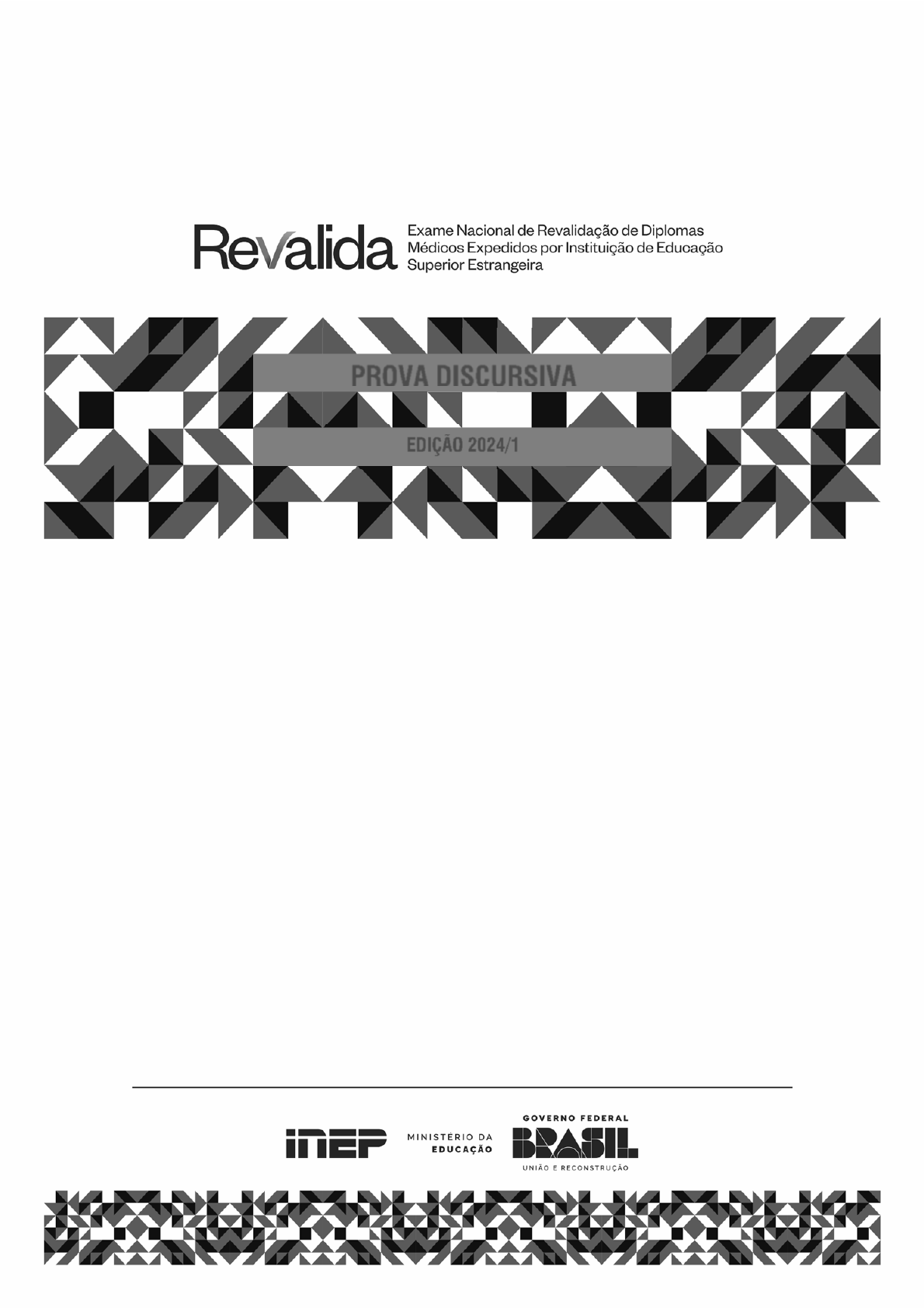 LEIA COM ATENÇÃO AS INSTRUÇÕES ABAIXO. 1 Verifique se, além deste caderno, você recebeu o Caderno de Respostas, destinado à transcrição das respostas discursivas. 2 Confira se este Caderno de Prova contém 05 questões discursivas. 3 Verifique se a prova está completa. Caso contrário, avise imediatamente ao Chefe de Sala. 4 Assine o Caderno de Respostas no espaço próprio, com caneta esferográfica de tinta preta, fabricada em material transparente. 5 Não realize qualquer espécie de consulta ou comunicação com demais participantes durante o período da prova. 6 Você terá 4 horas para responder às questões da Prova Discursiva. 7 Ao terminar a prova, levante a mão e aguarde o Chefe de Sala em sua carteira para proceder à identificação, recolher o material de prova e coletar a assinatura na Lista de Presença. 8 Atenção! Você só poderá levar este Caderno de Prova quando restarem 30 minutos para o término da Prova Discursiva PROVA DISCURSIVA EDIÇÃO 2024/1 2023 PRIMEIRA EDIÇÃO 1 QUESTÃO 1 1. ITEM 150193 - V. 805642 Uma mulher com 77 anos é referenciada pela unidade básica de saúde para ambulatório de psiquiatria da Atenção Secundária, em razão da suspeita clínica de depressão. Ao ser atendida na unidade de psiquiatria, o especialista levanta a hipótese de um quadro de pseudodepressão devido às proeminentes queixas de transtornos de memória, de orientação temporal e visoespacial apresentadas pela paciente, que tem histórico de hipertensão arterial sistêmica, diabetes mellitus e doença renal crônica em tratamento conservador. Ela relata também que vem experimentando um declínio progressivo de suas habilidades mentais nos últimos 2 anos, que, no início, tinha dificuldade de se lembrar de certas palavras e que, posteriormente, começou a não mais se recordar de rostos conhecidos, contudo, lembrava-se melhor de fatos antigos. O médico solicita, então, uma ressonância magnética de encéfalo que revela padrão compatível com atrofia hipocampal e de regiões corticais predominantemente posteriores. Realizado exame de PET scan, os resultados revelam sinais compatíveis com depósitos beta-amiloides cerebrais. Considerando o caso clínico dessa paciente, faça o que se pede nos itens a seguir. a) Apresente a causa mais provável da síndrome demencial da paciente. (valor: 3,0 pontos) b) Indique o nome da doença crônica não transmissível que acomete a paciente e que a predispõe à condição descrita. (valor: 2,0 pontos) c) Considerando que a paciente apresenta quadro demencial, liste outras 3 causas possíveis do transtorno neuropsiquiátrico descrito. (valor: 3,0 pontos) d) Cite os nomes de 2 fármacos aprovados para o tratamento dos transtornos cognitivos e funcionais apresentados por pacientes acometidos pela doença em questão. (valor: 2,0 pontos) ÁREA LIVRE 2023 PRIMEIRA EDIÇÃO 2 RASCUNHO 1 RASCUNHO Os rascunhos não serão considerados na correção. 1 2 3 4 5 6 7 8 9 10 11 12 13 14 15 16 17 18 19 20 21 22 23 24 25 26 27 28 29 30 2023 PRIMEIRA EDIÇÃO 3 QUESTÃO 2 2. ITEM 148463 - V. 805652 Uma paciente com 37 anos foi submetida à tireoidectomia total, e em seguimento clínico, após 45 dias do procedimento, apresenta formigamentos, câimbras, parestesia perioral, queda de cabelos, pele seca, cansaço fácil e ganho de peso, além de rouquidão desde o pós-operatório imediato. Os exames laboratoriais apresentaram: EXAME VALOR VALOR DE REFERÊNCIA (VR) leocócitos 10.000 leucócitos/mm 3 4.000 a 10.000 leucócitos/mm 3 bastões 4% 0 a 5% segmentados 63% 40 a 60% cálcio total 5,2 mg/dL 8,5 a 10,5 mg/dL cálcio iônico 3,1 mg/dL 4,5 a 8,5 mg/dL albumina 4 g/dL 3,5 a 5,5 g/dl PTH 0,5 pg/ml 12 a 68 pg/ml fósforo 0,6 mg/dL 2,5 a 4,3 mg/dL magnésio 2,1 mg/dL 1,5 a 2,3 mg/dL TSH 80 mU/l 0,4 a 5 mU/l T4 livre 0,2 ng/dL 0,4 a 1,8 ng/dL Com base nas informações do caso descrito, faça o que se pede nos itens a seguir. a) Qual é a causa da alteração vocal apresentada pela paciente? (valor: 3,0 pontos) b) Qual a causa da câimbra apresentada pela paciente? Cite duas manobras semiológicas que podem auxiliar no diagnóstico. (valor: 3,0 pontos) c) De acordo com o quadro clínico atual e os exames laboratoriais da paciente, além da alteração vocal, qual(is) é(são) o(s) diagnóstico(s) e o(s) tratamento(s) indicado(s)? (valor: 4,0 pontos) ÁREA LIVRE 2023 PRIMEIRA EDIÇÃO 4 RASCUNHO 2 RASCUNHO Os rascunhos não serão considerados na correção. 1 2 3 4 5 6 7 8 9 10 11 12 13 14 15 16 17 18 19 20 21 22 23 24 25 26 27 28 29 30 2023 PRIMEIRA EDIÇÃO 5 QUESTÃO 3 3. ITEM 148564 - V. 805728 Uma criança com 6 anos é atendida em uma emergência pediátrica devido a sibilância e desconforto respiratório que, segundo relato da mãe, começou há 3 dias, sem febre e sem história de anafilaxia. Registra-se que, há 2 dias, passou a usar prednisona via oral (40 mg/dia), salbutamol via máscara e espaçador (4 jatos de 6 em 6 horas). Ao exame clínico inicial, nota-se que a criança está ativa e reativa, respondendo verbalmente e de forma adequada às solicitações, com frequência respiratória de 40 irpm, com tiragem intercostal e de fúrcula e com presença de sibilos difusos na ausculta pulmonar. À ausculta cardíaca, ela apresenta taquicardia, com frequência cardíaca de 130 bpm e com pressão arterial de 130 x 60 mmHg. Verifica-se, também, saturação de O2 de 92% em ar ambiente, PaO2 de 60 mmHg e PaCO2 < 40 mmHg. Durante o registro da história clínica e a realização do exame físico e da monitorização, foi administrado salbutamol (3 doses, sendo 4 jatos de 20 em 20 minutos), brometo de ipatrópio (20 gotas por nebulização, dose única) e metilprednisolona IV (2 mg/Kg). Na reavaliação, após uma hora, constatou-se que a criança mantinha o desconforto respiratório (tiragem intercostal e de fúrcula), sibilos difusos, saturação de O2 de 89% em ar ambiente, PaO2 de 55 mmHg e PaCO2 de 40 mmHg. Considerando 