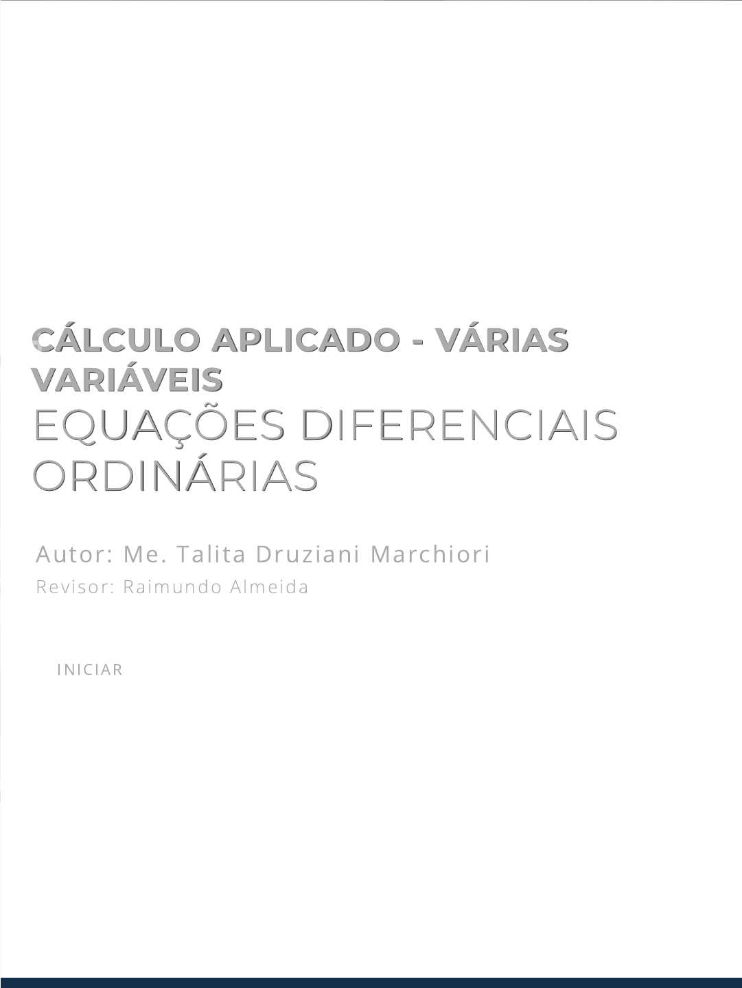 10/04/2023, 11:18 Ead.br https://student.ulife.com.br/ContentPlayer/Index?lc=5FHcSgiJVbjK1vc8wef3Qg%3d%3d&l=%2b5Odv%2fR%2bCIqc%2bd18TWJFyA%3d%3d&c… 1/28 CÁLCULO APLICADO - VÁRIASCÁLCULO APLICADO - VÁRIAS VARIÁVEISVARIÁVEIS EQUAÇÕES DIFERENCIAISEQUAÇÕES DIFERENCIAIS ORDINÁRIASORDINÁRIAS Autor: Me. Talita Druziani Marchiori Revisor : Ra imundo A lmeida IN IC IAR 10/04/2023, 11:18 Ead.br https://student.ulife.com.br/ContentPlayer/Index?lc=5FHcSgiJVbjK1vc8wef3Qg%3d%3d&l=%2b5Odv%2fR%2bCIqc%2bd18TWJFyA%3d%3d&c… 2/28 introdução Introdução Nesta unidade iremos trabalhar com equações diferenciais ordinárias, ou seja, com equações que envolvem derivadas simples de uma única variável independente. Começaremos nos familiarizando com os conceitos de uma equação diferencial. Depois, vamos de�nir quais equações representam a classe das equações separáveis, equações lineares de 1ª ordem e equações homogêneas com coe�cientes constantes de 2ª ordem. Como veremos, equações homogêneas de 2ª ordem são um caso particular de equações lineares de 2ª ordem, logo sua resolução pode ser realizado por um método similar a resolução de equações lineares de 1ª ordem. Esperamos que você aproveite ao máximo este conteúdo. Resolva os exemplos e exercícios e não esqueça de perguntar suas dúvidas. Bons estudos! 10/04/2023, 11:18 Ead.br https://student.ulife.com.br/ContentPlayer/Index?lc=5FHcSgiJVbjK1vc8wef3Qg%3d%3d&l=%2b5Odv%2fR%2bCIqc%2bd18TWJFyA%3d%3d&c… 3/28 Até o momento, dada uma função y = f(x) sabemos determinar sua derivada em relação a x, que é também uma função, e denotamos por dy dx = f ′ (x). Por exemplo, se y = ex 2 a regra da cadeia nos diz que dy dx = 2x ex 2 = 2xy. Nesta unidade, vamos ter uma equação da forma dy dx = 2xy e vamos desejar encontrar qual função f(x) a satisfaça. Toda equação que possui derivadas de uma ou mais variáveis dependentes, em relação a uma ou mais variáveis independentes é denominada equação diferencial. Quando a equação diferencial envolve somente derivadas com relação a uma única variável independente, ela é classi�cada como uma equação diferencial ordinária. Muitas vezes, para simpli�car notação, denotamos as equações diferenciais ordinárias por EDO. As equações, 1. dy dt − 5y = 1; 2. (y − x) dx + 4x dy = 0; Introdução às EquaçõesIntrodução às Equações Diferenciais Ordinárias.Diferenciais Ordinárias. 10/04/2023, 11:18 Ead.br https://student.ulife.com.br/ContentPlayer/Index?lc=5FHcSgiJVbjK1vc8wef3Qg%3d%3d&l=%2b5Odv%2fR%2bCIqc%2bd18TWJFyA%3d%3d&c… 4/28 3. du dx − dv dx = x; 4. d2y dx2 − 2 dy dx + 6y = 0 são exemplos de equações diferenciais ordinárias. A ordem de uma EDO é de�nida como a ordem da derivada de maior ordem. Logo, dy dt − 5y = 1 é de primeira ordem e d2y dx2 − 2 dy dx + 6y = 0 é de segunda ordem. Uma EDO é chamada de linear se pode escrevê-la da forma: an(x) dny dxn + a (n− 1 ) (x) d (n− 1 )y dx (n− 1 ) + . . . + a0(x) y = g(x) onde os coe�cientes a0 , a1, . . . , an e g são funções que dependem somente da variável independente x. Quando a EDO não é linear, chamamo-a de não- linear. Por exemplo, x2 d2y dx2 − 3x dy dx + 4y = 0 é uma equação diferencial ordinária linear de segunda ordem linear onde a2(x) = x2, a1(x) = − 3x , a0(x) = 4 e g(x) = 0. Já a equação diferencial ordinária de terceira ordem d3y dx3 + 2ex d2y dx2 + y dy dx = 0 é não-linear pois o coe�ciente a1 = y é uma função da variável dependente y. Qualquer função f de�nida em um intervalo I, que quando substituída na EDO, reduz a equação a uma identidade é uma solução para EDO no intervalo I. Então, pelo que vimos acima, f(x) = ex2 + 2 e g(x) = ex2 − 10 são soluções para a equação dy dx = 2xy no intervalo (−∞, ∞). Observe que y(x) = ex 2 + C, onde C é uma constante qualquer também é uma solução para dy dx = 2xy no intervalo (−∞, ∞). As soluções f e g, mencionadas no parágrafo acima, são ditas soluções particulares. Já y é conhecida como solução geral, pois abrange todas as soluções da equação diferencial. Com 10/04/2023, 11:18 Ead.br https://student.ulife.com.br/ContentPlayer/Index?lc=5FHcSgiJVbjK1vc8wef3Qg%3d%3d&l=%2b5Odv%2fR%2bCIqc%2bd18TWJFyA%3d%3d&c… 5/28 isso, vemos que uma equação diferencial pode possuir mais que uma solução e que estas soluções se diferem apenas por uma constante. Chamamos de problema de valor inicial todo problema composto por uma equação diferencial e o valor da função procurada em um determinado ponto. Este ponto é denominado valor inicial. Por exemplo, dy dx = 2xy ; y(1) = e é um problema de valor inicial com valor inicial igual a 1. Como acabamos de ver, y(x) = ex 2 + C é uma solução da equação dy dx = 2xy, onde C é uma constante qualquer. Porém, como neste caso, temos a condição de y(1) = e, isso implica que, C = 0. Então, a solução deste problema é dada pela função y(x) = ex2 . Como temos um valor determinado no enunciado do problema, temos que a solução de um problema de valor inicial é única, caso exista. 10/04/2023, 11:18 Ead.br https://student.ulife.com.br/ContentPlayer/Index?lc=5FHcSgiJVbjK1vc8wef3Qg%3d%3d&l=%2b5Odv%2fR%2bCIqc%2bd18TWJFyA%3d%3d&c… 6/28 Nos demais tópicos desta unidade, vamos aprender técnicas para resolver alguns tipos de EDO. reflita Re�ita Frequentemente, desejamos descrever situações através de termos matemáticos, que chamamos de modelos matemáticos. Muitos desses modelos são equações diferenciais. Por exemplo, na engenharia, podemos determinar a de�exão estática de uma viga elástica causada por seu peso ou por uma carga externa, através de uma equação diferencial. Em elasticidade, é visto que o momento de�etor M(x) em um ponto x ao longo da viga está relacionado com a carga por unidade de comprimento w(x) através da equação d2M dx2 = w(x). Utilizando esta eq