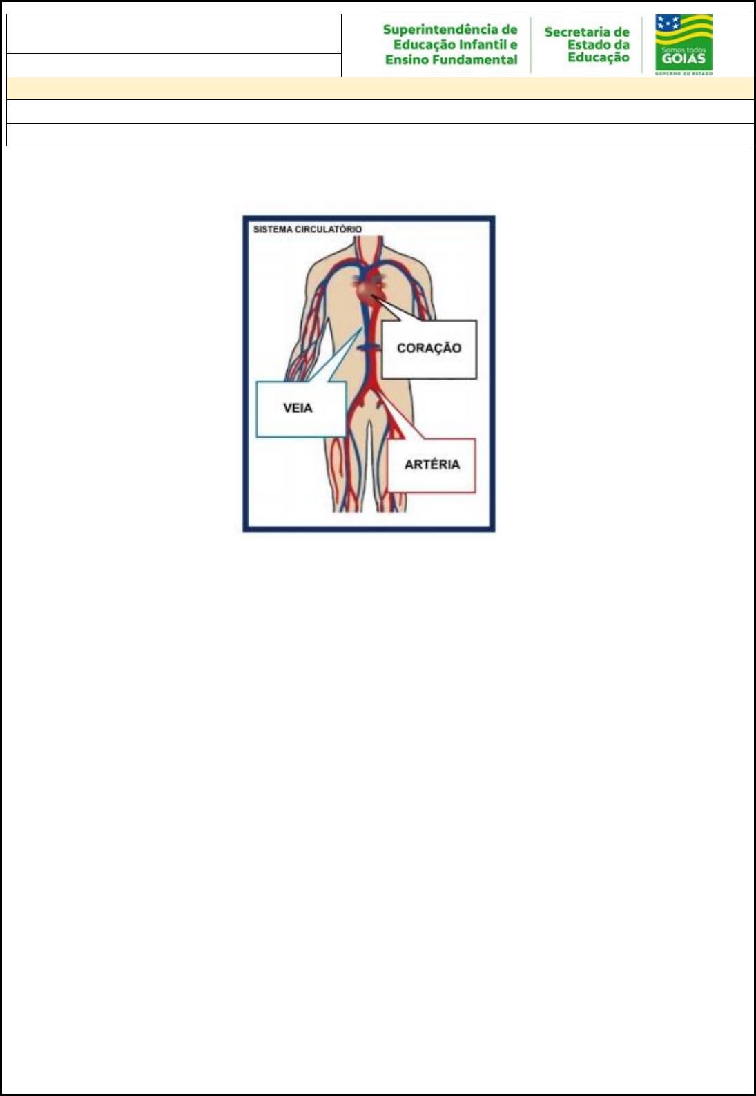 5º ANO CIÊNCIAS DA NATUREZA ATIVIDADE 5 NOME: UNIDADE ESCOLAR: Sistema Circulatório e Digestório Leia o texto Disponível em: https://ensinarhoje.com/sistema-circulatorio-texto-e-atividades/. Acesso em: 28 de fev. de 2021. O sistema circulatório ou cardiovascular, formado pelo coração e vasos sanguíneos, é responsável pelo transporte de nutrientes e oxigênio, absorvidos por meio da alimentação e da respiração respectivamente, para as diversas partes do corpo. Essas substâncias chegam até os órgãos através do sangue. O sangue é bombeado pelo coração, um órgão formado por músculos. É ele quem faz o sangue chegar em cada pedaço do nosso corpo. Já os vasos sanguíneos são estruturas tubulares, presentes em todo o organismo, por onde o sangue circula. Esses vasos formam um grande sistema de tubos que garantem que o sangue bombeado pelo coração siga em direção ao corpo e posteriormente retorne ao coração. 1. Marque a alternativa correta O coração (A) possui paredes formadas por músculos e bombeia o sangue para o corpo. (B) possui paredes formadas por cavidades cheias de ar e bombeia o sangue para o corpo. (C) possui paredes formadas por ramos e bronquíolos e bombeia o sangue para o corpo. 2. Qual a função dos vasos sanguíneos? https://ensinarhoje.com/sistema-circulatorio-texto-e-atividades/ _________________________________________________________________________ _________________________________________________________________________ _________________________________________________________________________ 3. Coloque (V) para alternativa Verdadeira e (F) para alternativa Falsa. ( ) O sangue contém somente o oxigênio obtido a partir da respiração. Além disso, ele abastece cada parte do nosso organismo com essas substâncias. ( ) O sangue contém, entre outras coisas, substâncias como os nutrientes, obtidos a partir da digestão dos alimentos, e o oxigênio, obtido a partir da respiração. Além disso, ele abastece cada parte do nosso organismo com essas substâncias. ( ) O sangue contém apenas nutrientes, obtidos a partir da digestão dos alimentos. Além disso, ele abastece cada parte do nosso organismo com essas substâncias. Leia o texto e responda as atividades 4 e 5. Sistema Digestório é o sistema responsável pela entrada dos alimentos e líquidos que comemos e bebemos, pela transformação desses alimentos, quebrando-os em partes menores, pela absorção dos nutrientes necessários para o organismo e pela eliminação daquilo que não será utilizado por ele. Fazem parte desse sistema os seguintes órgãos: Disponível em: www.brasilescola.uol.com.br. Acesso em: 28 de fev. de 2021. 4. Qual é a função do Sistema Digestório em nosso corpo? __________________________________________________________________________ __________________________________________________________________________ __________________________________________________________________________ http://www.brasilescola.uol.com.br/ 5. Onde começa e termina a digestão? __________________________________________________________________________ __________________________________________________________________________ 6. Pesquise e responda Qual é o maior órgão do sistema digestório e pelo que ele é responsável. __________________________________________________________________________ __________________________________________________________________________ __________________________________________________________________________ __________________________________________________________________________ __________________________________________________________________________