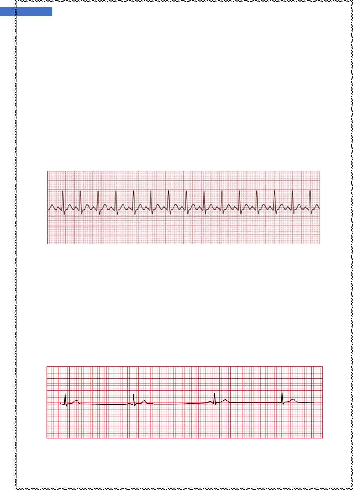 1 Ariane Wilde Rodrigues Pinto – ATM 26 ARRITMIAS: 1) Taquicardia sinusal: • Aumento do número de batimentos. • A frequência é superior a 100 bpm, podendo chegar a 150 em adultos e 180 em crianças. • Pode ocorrer em condições fisiológicas (esforço, emoções) ou patológicas (febre, hipertireoidismo, anemia, insuficiência cardíaca, insuficiência circulatória periférica). • A B1 fica aumentada de intensidade, decorrente da ampla abertura das válvulas atrioventriculares. • Aumenta a força de contração. 2) Bradicardia sinusal: • Consiste na redução do número de batimentos cardíacos. • A frequência é inferior a 60 bpm, podendo ficar entre 40 e 50 bpm. • Pode ocorrer em condições fisiológicas (sono, vagotomia, treinamento físico intenso) ou patológicas (hipotireoidismo, hipertensão intracraniana), e por ação de medicamentos (bloqueadores beta-adrenérgicos, digital, reserpina, amiodarona), assim como disfunção do nó sinusal (doença de Chagas). 2 Ariane Wilde Rodrigues Pinto – ATM 26 3) Arritmia sinusal: • Variação na frequência cardíaca, geralmente relacionada com a respiração. • Na inspiração, aumenta os batimentos. Na expiração, diminui. • Quando realizamos a ausculta, notamos uma irregularidade na sequência de bulhas, que ocorrem ora mais rapidamente, ora mais lentamente. • É observada em condições fisiológicas (crianças e adolescentes) e patológicas (hipertensão intracraniana, cardiopatia aterosclerótica). 4) Extrassístoles: • São sístoles extras. Resultam de estímulos nascidos em focos ectópicos. • Ocorrem um momento antes da sístole normal, e são seguidas de uma pausa compensadora. • Podem ser supraventriculares (estímulo originado nos átrios ou na junção atrioventricular) ou ventriculares (qualquer um dos ventrículos). • Podem se apresentar ISOLADAS ou AGRUPADAS. Quando agrupadas, podem constituir bigeminismo (uma extrassístole após uma sístole; TUM TA TUM TLA), trigeminismo (uma extrassístole após duas normais), em pares ou pareadas (duas a duas entre sístoles normais) ou em salva (conjunto de três sístoles sucessivas. • Podem ser monomórficas (mesma morfologia) ou polimórficas (diferentes morfologias). Extrassístole ventricular isolada na imagem abaixo: 3 Ariane Wilde Rodrigues Pinto – ATM 26 5) Taquicardia paroxística: • Surge um foco ectópico ativo de localização supraventricular ou ventricular), emitindo estímulos em uma frequência entre 150 e 250 bpm, mais usualmente acima de 180 bpm. • Pode ser supraventricular ou ventricular. 6) Fibrilação atrial: • A atividade do nó sinusal é substituída por estímulos da musculatura atrial, em uma frequência de 400 a 600 bpm. • Não existem contrações atriais, somente movimentos irregulares das fibras musculares, prejudicando o enchimento ventricular. • O ritmo cardíaco torna-se completamente irregular, observando-se variações de intensidade e de intervalo de tempo. • Chamada de DELIRIUM CORDIS. • Essa irregularidade é evidente também no pulso radial. • Suas causas são a estenose mitral, a doença de Chagas, a cardiopatia isquêmica e o hipertireoidismo. 4 Ariane Wilde Rodrigues Pinto – ATM 26 7) Bloqueio atrioventricular total: • Também chamado de 3° grau. • Ocorre completa independência entre a atividade atrial e ventricular. • Os estímulos serão originados nas proximidades do nó atrioventricular ou mais abaixo, na musculatura ventricular. Por isso, a frequência é de 30 a 40 bpm. • Ocorre na doença de Chagas e na cardiopatia isquêmica. 8) Bloqueios do ramo: • Ocorrência de retardo (bloqueio incompleto) ou impossibilidade de condução do estímulo (bloqueio completo) no nível dos ramos direito ou esquerdo do feixe de His. • No bloqueio completo, o estímulo é conduzido pela musculatura miocárdica. • Ocorre na doença de Chagas e na cardiopatia isquêmica.