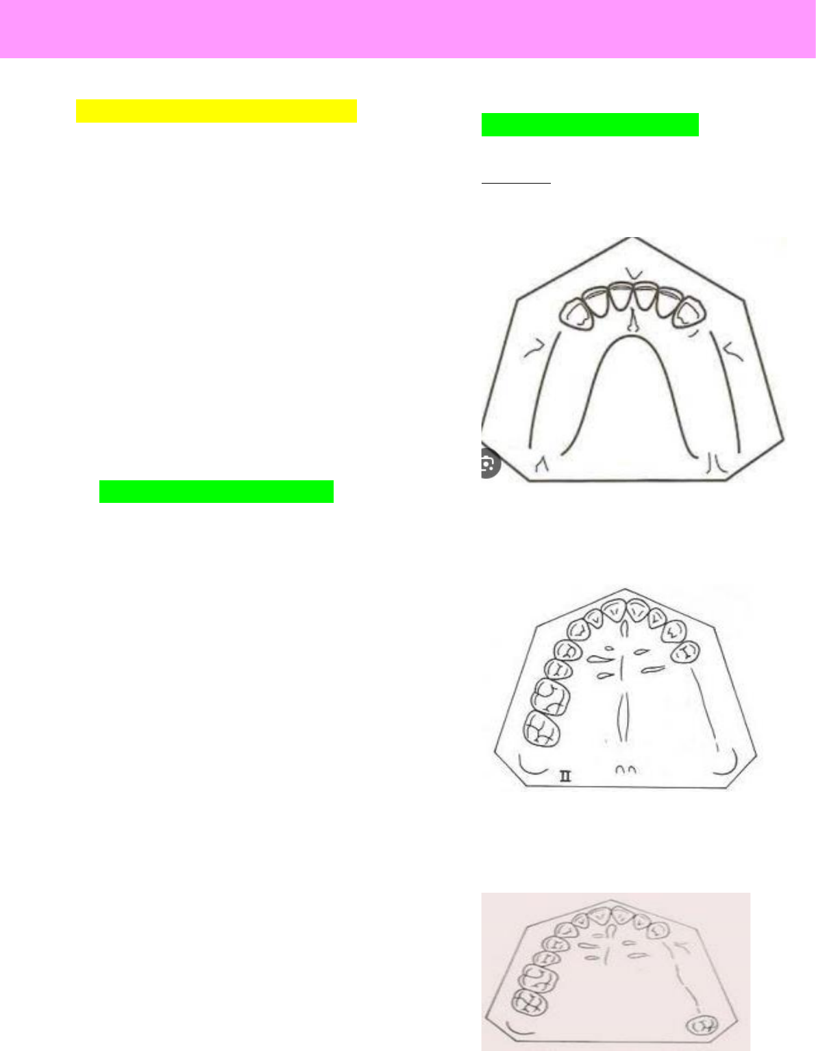 O que deve ter em uma classificação? ➢ Permitir a visualização do tipo de arco edêntulo; ➢ Permitir a diferenciação entre os tipos de suporte; ➢ Ser universalmente aceita; ➢ Ser lógica e fácil de memorizar; ➢ Caracterizar onde o osso alveolar vai receber forças; ➢ Permitir discussão e compreensão do tratamento; ➢ Orientar o preparo de boca para a recepção da PPR. BASES PARA A CLASSIFICAÇÃO ➢ Topografia: -quantidade e localização dos espaços protéticos em relação aos elementos dentários remanescente; ➢ Biomecânica: -leva em consideração a atuação das forças da prótese com a mucosa e com os elementos dentários -posição dos retentores diretos e necessidade ou não dos retentores indiretos. ➢ Fisiológica: -como o osso alveolar irá receber as cargas mastigatórias CLASSIFICAÇÃO DE KENNEDY 4 grupos: ➢ CLASSE I = desdentado posterior bilateral ➢ CLASSE II = desdentado posterior unilateral ➢ CLASSE III = desdentado intercalar (não especifica se é anterior ou posterior) CLASSIFICAÇÃO - PPR ➢ CLASSE IV = desdentado anterior (a ausência de dentes anteriores deve cruzar a linha media, ser desdentado dos dois lados da linha média) REGRAS DE APPLEGATE 1. A classificação deve ser feita após todas as extrações; 2. Se o terceiro molar estiver ausente ou não for substituído, não será considerado na classificação; 3. Se houver terceiro molar e for idealizado como suporte, deve ser incluído na classificação; 4. Se o segundo molar estiver ausente e não for substituído, por exemplo, pela ausência do antagonista, não será considerado na classificação; 5. A área ou áreas posteriores regem a classificação; 6. Outras áreas edentadas, além das áreas utilizadas para a classificação, são denominadas “modificações ou subdivisões"; 7. A extensão da modificação não é considerada, mas apenas o número de áreas edentadas; 8. Não existem modificações no arco de classe IV CLASSIFICAÇÕES DAS CLASSES I,II E III ● Modificação 1- Quando houver um só espaço suplementar devido, por exemplo, à perda do incisivo central, do lateral ou do canino; ● Modificação 2- Quando houver dois espaços separados por dentes; ● Modificação 3- Quando houver três espaços separados por dentes; ● Modificação 4- Quando houver quatro espaços protéticos separados por dentes ➢ CONECTORES MAIORES ➢ CONECTORES MENORES ➢ RETENTORES DIRETOS ➢ RETENTORES INDIRETOS ➢ SELAS E DENTES ARTIFICIAIS ELEMENTOS CONSTITUINTES DA PPR