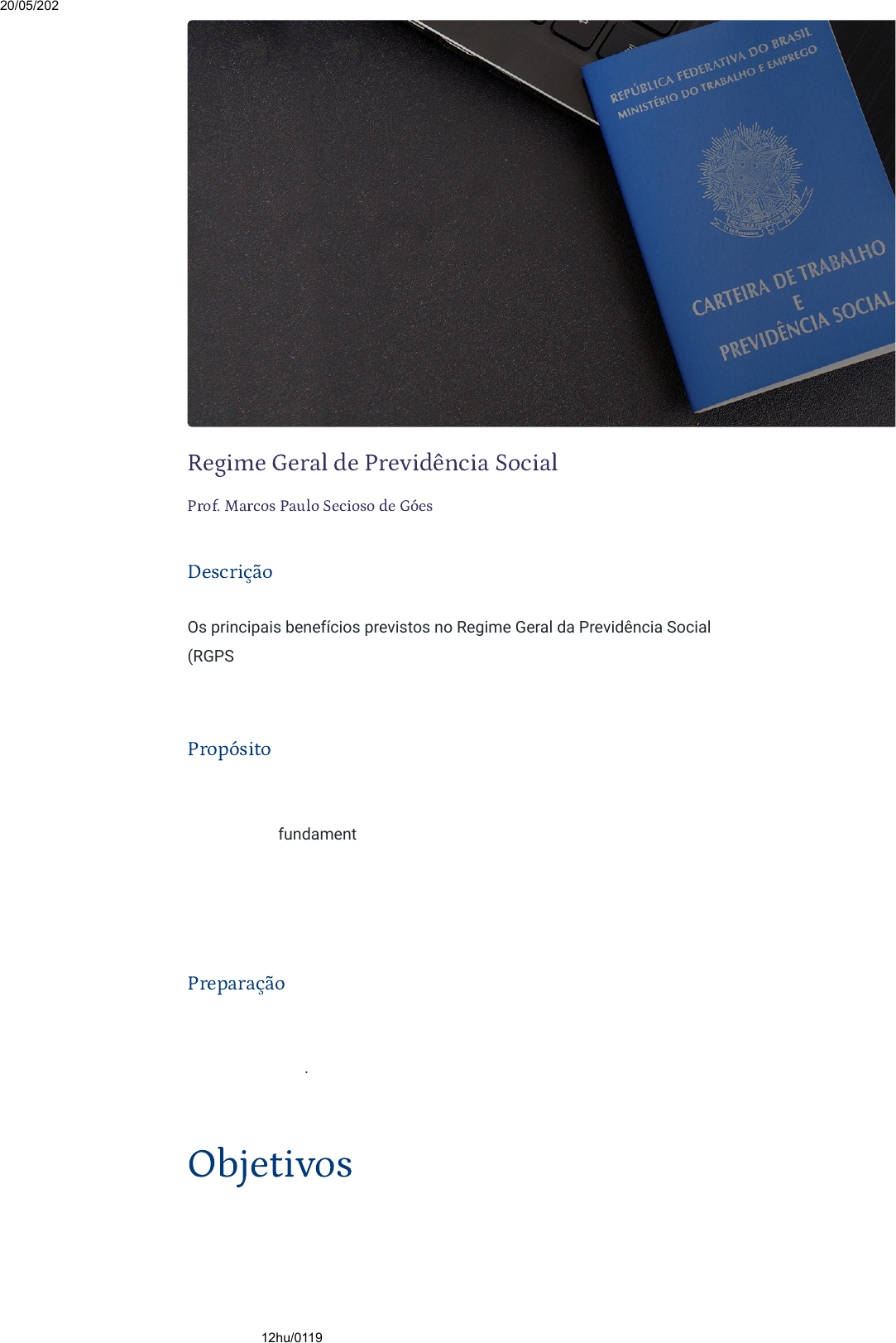 Regime Geral de Previdência Social Prof. Marcos Paulo Secioso de Góes Descrição Os principais benefícios previstos no Regime Geral da Previdência Social (RGPS), a relevância dos processos administrativo, judicial, previdenciário e a análise dos principais crimes previdenciários. Propósito Compreender o funcionamento do Regime Geral da Previdência Social (RGPS) é de fundamental importância para um bom planejamento (visão programática para obtenção de benefícios futuros) e para a salvaguarda de direitos no caso de infortúnios que possam levar à situação de incapacidade laborativa. Preparação Antes de iniciar o estudo, tenha em mãos a Constituição da República e a Lei n. 8213/91. Objetivos 20/05/2024, 14:57 Regime Geral de Previdência Social https://stecine.azureedge.net/repositorio/00212hu/01193/index.html?brand=estacio# 1/67 Módulo 1 Benefícios previstos no Regime Geral da Previdência Social Identificar os principais benefícios previstos no Regime Geral de Previdência Social. Módulo 2 Processo administrativo, judicial e previdenciário Descrever os processos administrativo, judicial e previdenciário. Módulo 3 Crimes previdenciários Reconhecer os principais crimes previdenciários. Introdução Diante das inúmeras possibilidades vivenciadas por alguém ao longo da vida laborativa, é importante conhecer o sistema de proteção social oferecido pelo Regime Geral da Previdência Social (RGPS), um dos maiores sistemas do mundo, que prevê as espécies de benefícios disponibilizados para a maioria dos trabalhadores brasileiros. Todos os que estão vinculados à 20/05/2024, 14:57 Regime Geral de Previdência Social https://stecine.azureedge.net/repositorio/00212hu/01193/index.html?brand=estacio# 2/67 iniciativa privada (e mesmo alguns detentores de cargos públicos) têm, de alguma forma, interesse e possibilidade de vinculação ao RGPS e de auferir suas benesses. Questões relacionadas à parte instrumental processual também têm sua relevância, pois a demanda por um benefício previdenciário deverá enfrentar a via administrativa e, a depender do resultado, também a via judicial. Em ambos os casos, normas processuais definirão a condução do processo de concessão e revisão de benefícios; logo, conhecê-las poderá ser essencial na tarefa de provar o direito buscado. Além disso, uma incursão no campo da tutela penal do sistema previdenciário evidencia aquilo que o legislador elegeu como conjunto de condutas essencialmente reprováveis, que deverão ser objeto de persecução, prevenção e punição para que o sistema opere da forma mais regular possível. Sobre esses aspectos do Direito Previdenciário (benefícios em espécie, questões processuais e tutela penal), nós nos debruçaremos, ao longo deste tema, valendo-nos da legislação específica e de aportes encontrados na obra Manual de Direito Previdenciário (CASTRO & LAZZARI, 2018) e nos livros Direito Previdenciário (ABREU, 2016) e Prática Previdenciária (OLIVEIRA, 2016). 20/05/2024, 14:57 Regime Geral de Previdência Social https://stecine.azureedge.net/repositorio/00212hu/01193/index.html?brand=estacio# 3/67 1 - Benefícios previstos no Regime Geral da Previdência Social Ao �nal deste módulo, você será capaz de identi�car os principais benefícios previstos no Regime Geral de Previdência Social. Aposentadoria por tempo de contribuição (ATC) Na própria nomenclatura desta espécie de aposentadoria, insere-se uma ideia que adveio de uma mudança de perspectiva previdenciária introduzida pela Emenda Constitucional (EC) 20/1998: tempo de serviço x tempo de contribuição. Até a EC 20/98, o sistema era voltado para a garantia de uma aposentadoria após certo tempo de serviço de seus segurados. Todavia, com a necessidade de promover um equilíbrio entre receitas e despesas, o paradigma começou a transformar-se em direção a uma nova ideia: aposentadoria após certo tempo de contribuição. A ideia inicial já na EC 20/1998 era acumular tempo de contribuição e idade. Porém, não houve aprovação do congresso à época. Para compensar, o resultado foi a criação do Fator Previdenciário pela Lei 9.876/99, cuja jurisprudência dominante (inclusive STF) entende como constitucional. Quais eram os requisitos (antes da EC 103/2019)? 1. 35 anos de contribuição [serviço?] para homens / 30 anos de contribuição [serviço?] para mulheres; 2. Carência de 180 meses de contribuição. A eventual perda da qualidade de segurado não influencia na concessão de aposentadorias, exceto a por invalidez (art. 3º e seu § 1º da Lei 10.666/03). Isso significa que, se a pessoa completou os requisitos de contribuição numa época e veio a completar a idade depois, quando não tinha mais qualidade de segurado, será concedida a aposentadoria. Com as mudanças advindas da Reforma Constitucional de 2019 (EC 103/19), foi implementado o que não tinha sido aprovado na EC/1998 (idade mínima), ou seja, 65 anos de idade para homens e 62 anos de idade para mulheres. A carência passa a ser de 240 contribuições para homens e é mantida em 180 contribuições para mulheres. 20/05/2024, 14:57 Regime Geral de Previdência Social https://stecine.azureedge.net/repositorio/00212hu/01193/index.html?brand=estacio# 4/67 Na prática, com a Reforma da Previdência de 2019, deixam de existir modalidades diferenciadas de aposentadoria por tempo de contribuição (ATC), gerando uma modalidade de aposentadoria única com critérios de idade e carência, semelhante à antiga APID, aumentando-se a idade mínima da mulher de 60 para 62 e as contribuições do homem de 180 para 240. Para quem já estava no sistema em 12/11/2019 (dia anterior à publicação da EC 103/2019), há regras de transição previstas na Reforma da Previdência. [Serviço?] A questão do tempo de contribuição x tempo de serviço é colocada com interrogação, porque o que se vê é uma transição que se dá ao longo do temp