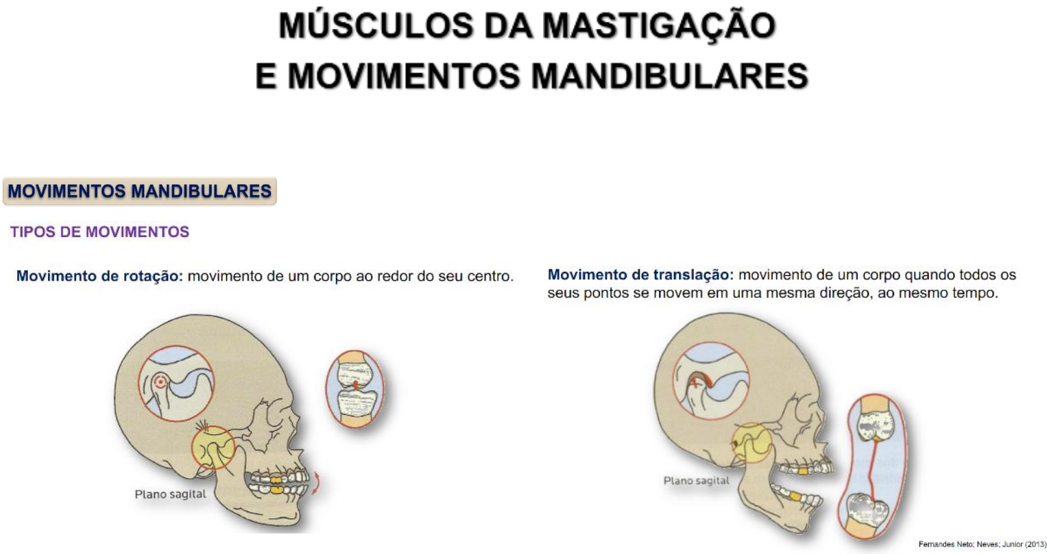 MÚSCULOS DA MASTIGAÇÃO OSSO HIÓIDE ESTERNOCLEIDOMASTÓIDEO TRAPÉZIO INTRÍNSECOS EXTRÍNSECOS GENIOGLOSSO HIOLOGLOSSO ESTILOGLOSSO PALATOGLOSSO Músculos da mastigação Músculo Origem Inserção Função Masseter Margem inferior do zigomático (superficial); margem inferior do arco zigomático (profunda) Tuberosidade massetérica Eleva a mandíbula Temporal Fossa temporal Processo coronoide Eleva, retrai e posiciona a mandíbula Pterigoideo medial Fossa pterigoidea Tuberosidade pterigoidea Eleva a mandíbula e ajuda na lateralidade Pterigoideo lateral Superfície infratemporal do osso esfenoide Disco articular (posterior); Fóvea pterigoidea (inferior) Protrai a mandíbula, quando contrai só de um lado realiza lateralidade Músculos supra-hióideos Músculo Origem Inserção Função Digástrico Processo mastoide do osso temporal Fossa digástrica Retrai a mandíbula Estilo-hioideo Processo estiloide Osso hioide Puxa o osso hioideo para cima e para trás Milo-hioideo Linha milo hioidea Osso hioide Eleva o assoalho da boca e da língua, protrai o hioideo ou retrai a mandíbula Gênio-hioideo Tubérculos genianos Osso hioide Protrai o hioideo ou retrai a mandíbula Músculos da língua Músculo Origem Inserção Função Intrínsecos Vertical Língua Língua Dão formas e posições variadas à língua Longitudinal Transversal Extrínsecos Estiloglosso Processo estiloide Língua Retrai e levanta a língua Genioglosso Espinha geniana Língua Protrai e abaixa a língua Hiologlosso Corno maior e corpo do osso esfenoide Língua Abaixa e retrai a língua Palatoglosso Palato Língua Levanta a língua, se ela estiver fixa ele abaixa o palato mole Músculos da expressão facial Músculo Origem Inserção Função Orbicular da boca Espinha nasal Sulco labiomentoniano Cerra os lábios para apreensão dos alimentos, para assobiar; comprime contra os dentes; protai; fecha a boca Levantador do lábio superior Margem infraorbital Lábio superior Levanta o lábio superior Levantador do lábio sup. e asa do nariz Processo frontal da maxila Lábio superior Levanta o lábio superior e a asa do nariz (dilata a narina) Zigomático menor Osso zigomático Lábio superior Levanta o lábio superior Levantador do ângulo da boca Fossa canina Ângulo da boca Levanta o ângulo da boca Zigomático maior Osso zigomático Ângulo da boca Responsável pelo riso, ele puxa pra cima e fora o ângulo da boca Risório Fáscia massetérica Ângulo da boca Retrai o ângulo da boca; pode produzir covinhas durante a contração Bucinador Região molar da mandíbula e maxila Ângulo da boca Distende a bochecha na abertura e fechamento da boca; colabora na mastigação; age no sopro e sucção Abaixador do ângulo da boca Base da mandíbula Ângulo da boca Abaixa o ângulo da boca Abaixador do lábio inferior Acima do abaixador do ângulo da boca Lábio inferior Abaixa o lábio inferior Mentoniano Fossa mentoniana Pele do mento Enruga a pele do mento e leva o lábio inferior para frente Platisma Cruza a clavícula Região peitoral Contrai a pele do pescoço Orbicular do olho Quase todo cutâneo Pálpebras e pele periorbital Fecha as pálpebras e as comprime contra o olho (abre e fecha o olho) Occiptofrontal Aponeurose epicrânia Pele do supercílio; região occipital Puxa a pele da fronte para cima e eleva o supercílio (provoca rugas na glabela) Prócero Osso nasal Pele da glabela Puxa a pele da glabela para baixo Corrugador do supercílio Margem supraorbital do frontal Extremidade lateral do supercílio Puxa o supercílio lateralmente Nasal Eminência canina Dorso do nariz Comprime (parte transversa) a narina e dilata (parte alar) a narina para melhor respiração