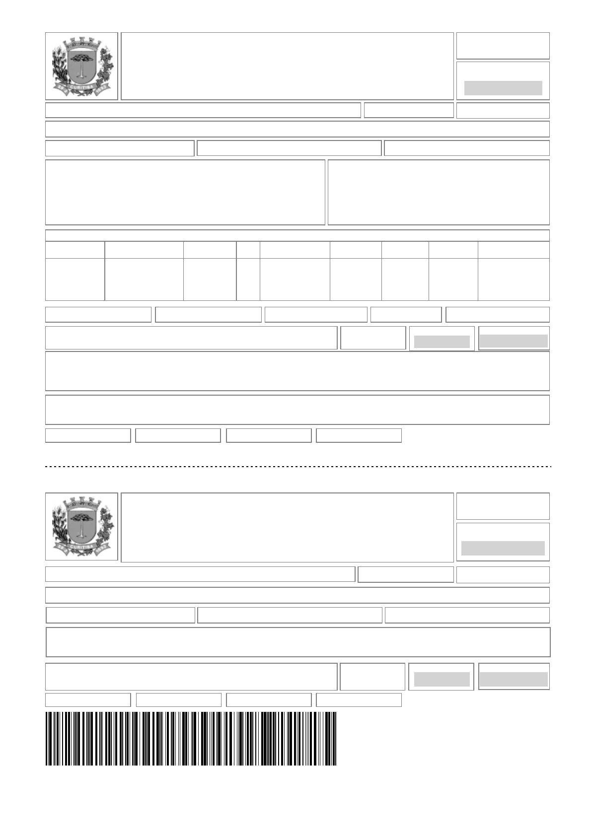IMPOSTO SOBRE SERVIÇOS DOCUMENTO DE ARRECADAÇÃO MUNICIPAL - DAM SECRETARIA MUNICIPAL DE FINANÇAS PREFEITURA MUNICIPAL DE CURITIBA VIA CONTRIBUINTE 22/01/2024 VENCIMENTO FRAMETECH EXECUCAO DE OBRAS LTDA - ME CONTRIBUINTE 08.726.156/0001-66 CNPJ 07 02 0556342-8 INSCRIÇÃO MUNICIPAL R.MESSIAS DE PAULA PRESTES, 000063 - XAXIM - CEP: 81830-340 - CURITIBA/PR LOCALIZAÇÃO 12/2023 REFERÊNCIA NORMAL (NFS-e) TIPO LANÇAMENTO 41 301 036 712 5 CÓDIGO DE PROCESSAMENTO Prezado Contribuinte, Dúvidas ou incorreções entrar em contato com o plantão fiscal através dos telefones nº (41) 3350-8602, 3350-8604, 3350-8601 ou dirigir-se ao Dpto. de Rendas Mobiliárias-ISS, localizado na Av Cândido Abreu, 817, Bairro Centro Cívico, nesta Capital. PREFEITURA MUNICIPAL DE CURITIBA Sobre os débitos vencidos serão cobrados: * Multa: 0,33% ao dia, limitado a 10% * Juros: 1% ao mês ou fração de mês * Correção Monetária (IPCA) Conforme Legislação em vigor. 2.691,220,000,000,002.691,22---0,0053.824,73ISS NORMAL VALOR ATUALIZADO (R$) MULTA (R$) CORREÇÃO MONETÁRIA(R$) JUROS (R$) VALOR ORIGINÁRIO (R$) ALÍQ. TOTAL DAS DEDUÇÕES (R$) RECEITA DECLARADA (R$) TRIBUTO DEMONSTRATIVO DOS VALORES 53.824,73 RECEITA TRIBUTÁVEL DECLARADA 2.691,22 VALOR ORIGINÁRIO DO IMPOSTO 0,00 CORREÇÃO MONETÁRIA + JUROS +MULTA 0,00 VALOR JÁ PAGO 10/01/2024 DATA DA EMISÃO 22/01/2024 RECEBER ATÉ MAURICIO PAULINO DO NASCIMENTO OBSERVAÇÕES DO CONTRIBUINTE O PAGAMENTO DEVERÁ SER EFETUADO EM QUALQUER AGÊNCIA BANCÁRIA CONVENIADA À PREFEITURA, OU NAS CASAS LOTÉRICAS DA CAIXA ECONÔMICA FEDERAL. 81680000026-6 91221319202-0 40122413010-4 36712500003-7 PREFEITURA MUNICIPAL DE CURITIBA SECRETARIA MUNICIPAL DE FINANÇAS DOCUMENTO DE ARRECADAÇÃO MUNICIPAL - DAM IMPOSTO SOBRE SERVIÇOS 22/01/2024 VENCIMENTO VIA BANCO 07 02 0556342-8 INSCRIÇÃO MUNICIPAL FRAMETECH EXECUCAO DE OBRAS LTDA - ME CONTRIBUINTE 08.726.156/0001-66 CNPJ 12/2023 REFERÊNCIA R.MESSIAS DE PAULA PRESTES, 000063 - XAXIM - CEP: 81830-340 - CURITIBA/PR LOCALIZAÇÃO NORMAL (NFS-e) TIPO LANÇAMENTO 41 301 036 712 5 CÓDIGO DE PROCESSAMENTO - Não receber valor diferente ao impresso no campo Total a Recolher - Não receber após a data impressa no campo Receber Até 10/01/2024 DATA DA EMISÃO MAURICIO PAULINO DO NASCIMENTO 22/01/2024 RECEBER ATÉ 40122413010-481680000026-6 91221319202-0 36712500003-7 2.691,22 TOTAL A RECOLHER 2.691,22 TOTAL A RECOLHER 0,00 DESCONTO INCENTIVOS/COMPENSAÇÃO