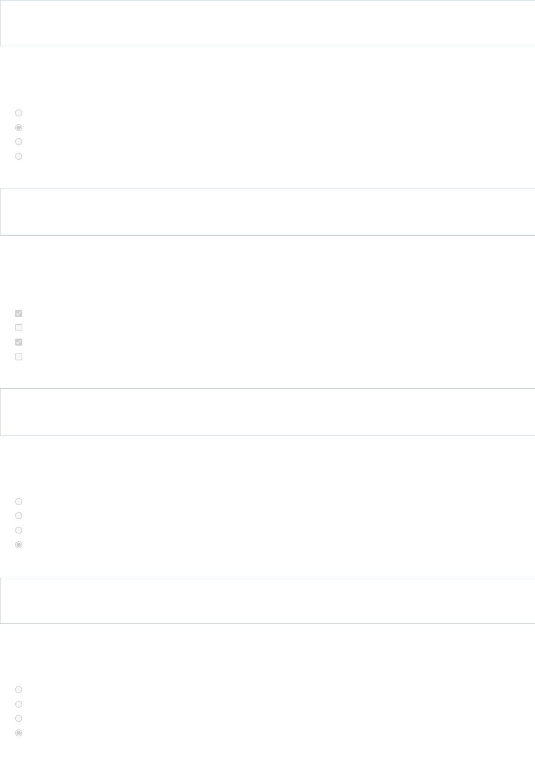 Question 16 Incorrect 0 points out of 1 Question 17 Correct 1 points out of 1 Question 18 Correct 1 points out of 1 Question 19 Correct 1 points out of 1 In which architecture is the need to control application traffic becoming increasingly relevant? Select one: Cloud-based architecture Distributed architecture Traditional client-server architecture Peer-to-peer architecture In addition to central processing unit (CPU) and memory usage, what are two other key performance parameters you should monitor on FortiGate? (Choose two.) Select one or more: Number of active VPN tunnels Number of local users and user groups Number of SSL sessions Number of days for licenses to expire Which action can you take to improve the security rating provided by the Fortinet Security Fabric? Select one: Upgrade FortiGate to the latest mature version available. Create a configuration revision or back up the configuration. Run the integrity check on all end devices. Apply one or more of the suggested best practices. Which category of services does FortiGuard Labs provide as part of FortiGuard Security Services? Select one: Network segmentation and access control Endpoint protection and vulnerability management Data encryption and secure communications Advanced threat intelligence and prevention 23/05/2024, 01:55 FortiGate 7.4 Operator Exam: Attempt review https://training.fortinet.com/mod/quiz/review.php?attempt=19068929&cmid=485066 5/11
