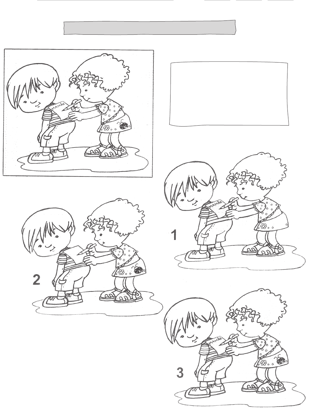 DC3Datas comemorativas NOME: DATA: / / QQUUAALL ÉÉ OO PPAARR?? AS CRIANÇAS ESTÃO TENTANDO ESCREVER UMA MENSAGEM PARA A MAMÃE. MAS... APENAS UM DESENHO É IGUAL AO MODELO. DESCUBRA QUAL! DIA DAS MÃES - 2º DOMINGO DE MAIO CA_Datas Comemorativas_4C(4 anos)2_Layout 1 28/01/15 08:36 Page 3
