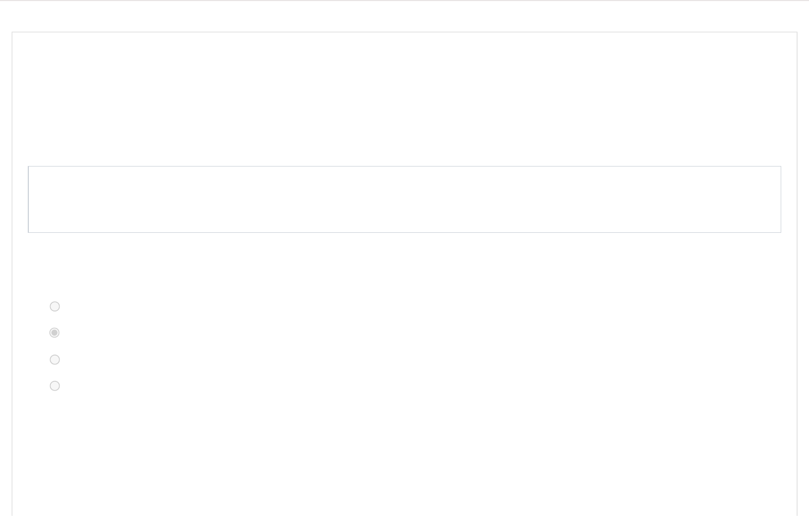 Iniciado em quinta, 25 abr 2024, 13:17 Estado Finalizada Concluída em quinta, 25 abr 2024, 13:30 Tempo empregado 13 minutos 15 segundos Avaliar 10,00 de um máximo de 10,00(100%) Questão 1 Correto Atingiu 1,00 de 1,00 Qual é a técnica de avaliação de desempenho que envolve a coleta de feedback de várias fontes? a. Autoavaliação b. Avaliação 360 graus c. Avaliação do gerente d. Avaliação de pares Questão 2 Correto Atingiu 1,00 de 1,00 Questão 3 Correto Atingiu 1,00 de 1,00 O que é mentoring? a. O processo de aprendizagem em que a pessoa não tem orientação b. Um membro experiente da equipe orientando um membro menos experiente e ajudando a desenvolver suas habilidades c. Apenas assistindo outra pessoa fazendo uma atividade d. Um treinador externo ajudando a equipe a entender e resolver conflitos mais profundos Como a avaliação de desempenho pode ajudar a identificar as habilidades que precisam ser desenvolvidas? a. Não é possível identificar habilidades que precisam ser desenvolvidas por meio da avaliação de desempenho b. Fornecendo uma lista de habilidades que precisam ser desenvolvidas sem uma análise clara c. Analisando as avaliações de desempenho dos membros da equipe e identificando as habilidades que precisam ser desenvolvidas para melhorar o desempenho. d. Avaliando somente as habilidades que já foram desenvolvidas pela equipe Questão 4 Correto Atingiu 1,00 de 1,00 Questão 5 Correto Atingiu 1,00 de 1,00 Qual é a primeira etapa para garantir que o treinamento e a capacitação sejam eficazes? a. Fornecer treinamento e capacitação b. Avaliar o treinamento e a capacitação c. Criar um plano de treinamento e capacitação d. Identificar as necessidades de treinamento e capacitação O que é importante ao fornecer feedback construtivo? a. O feedback deve ser objetivo e construtivo, e deve fornecer orientação sobre como desenvolver habilidades específicas. b. O feedback deve ser dado publicamente, para que todos os membros da equipe possam aprender com ele. c. O feedback deve ser subjetivo e pessoal, e deve fornecer críticas gerais sobre o desempenho do membro da equipe. d. O feedback deve ser vago e ambíguo, para que o membro da equipe possa interpretá-lo da maneira que preferir. Questão 6 Correto Atingiu 1,00 de 1,00 Qual é o objetivo da avaliação do treinamento e capacitação? a. Avaliar a eficácia do treinamento e da capacitação por meio de avaliações de desempenho, feedback da equipe e outros indicadores. b. Garantir que os membros da equipe compreendam claramente os objetivos e as expectativas do treinamento. c. Atualizar o plano de treinamento e capacitação com base nos resultados da avaliação e nas mudanças nas necessidades da organização. d. Fornecer treinamento e capacitação de acordo com o plano criado. Questão 7 Correto Atingiu 1,00 de 1,00 Qual é a técnica de avaliação de desempenho em que os membros da equipe avaliam o desempenho de seus colegas de trabalho e fornecem feedback construtivo? a. Avaliação 360 graus b. Autoavaliação c. Avaliação de pares Questão 8 Correto Atingiu 1,00 de 1,00 d. Avaliação do gerente O que envolve a avaliação 360 graus? a. Os membros da equipe avaliam seu próprio desempenho b. O gerente avalia o desempenho da equipe c. Os membros da equipe avaliam o desempenho de seus colegas de trabalho d. Coleta de feedback de várias fontes, incluindo colegas de trabalho, subordinados, gerentes e clientes. Questão 9 Correto Atingiu 1,00 de 1,00 Questão 10 Correto Atingiu 1,00 de 1,00 O que são metas e objetivos? a. São ferramentas que permitem avaliar o desempenho de um membro da equipe em uma escala numérica ou descritiva. b. São entrevistas realizadas pelo gerente com o membro da equipe. c. São listas de verificação úteis para avaliar o desempenho em áreas específicas, como atendimento ao cliente, habilidades de comunicação e gerenciamento de tempo. d. São pontos de referência que podem ser usados para avaliar o desempenho e podem ser usados para criar um plano de melhoria do desempenho. O que é autoaprendizagem? a. Um treinador externo ajudando a equipe a entender e resolver conflitos mais profundos b. Um membro experiente da equipe orientando um membro menos experiente e ajudando a desenvolver suas habilidades c. Um membro da equipe aprendendo novas habilidades por conta própria, por meio de livros, cursos on-line, etc. d. Apenas assistindo outra pessoa fazendo uma atividade ◄ 4.2 Desenvolvimento de habilidades Seguir para... Avaliação do Curso ► https://moodle.ifrs.edu.br/mod/page/view.php?id=386850&forceview=1 https://moodle.ifrs.edu.br/mod/feedback/view.php?id=386854&forceview=1