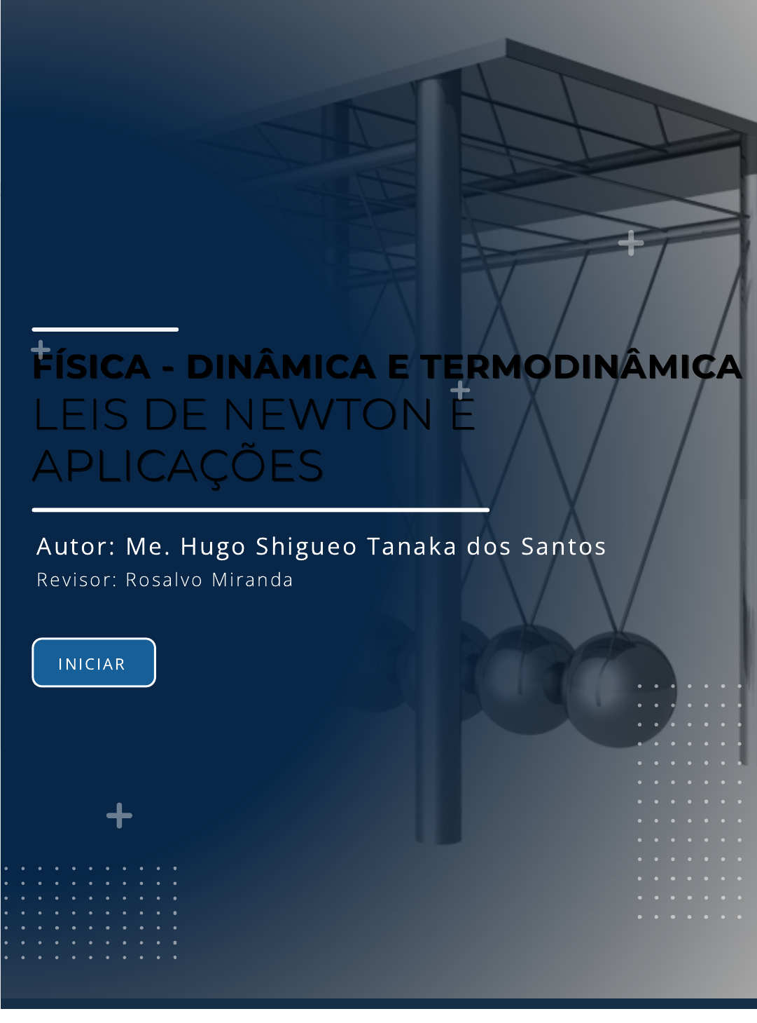 FÍSICA - DINÂMICA E TERMODINÂMICAFÍSICA - DINÂMICA E TERMODINÂMICA LEIS DE NEWTON ELEIS DE NEWTON E APLICAÇÕESAPLICAÇÕES Autor: Me. Hugo Shigueo Tanaka dos Santos Revisor : Rosa lvo Miranda IN IC IAR introdução Introdução Diferentemente da Cinemática, que é o campo da Física que estuda os movimentos, sem se preocupar com as causas, o estudo da Dinâmica se preocupa em analisar as causas dos movimentos. Uma das pessoas que se dedicou ao estudo dos movimentos e suas causas foi o físico, matemático, alquimista e astrônomo inglês Isaac Newton (1643-1727). Dentre outras coisas, Newton é conhecido por suas três leis fundamentais da dinâmica, as quais estudaremos nesta unidade. Para tanto, compreenderemos melhor o conceito de força, juntamente com os princípios da dinâmica clássica. Depois, aprofundaremos mais nossos conhecimentos da mecânica newtoniana. A seguir, veremos alguns aspectos importantes que devem ser notados durante nossos estudos das Leis de Newton e suas aplicações. Por �m, veremos como a mecânica clássica pode ser aplicada em situações do dia a dia. Bons estudos! A determinação do tipo do movimento que acontecerá devido a algumas circunstâncias físicas é o problema fundamental da dinâmica (NUSSENZVEIG, 2002). Os princípios básicos da dinâmica foram postulados por Galileu Galilei (1564-1642) e por Isaac Newton (1643-1727). Em nossos estudos focaremos nas leis da dinâmica newtoniana ou, simplesmente, leis de Newton. Princípios da DinâmicaPrincípios da Dinâmica Intuitivamente, dizemos que os movimentos são causados pelo que chamamos de “forças”. Para Nussenzveig (2002), nossa ideia comum de forças está relacionada ao esforço muscular. Exercendo esse tipo de “força”, sabemos que somos capazes de alterar o estado de movimento dos objetos. A princípio vamos nos limitar a discutir forças em objetos que possuem dimensões desprezíveis. Os quais chamaremos de partículas. Ao dizer que uma partícula está em repouso com relação a um referencial, signi�ca que está parada em relação a esse referencial. Por exemplo, neste momento você está em repouso em relação ao dispositivo no qual lê esse texto. Mas você está em repouso em relação ao Sol? Para seguirmos com a discussão, de maneira introdutória, vamos tratar de forças em equilíbrio . Isso é, quando nossa partícula considerada está em repouso em relação ao referencial. Ou seja, nossa partícula está em equilíbrio em relação a um determinado sistema de referências (NUSSENZVEIG, 2002). A �m de facilitar nosso pensamento, vamos considerar nosso referencial como sendo o laboratório no qual são feitos os experimentos. Forças de Contato Figura 1.1 - Galileu Galilei Fonte: Dmitry Rozhkov / Wikimedia Commons. Figura 1.2 - Isaac Newton Fonte: Yeenosaurus /Wikimedia Commons. Conforme é apontado por Young et al. (2016), as forças de contato surgem quando há o contato direto entre dois corpos. Por exemplo: ao puxar ou empurrar um bloco com uma certa massa m. Conforme a Figura 1.3. Dessa forma, podemos exempli�car as forças de contato em três tipos mais comuns. São: força normal, força de atrito e força de tensão. Força Normal Quando um determinado objeto está em contato com uma certa superfície e em contato com ela, surge uma força que equilibra a ação da força peso sobre o objeto. Essa força de reação à força peso é chamada de força normal , porque ela sempre é normal à superfície de contato. Isto é, essa força sempre está perpendicular à superfície de contato, qualquer seja o ângulo de inclinação da superfície (Figura 1.4). Figura 1.3 - Exemplos de forças de contato ao empurrar ou puxar um objeto Fonte: Young et al. (2016, p. 111). É muito importante notar que independentemente do ângulo do plano no qual o bloco está apoiado, a força normal sempre é perpendicular a essa superfície. Força Atrito Em contraste à força normal, existe a força de atrito , que é exercida pela superfície sobre o objeto e está orientada paralelamente à própria superfície. Tal força age no sentido oposto do deslocamento (YOUNG et al ., 2016). Dessa forma, a força de atrito é uma força que resiste ao movimento (Figura 1.5). Discutiremos melhor a natureza do atrito mais adiante. Figura 1.4 - A força normal é uma reação ao contato do objeto com uma certa superfície. Ou seja, a superfície exerce uma força (perpendicular a ela) sobre o objeto. Fonte: Young et al. (2016, p. 111). Veja as diferenças entre os coe�cientes de atrito quando dois corpos de materiais distintos são atritados: Quadro 1.1 - Diferentes coe�cientes de atrito entre diferentes materiais. Fonte: Young et al . (2016, p. 158). Figura 1.5 - A força de atrito é orientada paralela à superfície de contato e �ca no sentido contrário ao deslocamento Fonte: Young et al. (2016, p. 111). Materiais Coe�ciente de atrito estático Coe�ciente de atrito cinético Aço com aço 0,74 0,57 Alumínio com aço 0,61 0,47 Borracha com concreto (seco) 1,0 0,8 Vidro com vidro 0,94 0,40 Te�on com Te�on 0,04 0,04 μe μc Note como o coe�ciente de atrito diminui quando os blocos possuem movimento relativo entre si (atrito cinético). Note também que, quanto mais rugosos são os materiais, maior é o coe�ciente de atrito. Força de Tensão Ao amarrar uma corda em um objeto e exercer uma força para puxá-lo, a força que a corda esticada exerce sobre o objeto é chamada de força de tensão (YOUNG et al ., 2016). Essa força não aparece necessariamente apenas em cordas ou cabos, ela também pode aparecer em objetos mais “rígidos”, como um pedaço de madeira, uma barra de ferro ou similares. A Figura 1.6 representa gra�camente a força de tensão. A força de tensão é muito importante no estudo da estática dos corpos. Forças que Agem a Distância Além das forças de contato, existem forças que atuam quando os corpos estão separados por