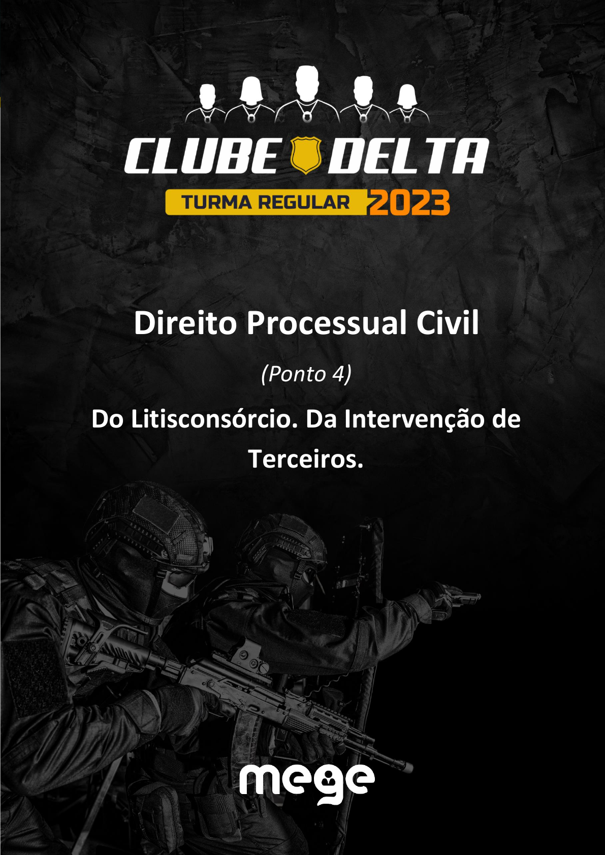 CPF: 860.542.154-18 PACHEGO GONÇALVES | 9999999999 | alesantosf2020@gmail.com | CPF: 860.542.154-18 É proibida a reprodução deste material sem a devida autorização, sob pena da adoção das medidas cabíveis na esfera cível e penal. 1 Direito Processual Civil (Ponto 4) Do Litisconsórcio. Da Intervenção de Terceiros. CPF: 860.542.154-18 PACHEGO GONÇALVES | 9999999999 | alesantosf2020@gmail.com | CPF: 860.542.154-18 É proibida a reprodução deste material sem a devida autorização, sob pena da adoção das medidas cabíveis na esfera cível e penal. 2 CURSO MEGE Site para cadastro: https://loja.mege.com.br/ Celular / Whatsapp: (99) 982622200 (Tim) Turma: Clube Delta 2023.1 Material: Direito Processual Civil (Ponto 5) Direito Processual Civil (Ponto 4) Do Litisconsórcio. Da Intervenção de Terceiro. CPF: 860.542.154-18 PACHEGO GONÇALVES | 9999999999 | alesantosf2020@gmail.com | CPF: 860.542.154-18 É proibida a reprodução deste material sem a devida autorização, sob pena da adoção das medidas cabíveis na esfera cível e penal. 3 SUMÁRIO CONTEÚDO PROGRAMÁTICO DA RODADA .................................................................... 4 1. DOUTRINA (RESUMO) ................................................................................................... 5 1.1. DO LITISCONSÓRCIO .................................................................................................. 5 1.2. DA INTERVENÇÃO DE TERCEIROS ............................................................................ 17 2. JURISPRUDÊNCIA ........................................................................................................ 43 3. QUESTÕES ................................................................................................................... 47 4. GABARITO COMENTADO ............................................................................................ 55 CPF: 860.542.154-18 PACHEGO GONÇALVES | 9999999999 | alesantosf2020@gmail.com | CPF: 860.542.154-18 É proibida a reprodução deste material sem a devida autorização, sob pena da adoção das medidas cabíveis na esfera cível e penal. 4 CONTEÚDO PROGRAMÁTICO DA RODADA (Conforme Edital do Mege) DIREITO PROCESSUAL CIVIL Do litisconsórcio. Da intervenção de terceiros. (Ponto 4) CPF: 860.542.154-18 PACHEGO GONÇALVES | 9999999999 | alesantosf2020@gmail.com | CPF: 860.542.154-18 É proibida a reprodução deste material sem a devida autorização, sob pena da adoção das medidas cabíveis na esfera cível e penal. 5 1. DOUTRINA (RESUMO) 1.1. DO LITISCONSÓRCIO 1.1.1. CONCEITO Consiste na pluralidade de sujeitos em um ou nos dois polos da relação jurídica processual, que se reúnem para litigar em conjunto (art. 113 do NCPC). É hipótese, portanto, de cúmulo subjetivo (de partes) no processo. São objetivos do litisconsórcio: a) Economia processual; b) Evitar a prolação de decisões contraditórias. Para a existência do litisconsórcio é irrelevante a postura no processo dos sujeitos que litigam no mesmo polo, sendo admissível, inclusive, que sejam adversários entre si na demanda judicial. Como ocorre no litisconsórcio simples, que, por admitir decisões diferentes para cada litisconsorte, deixa clara a possibilidade de posturas diferentes de cada litisconsorte. 1.1.2. ADMISSIBILIDADE Admite-se o litisconsórcio em qualquer processo ou procedimento, inclusive nas causas da competência dos juizados especiais (art. 10 da Lei 9.099/95). 1.1.3. MODALIDADES 1.1.3.1. Ativo (autores), passivo (réus) e BILATERAL (AUTORES E RÉUS) Leva em conta o polo em que estão localizados os litisconsortes. 1.1.3.2. Litisconsórcio inicial e ulterior Litisconsórcio inicial ou originário é aquele que se forma contemporaneamente à formação do processo, quer porque mais de uma pessoa postulou, quer porque a demanda foi proposta em face de mais de uma pessoa. Litisconsórcio ulterior, posterior, incidental ou superveniente é aquele que surge após o processo ter se formado. Pode surgir por três motivos: a) Em função de uma intervenção de terceiros; b) Pela sucessão processual; CPF: 860.542.154-18 PACHEGO GONÇALVES | 9999999999 | alesantosf2020@gmail.com | CPF: 860.542.154-18 É proibida a reprodução deste material sem a devida autorização, sob pena da adoção das medidas cabíveis na esfera cível e penal. 6 c) Por conexão, caso se imponha a reunião das causas para processamento simultâneo; d) Por determinação do juiz, na hipótese de litisconsórcio passivo necessário não apontado na inicial, a denominada intervenção iussu iudicis (art. 115, parágrafo único, NCPC). A pergunta é “Até que momento é possível o ingresso de um litisconsorte no processo”? Quando é feita essa pergunta, o que se está questionando é quanto ao litisconsórcio facultativo, pois o litisconsórcio necessário é requisito de legitimidade da parte, tratando-se de condição da própria ação e requisito de eficácia da sentença, podendo ingressar em qualquer momento, sob pena de extinção do processo sem resolução do mérito. Em relação ao litisconsórcio facultativo, a matéria era tratada no art. 264 do CPC/73, que previa expressamente a chamada estabilização subjetiva da lide. Não há no novo diploma legal regra correspondente nesse sentido. O art. 329 do Novo CPC, que corresponde ao art. 264 do diploma legal revogado, limita-se a tratar da estabilização objetiva da demanda. Contudo, a doutrina entende que o momento limite para que alguém ingresse em processo alheio, facultativamente, é a citação. Mesmo diante da omissão legal do NCPC, entende-se que, antes da citação, a demanda não está estabilizada em termos subjetivos, de forma que a alteração das partes decorre da mera vontade do autor. Contudo, no caso do litisconsórcio facultativo ativo, não há a possibilidade de ingresso posterior. A doutrina e a jurisprudência do Superior Tribunal de Justiça não aceitam a form