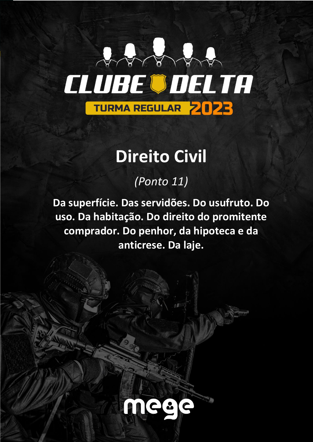 CPF: 860.542.154-18 PACHEGO GONÇALVES | 9999999999 | alesantosf2020@gmail.com | CPF: 860.542.154-18 É proibida a reprodução deste material sem a devida autorização, sob pena da adoção das medidas cabíveis na esfera cível e penal. 1 1 Direito Civil (Ponto 11) Da superfície. Das servidões. Do usufruto. Do uso. Da habitação. Do direito do promitente comprador. Do penhor, da hipoteca e da anticrese. Da laje. CPF: 860.542.154-18 PACHEGO GONÇALVES | 9999999999 | alesantosf2020@gmail.com | CPF: 860.542.154-18 É proibida a reprodução deste material sem a devida autorização, sob pena da adoção das medidas cabíveis na esfera cível e penal. 2 2 CURSO MEGE Site para cadastro: www.mege.com.br Celular / Whatsapp: (99) 98262-2200 (Tim) Turma: Clube Delta Material: Direito Civil – Ponto 11 Direito Civil (Ponto 11) Da superfície. Das servidões. Do usufruto. Do uso. Da habitação. Do direito do promitente comprador. Do penhor, da hipoteca e da anticrese. Da laje. CPF: 860.542.154-18 PACHEGO GONÇALVES | 9999999999 | alesantosf2020@gmail.com | CPF: 860.542.154-18 É proibida a reprodução deste material sem a devida autorização, sob pena da adoção das medidas cabíveis na esfera cível e penal. 3 3 SUMÁRIO CONTEÚDO PROGRAMÁTICO DA RODADA ...................................................................... 4 1. DOUTRINA (RESUMO) ................................................................................................... 5 1.1. DA SUPERFÍCIE ........................................................................................................... 5 1.2. DAS SERVIDÕES.......................................................................................................... 8 1.3. DO USUFRUTO ........................................................................................................... 9 1.4. DO USO .................................................................................................................... 11 1.5. DA HABITAÇÃO ........................................................................................................ 11 1.6. DO DIREITO DO PROMITENTE COMPRADOR .......................................................... 12 1.7. DO PENHOR, DA HIPOTECA E DA ANTICRESE .......................................................... 12 1.8. DA LAJE .................................................................................................................... 16 2. JURISPRUDÊNCIA ........................................................................................................ 22 4. QUESTÕES ................................................................................................................... 27 5. GABARITO COMENTADO ............................................................................................ 31 CPF: 860.542.154-18 PACHEGO GONÇALVES | 9999999999 | alesantosf2020@gmail.com | CPF: 860.542.154-18 É proibida a reprodução deste material sem a devida autorização, sob pena da adoção das medidas cabíveis na esfera cível e penal. 4 4 CONTEÚDO PROGRAMÁTICO DA RODADA (Conforme Edital Mege) DIREITO CIVIL Da superfície. Das servidões. Do usufruto. Do uso. Da habitação. Do direito do promitente comprador. Do penhor, da hipoteca e da anticrese. Da laje. (Ponto 11) CPF: 860.542.154-18 PACHEGO GONÇALVES | 9999999999 | alesantosf2020@gmail.com | CPF: 860.542.154-18 É proibida a reprodução deste material sem a devida autorização, sob pena da adoção das medidas cabíveis na esfera cível e penal. 5 5 1. DOUTRINA (RESUMO) 1.1. DA SUPERFÍCIE Com origem no Direito Romano, o direito de superfície - surgiu para substituir a enfiteuse - passando a ser regido pelo CC/2002 entre os seus arts. 1.369 a 1.377, sendo certo que já havia previsão no Estatuto da Cidade (arts. 21 a 24 da Lei 10.257/2001). Cuida-se de um direito real de gozo ou fruição por meio do qual o proprietário concede a outrem (superficiário), por tempo determinado ou indeterminado, gratuita ou onerosamente, o direito de construir ou de plantar sobre seu terreno, mediante escritura pública devidamente registrada no Cartório de Registro de Imóveis. Nele ocorre um desmembramento entre o domínio do solo e o domínio do que está (ou será) incorporado a ele por acessão. No particular, a doutrina majoritária defende que a superfície é direito real "autônomo", apartando-o do rol dos demais "ius in re aliena” (direitos reais sobre coisa alheia). Enquanto o proprietário mantém a titularidade do solo, o superficiário adquire a propriedade resolúvel das acessões, pois, findo o prazo, estas se incorporam ao patrimônio do proprietário do solo. Superficiário é o titular do direito real de superfície e proprietário é aquele que transfere ao superficiário, alguns de seus poderes, quais sejam, usar, fruir, dispor e reaver. O direito real de superfície não abrange obra no subsolo, salvo se inerente ao objeto de concessão. O direito de superfície deve ser por tempo determinado. Não obstante, o Estatuto da Cidade (art. 21) autoriza a superfície por tempo determinado ou indeterminado, sendo compatível com o que estabelece o Código Civil. Isto porque, o Estatuto é norma especial, aplicável apenas aos imóveis urbanos, ao passo que o CC é norma geral e aplicável aos imóveis rurais. Nesse sentido é o Enunciado 93 das Jornadas de Direito Civil, que assim preconiza: “As normas previstas no Código Civil sobre direito de superfície não revogam as relativas a direito de superfície constantes do Estatuto da Cidade (Lei 10.257/2001) por ser instrumento de política de desenvolvimento urbano”. O direito de superfície tem como características: i) alienabilidade; ii) disponibilidade; iii) transmissibilidade; iv) não personalíssimo; e v) pode ser gratuito ou oneroso. A gratuidade do direito de superfície é presumida, exigindo prova da onerosidade. Uma vez estabelecida contraprestação pecuniária, o pagamento po